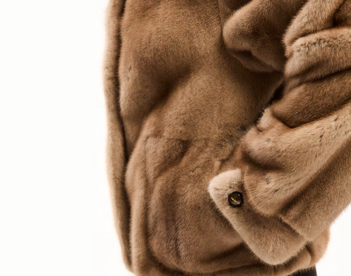 The use of synthetic materials in the fashion industry is always in contrast to sustainability principles. If it’s not biodegradable, it’s not sustainable. For this reason, our fur is a responsible choice. Our policy is to give back to nature what we take from it. We source carefully and return consciously, maintaining a relationship of balance and respect.