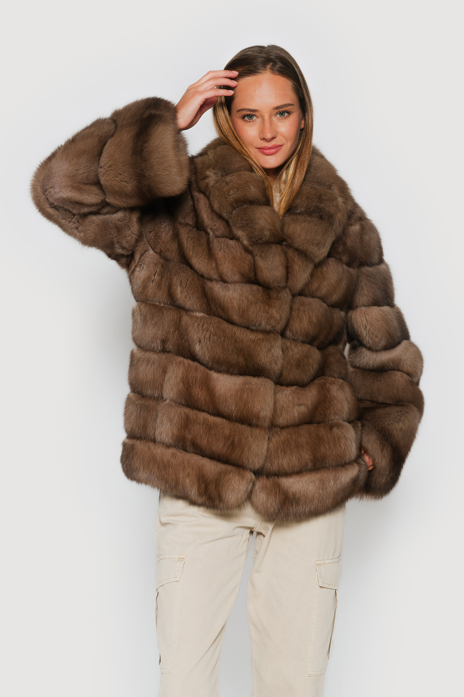 Elevate your style to a royal standard with Braschi’s Royal Sand sable jacket. Meticulously crafted in Italy, it showcases intricate horizontal workmanship and a luxurious shawl collar. The sumptuous silk lining ensures unparalleled comfort and opulence. Discover the epitome of elegance and craftsmanship with Braschi, where fashion meets luxury.