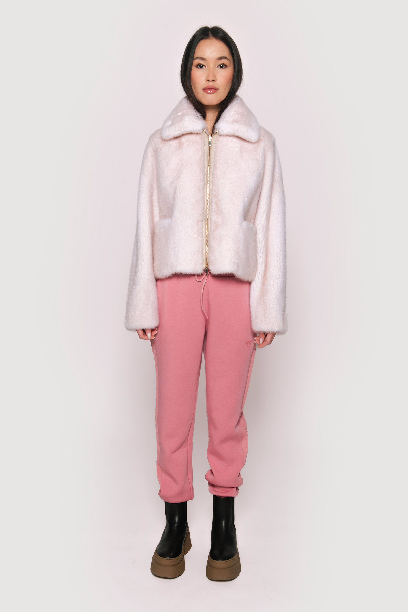 Elevate your style with our Beautiful Mink Jacket from Braschi. Designed with intricate details, this jacket features elegant zips on the wrists and a convenient zip closure. Crafted from luxurious mink, it exudes timeless elegance and warmth. Make a statement with Italian craftsmanship and embrace the winter season in style with Braschi.