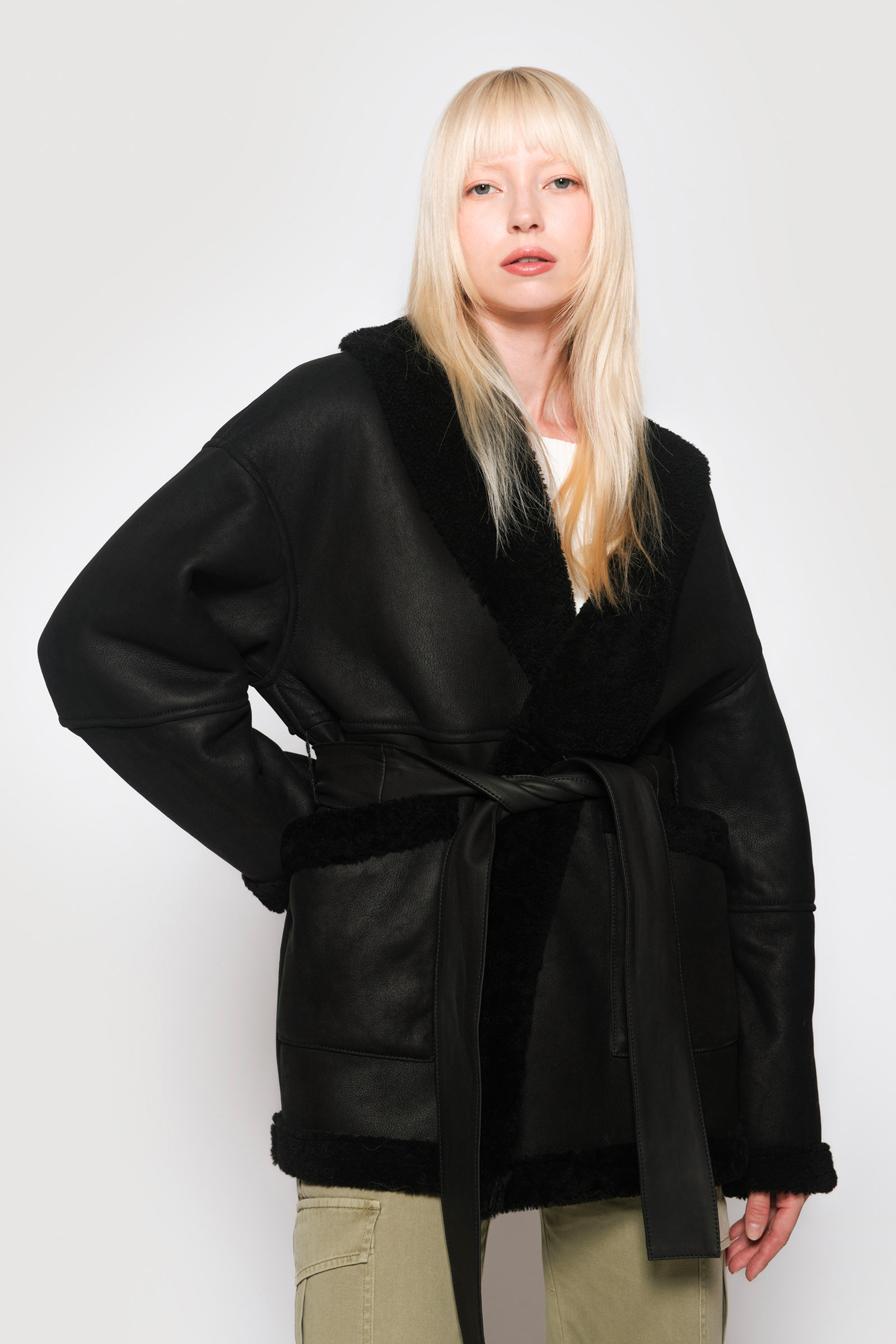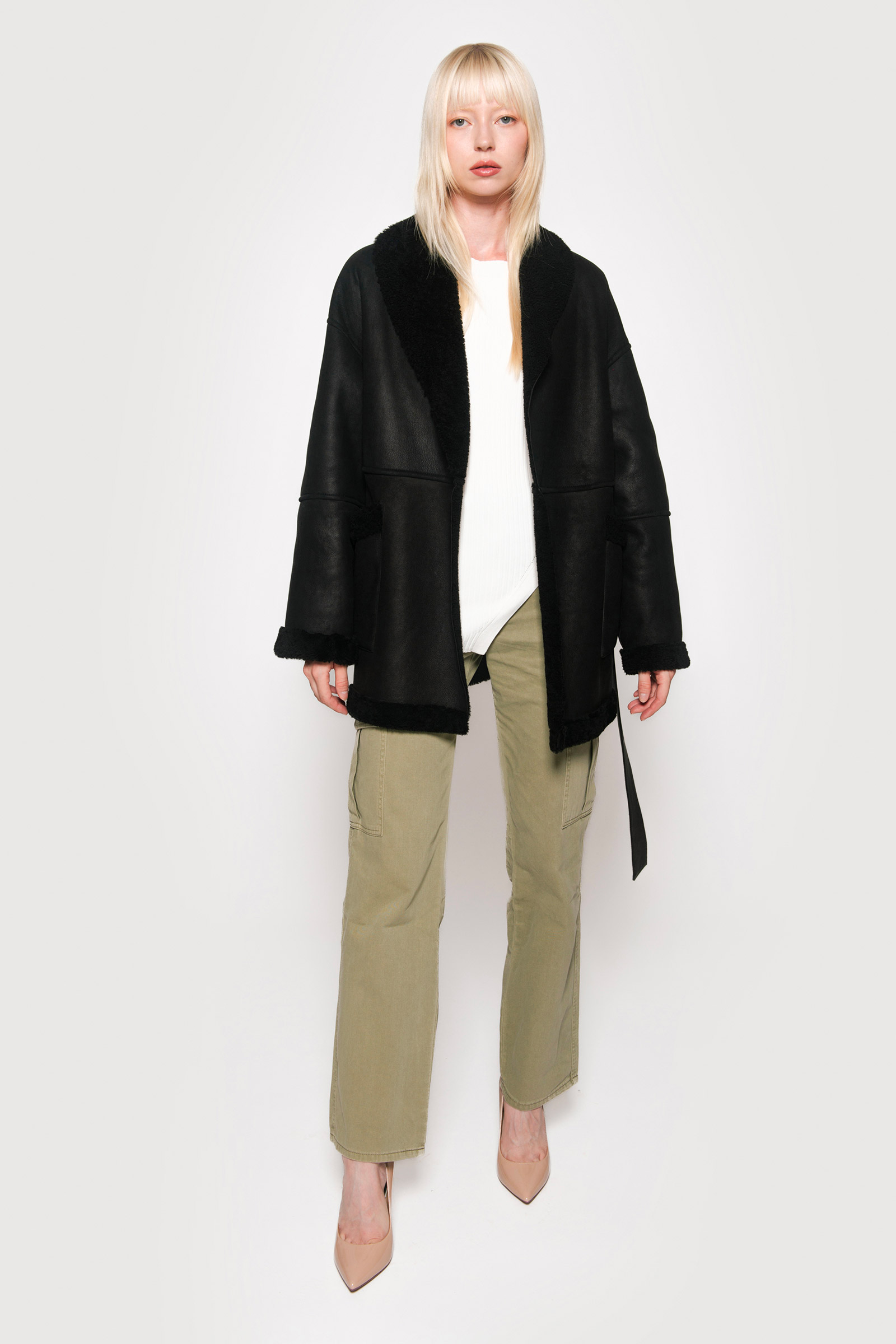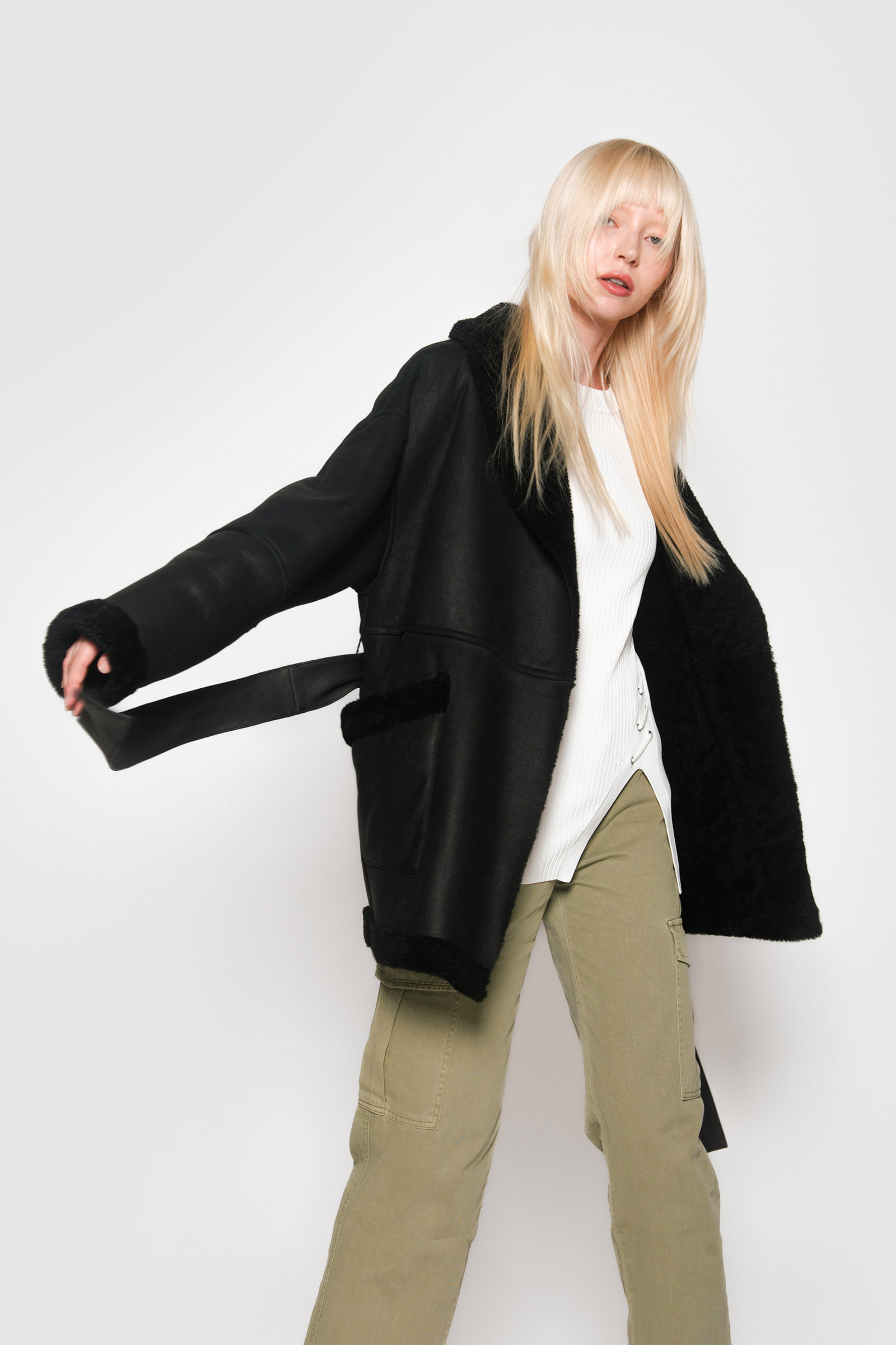 Make a bold statement with Braschi’s Shearling Jacket. Crafted with meticulous attention to detail, this jacket features a distinctive raw cut machining belt for closure and practical pockets on both sides. Elevate your winter wardrobe with this Italian-made shearling jacket that blends style and functionality seamlessly.