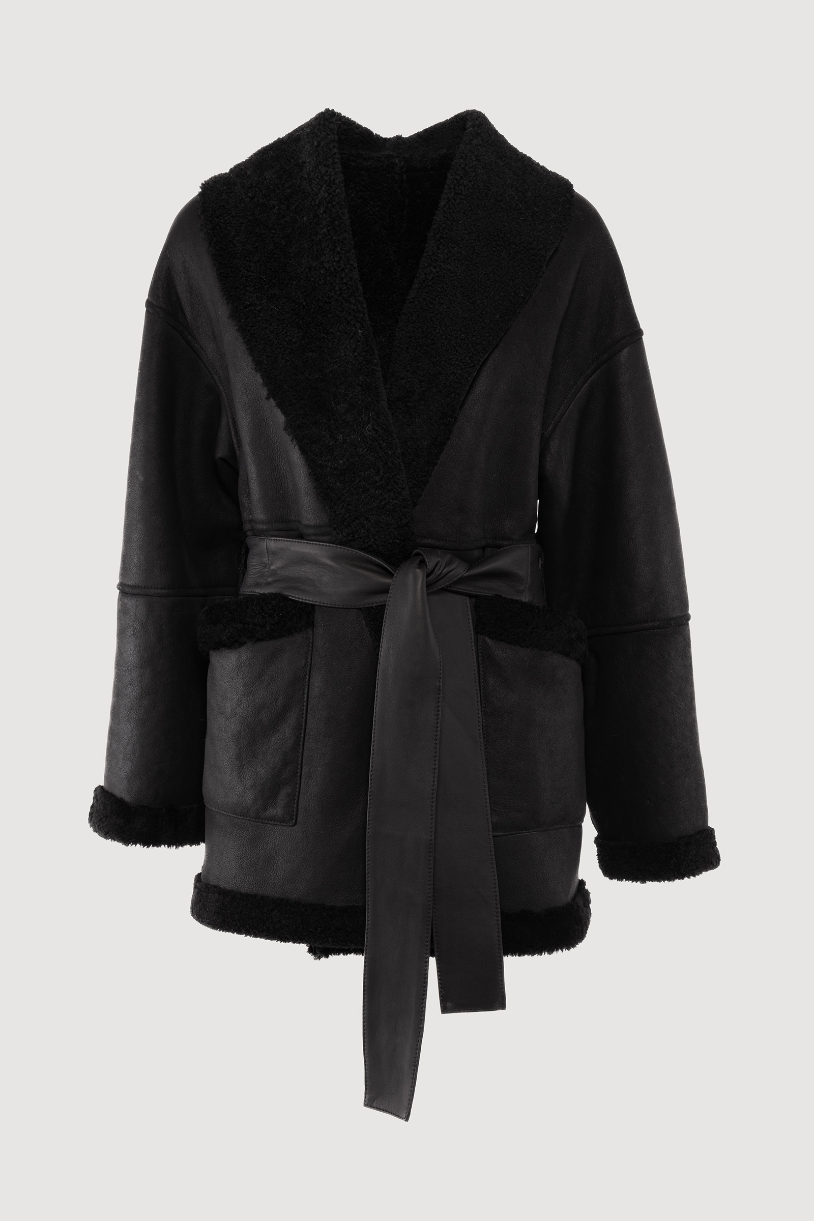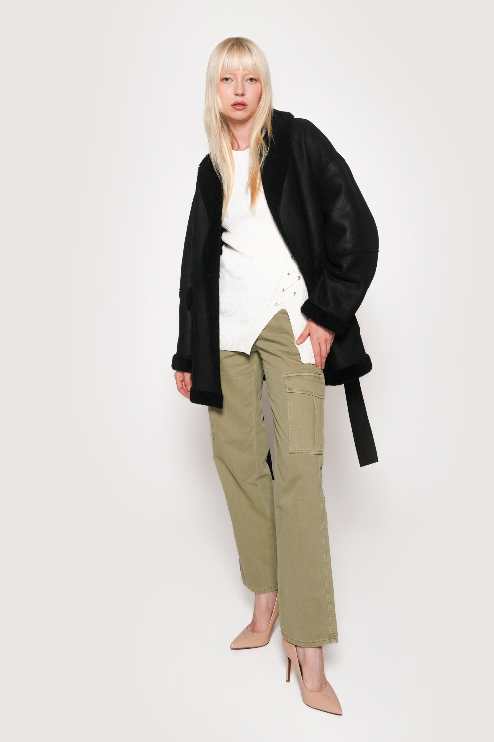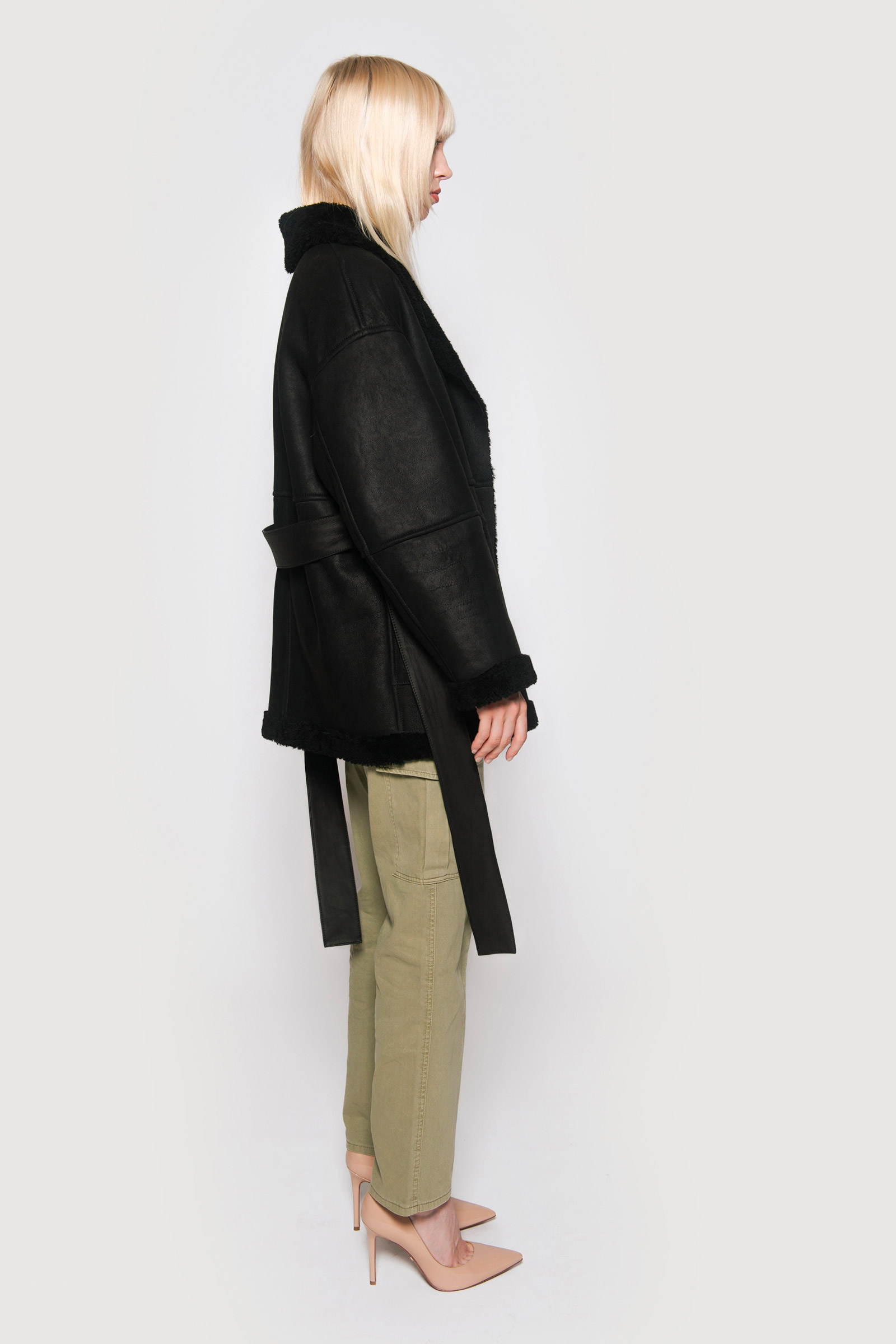 Make a bold statement with Braschi’s Shearling Jacket. Crafted with meticulous attention to detail, this jacket features a distinctive raw cut machining belt for closure and practical pockets on both sides. Elevate your winter wardrobe with this Italian-made shearling jacket that blends style and functionality seamlessly.