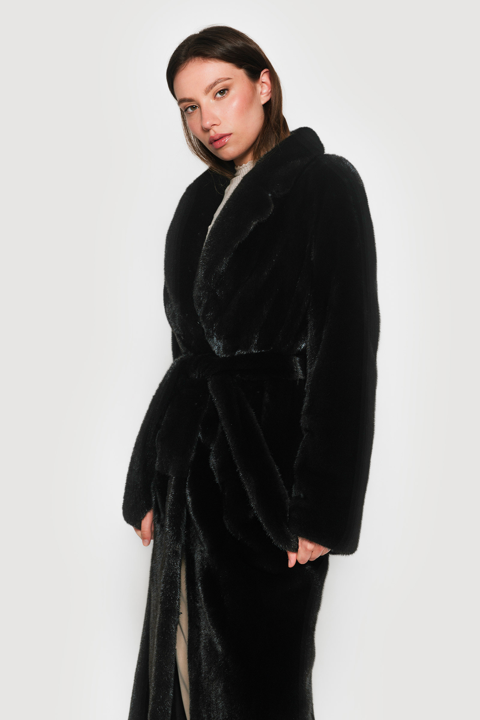 Elevate your style with timeless sophistication in Braschi’s long vertical mink jacket. Italian-crafted to perfection, it features a sophisticated lapel collar, a mink belt closure, and sumptuous silk lining, ensuring unparalleled comfort and opulence. Discover the epitome of elegance and craftsmanship with Braschi, where fashion meets luxury.