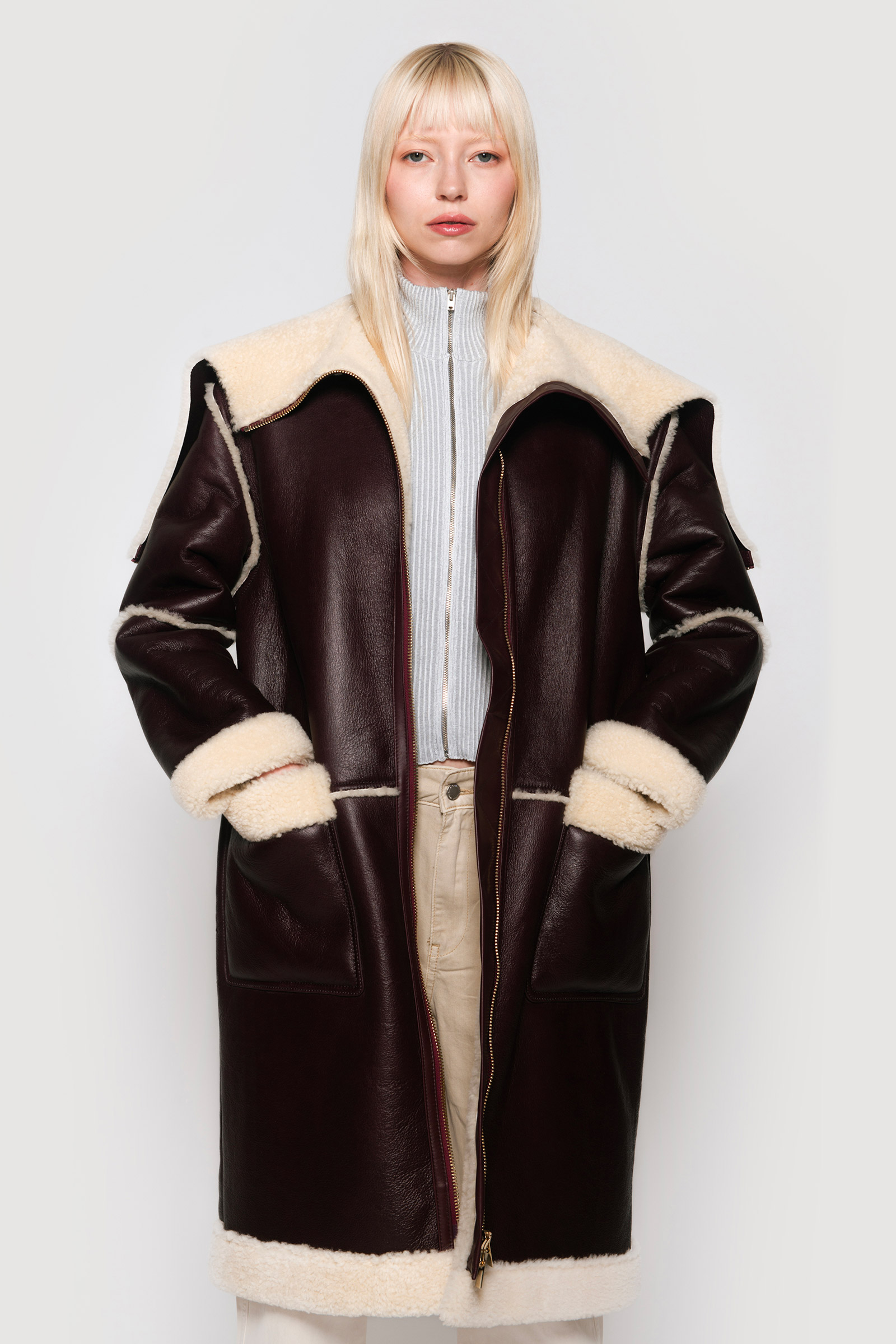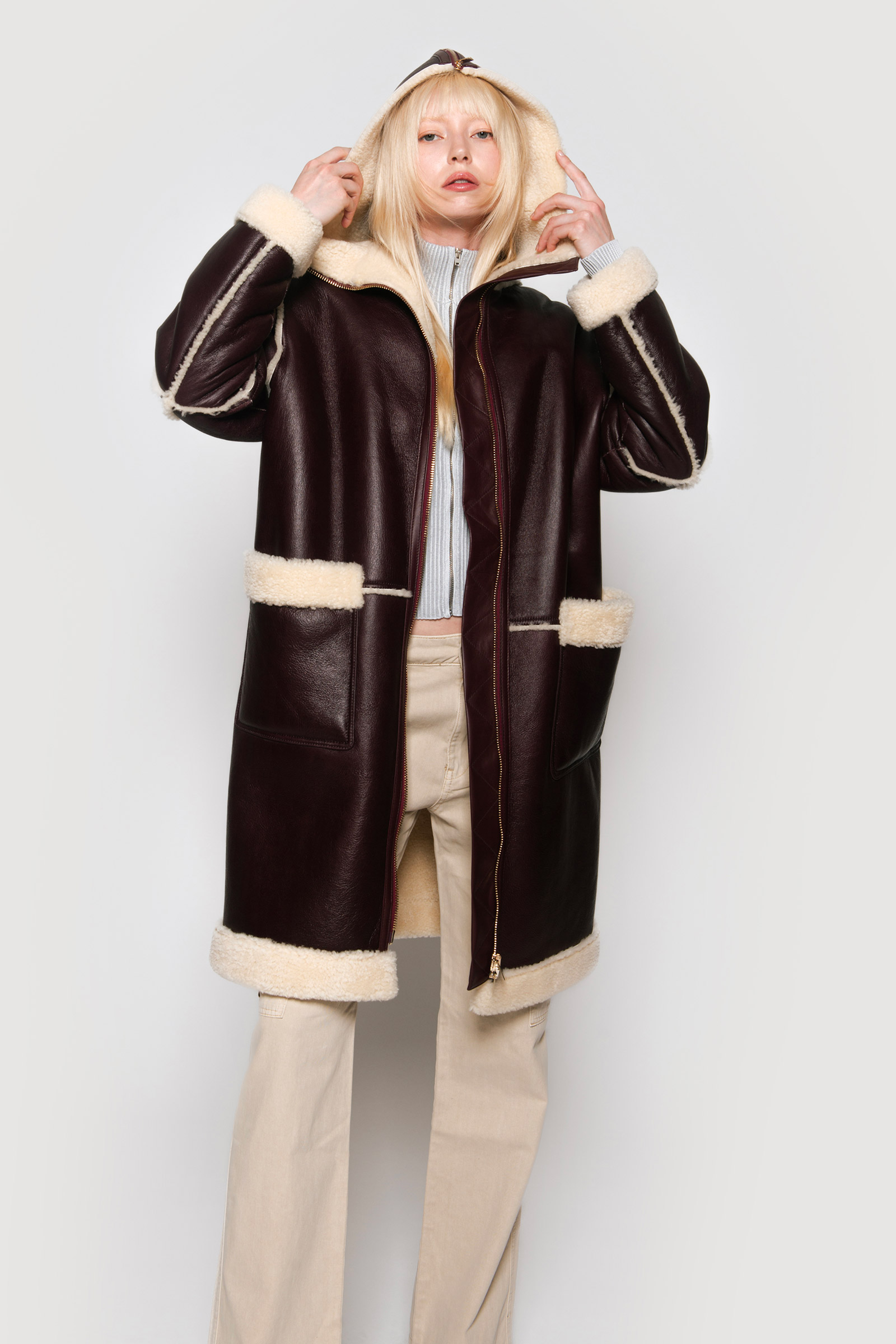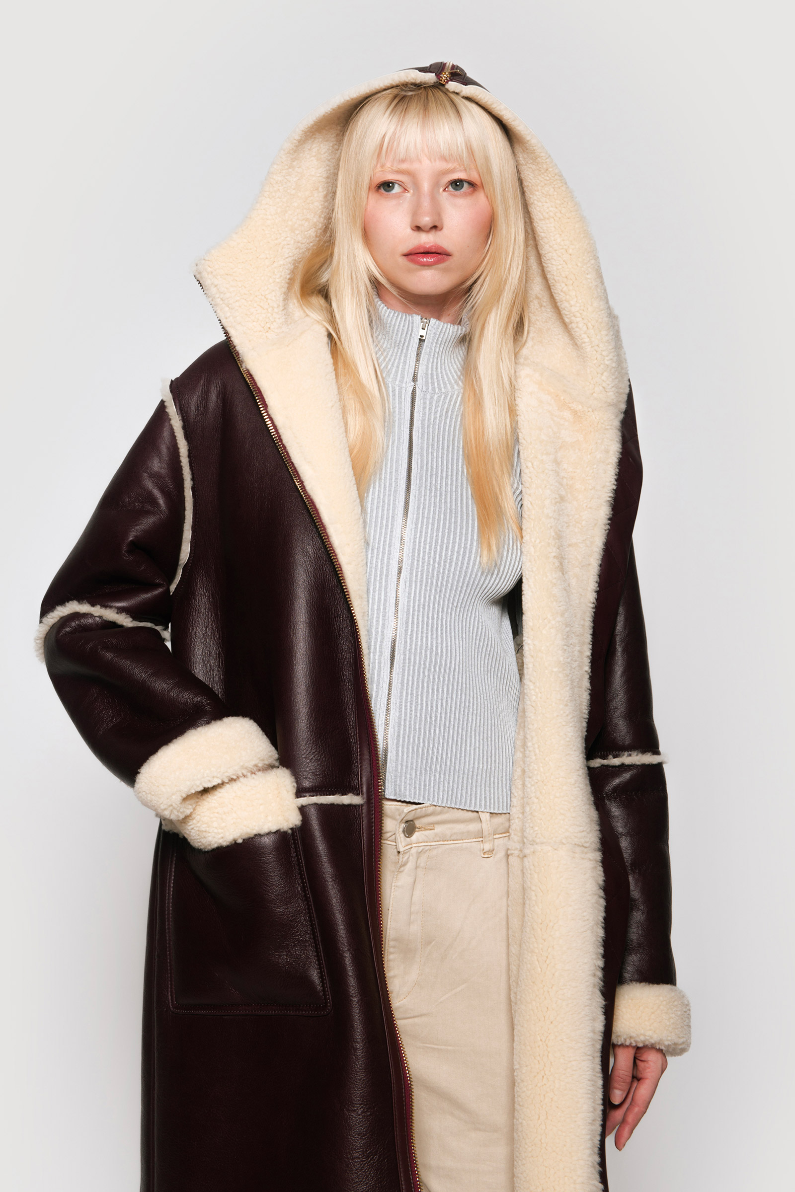 Wrap yourself in luxury with our Long Shearling Coat from Braschi. This exquisite piece, crafted from the finest merino shearling, offers unparalleled warmth and elegance. Its unique design includes zips both in the body and hood for versatile styling. Embrace Italian craftsmanship and timeless fashion with Braschi.
