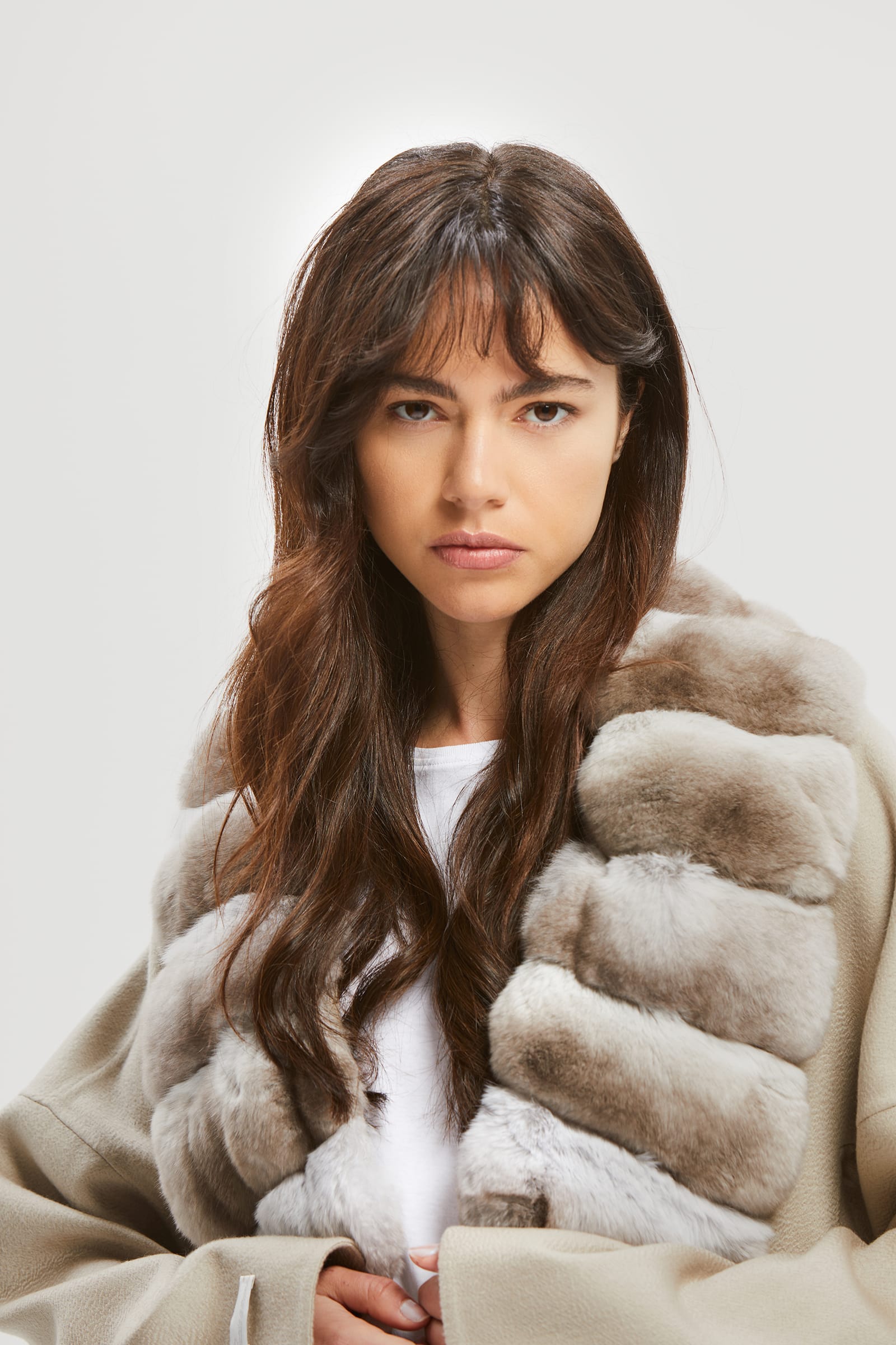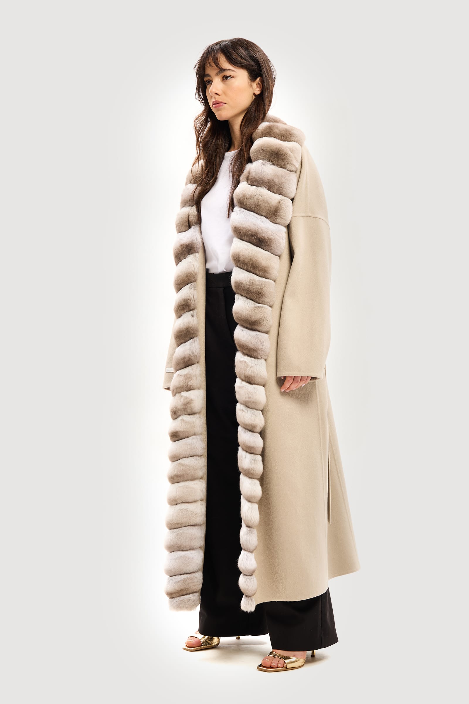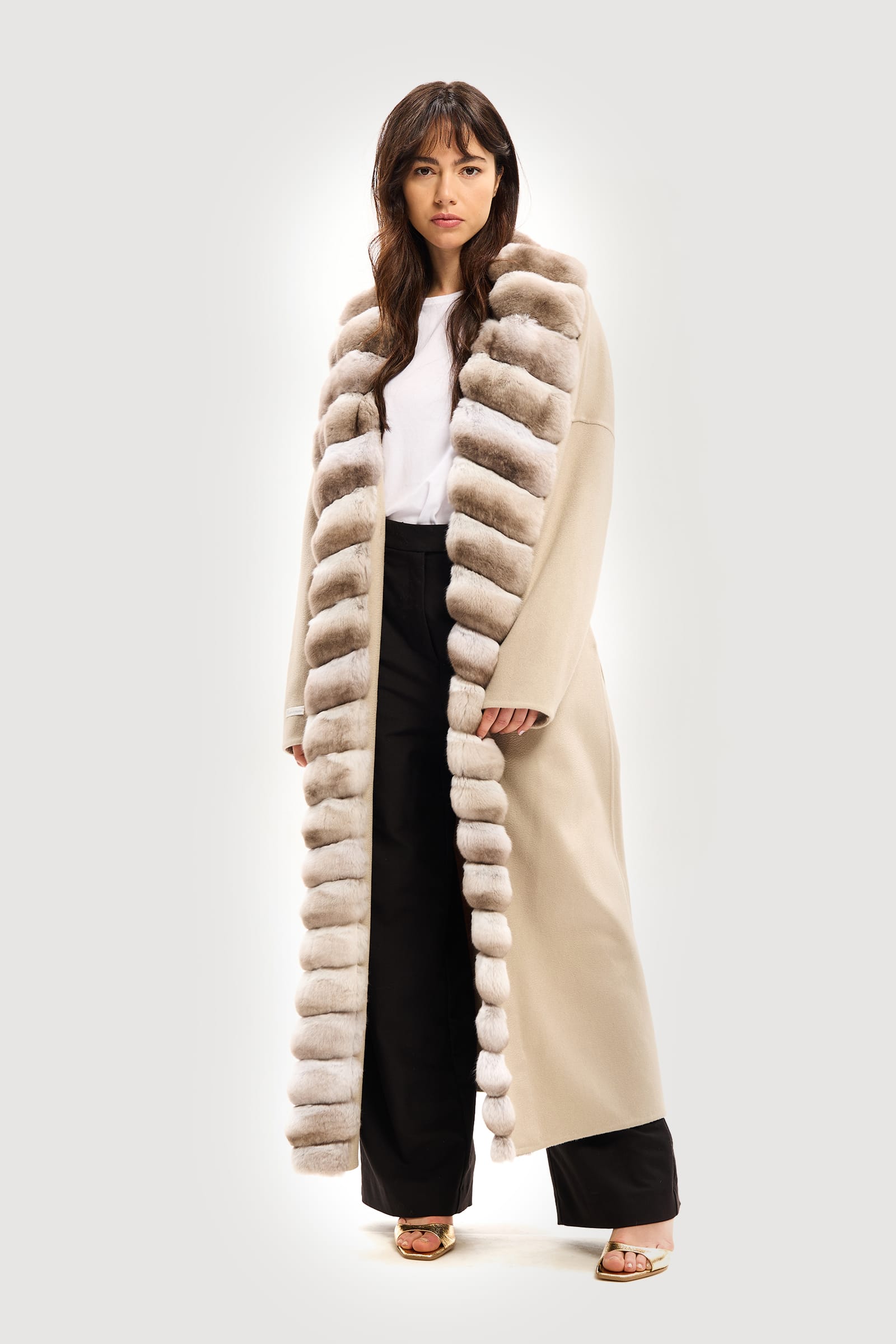 Cachemire and ecru chinchilla coat