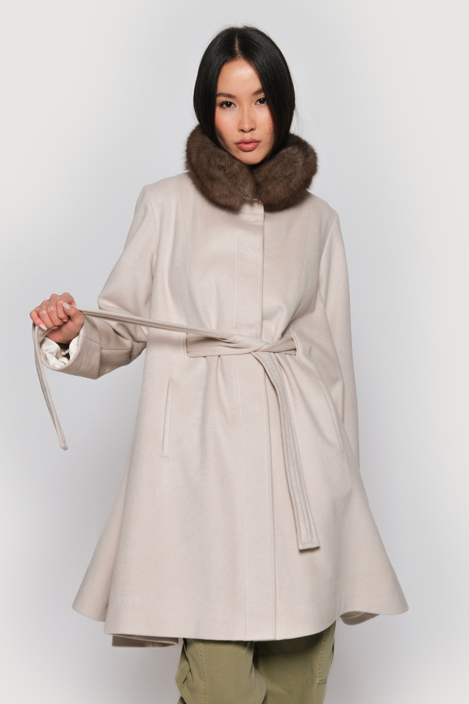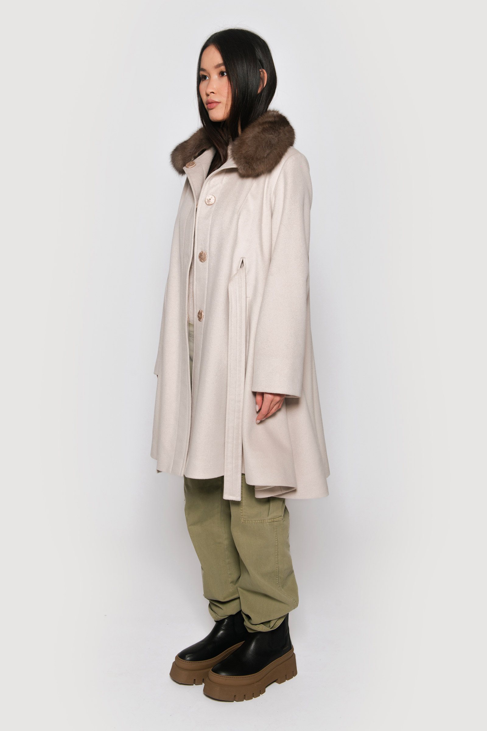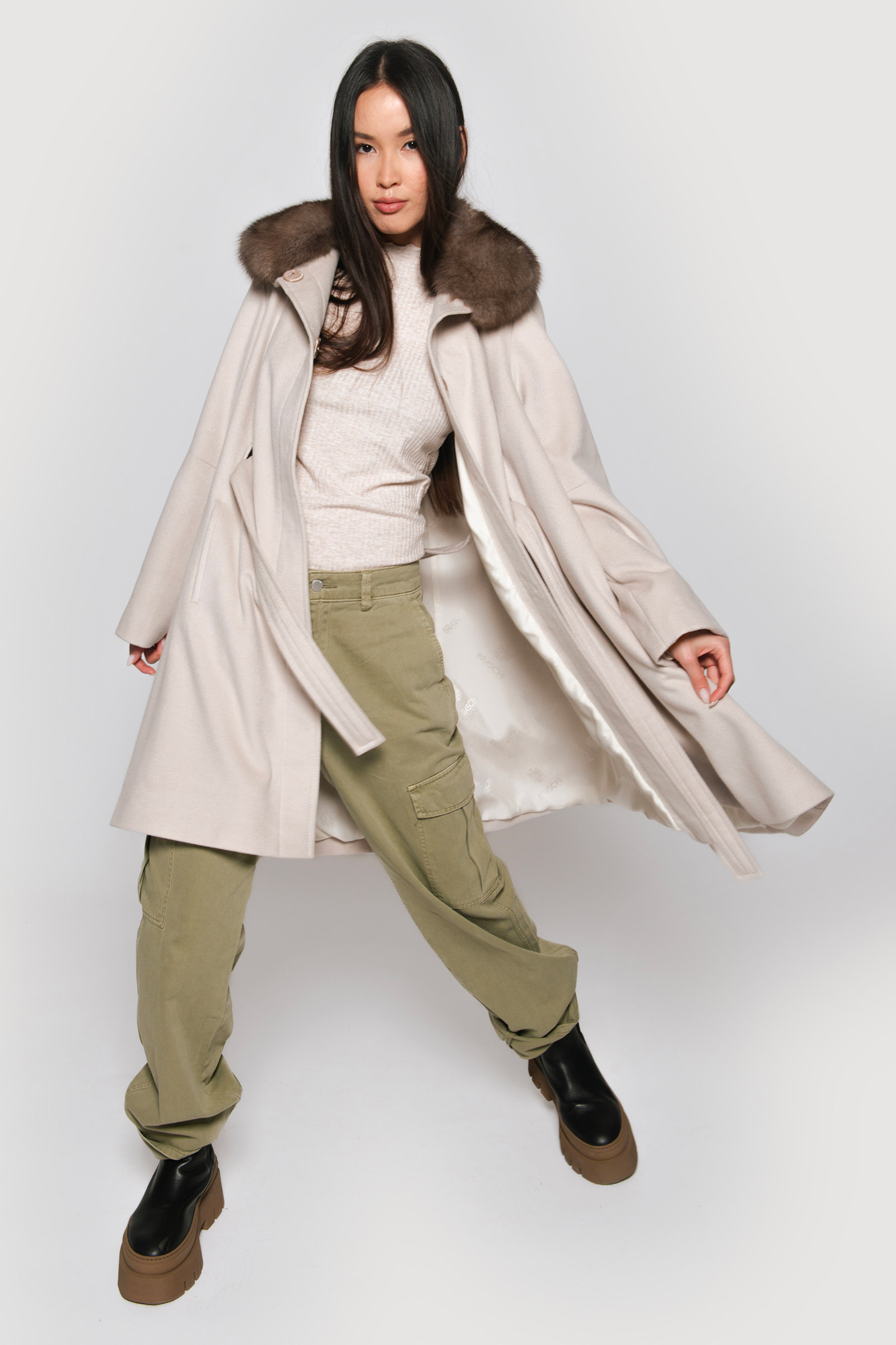 Elevate your style with the beauty of Braschi’s Hazelnut Cashmere jacket. The snap closure and visible inner cashmere belt in the front add a touch of sophistication to this luxurious piece. Embrace timeless elegance with the perfect blend of craftsmanship and style, where fashion meets opulence.
