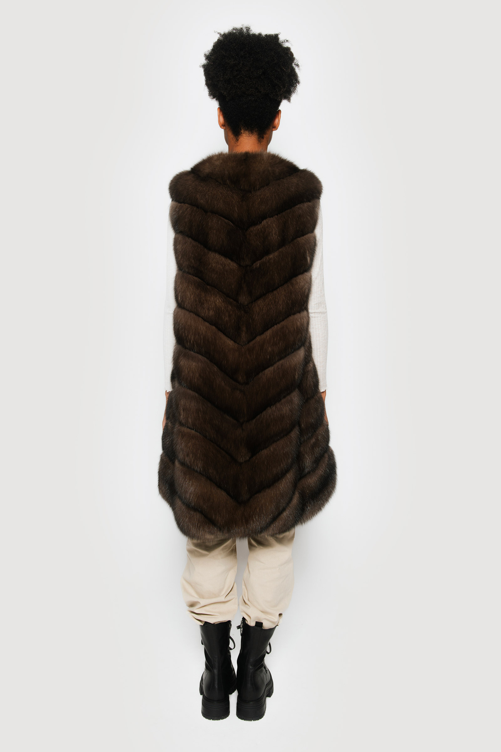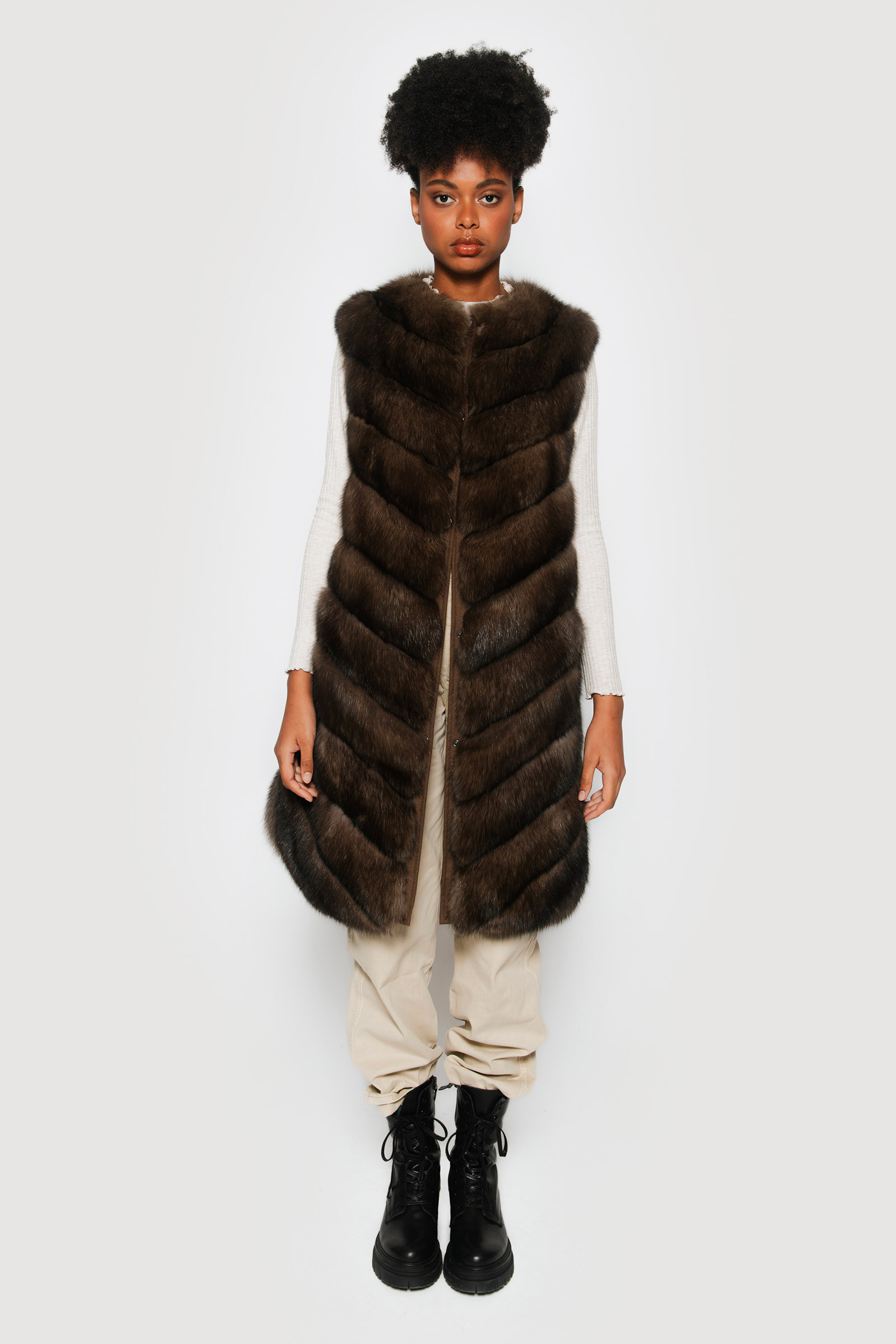 Elevate your style with Braschi’s long vest in graphite sable. This Italian-crafted masterpiece showcases meticulous horizontal workmanship, adding a unique and sophisticated touch to your ensemble. The sumptuous silk lining ensures unparalleled comfort and opulence. Embrace the epitome of elegance and exceptional craftsmanship with Braschi, where fashion meets sophistication.