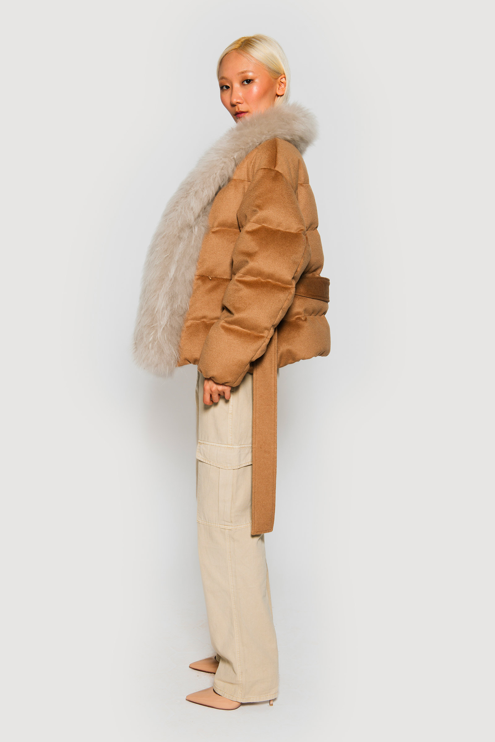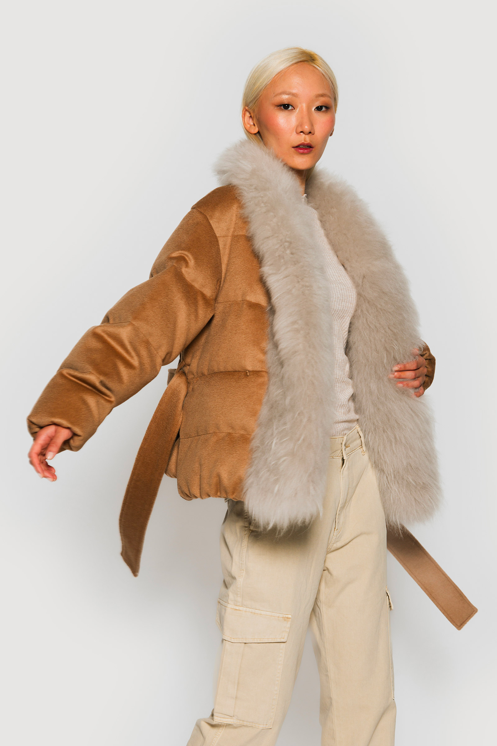 Revel in the epitome of style and comfort with our Loro Piana Storm System Cashmere Down Jacket from Braschi. Italian craftsmanship meets innovative design with a mohair goat edge and collar. The cashmere belt closure adds a touch of sophistication, and the silk lining ensures ultimate luxury. Redefine your winter wardrobe with this masterpiece. Shop now for a perfect blend of elegance and warmth, brought to you by Braschi.