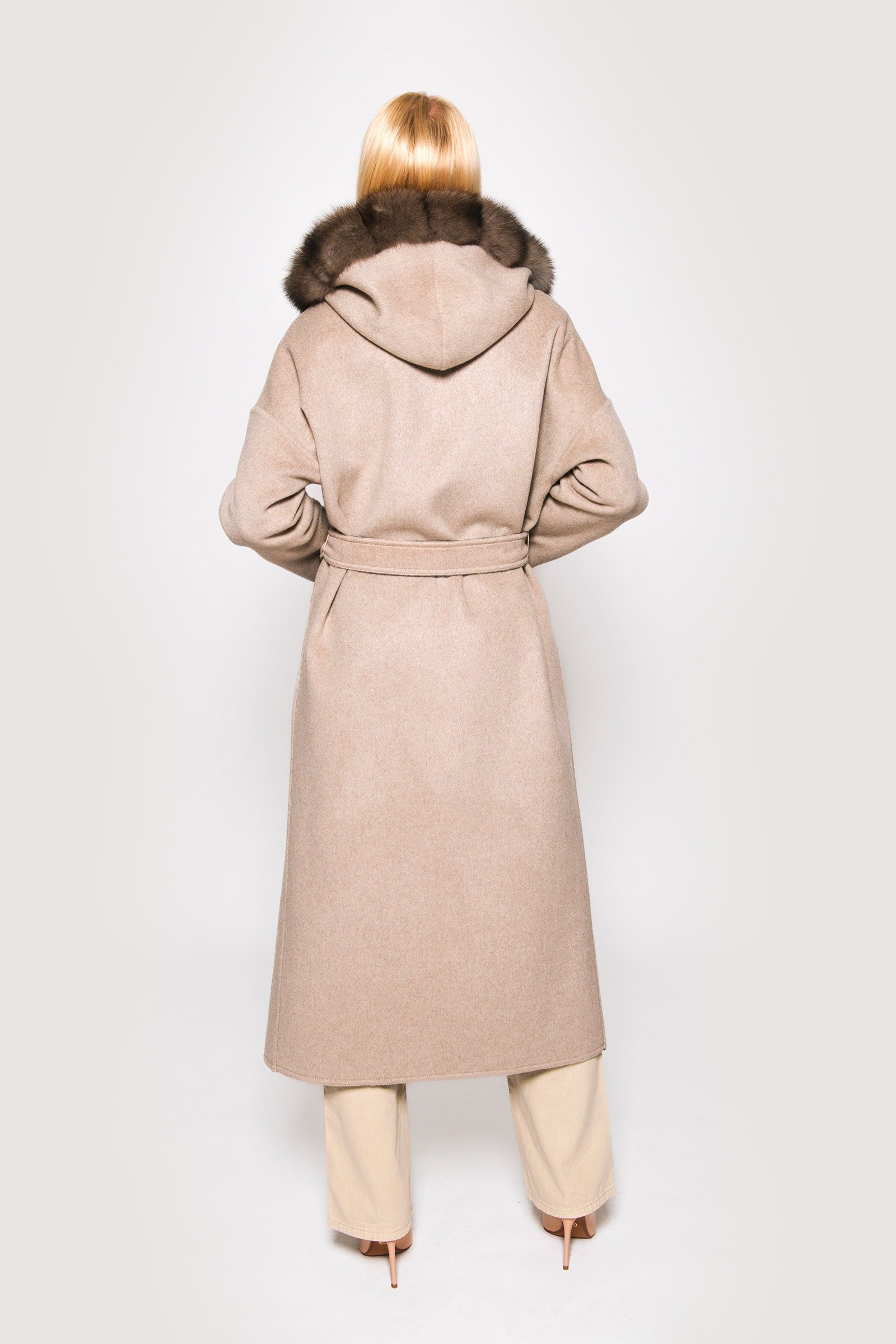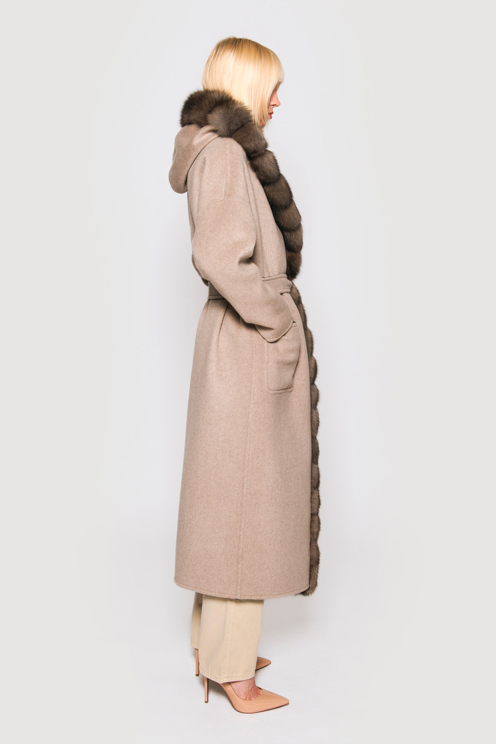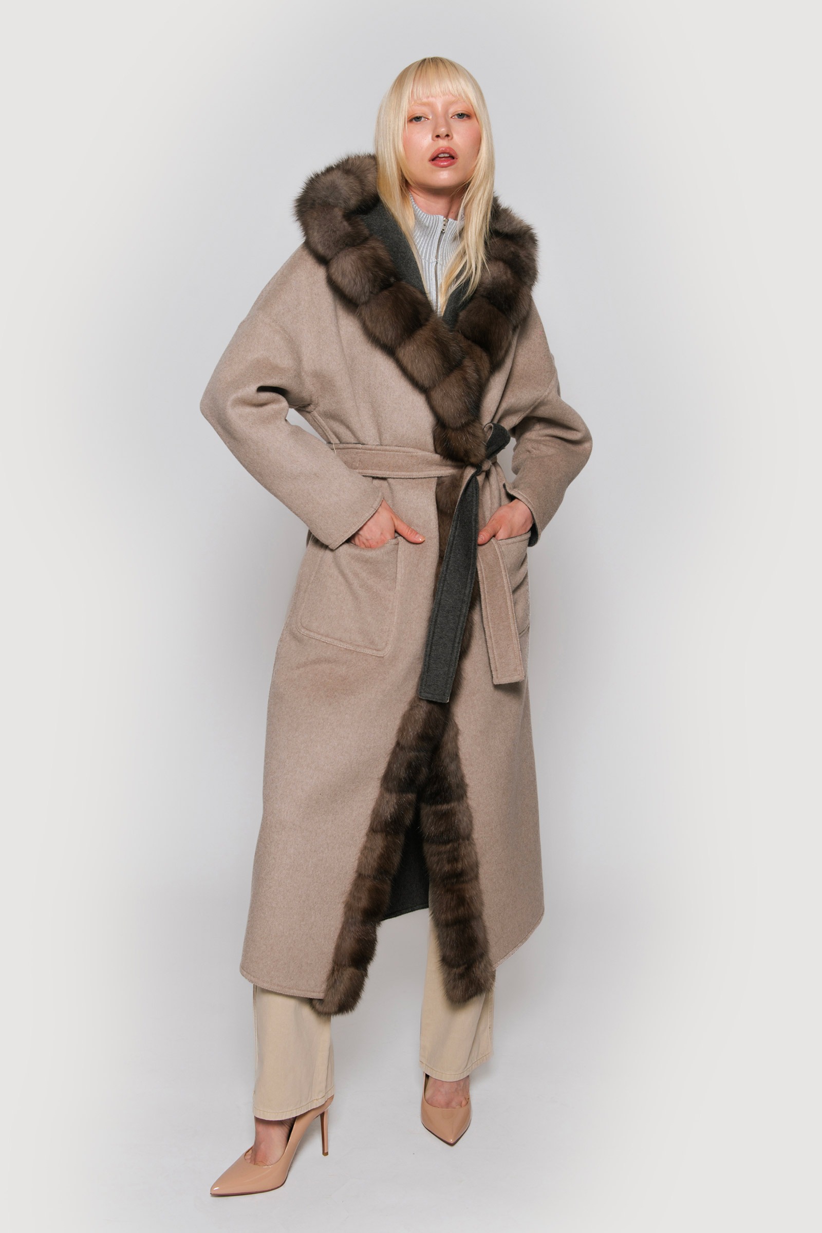 Reversible garment, cashmere their flat graphite sable edge, no buttons, reversible unlogoed belt