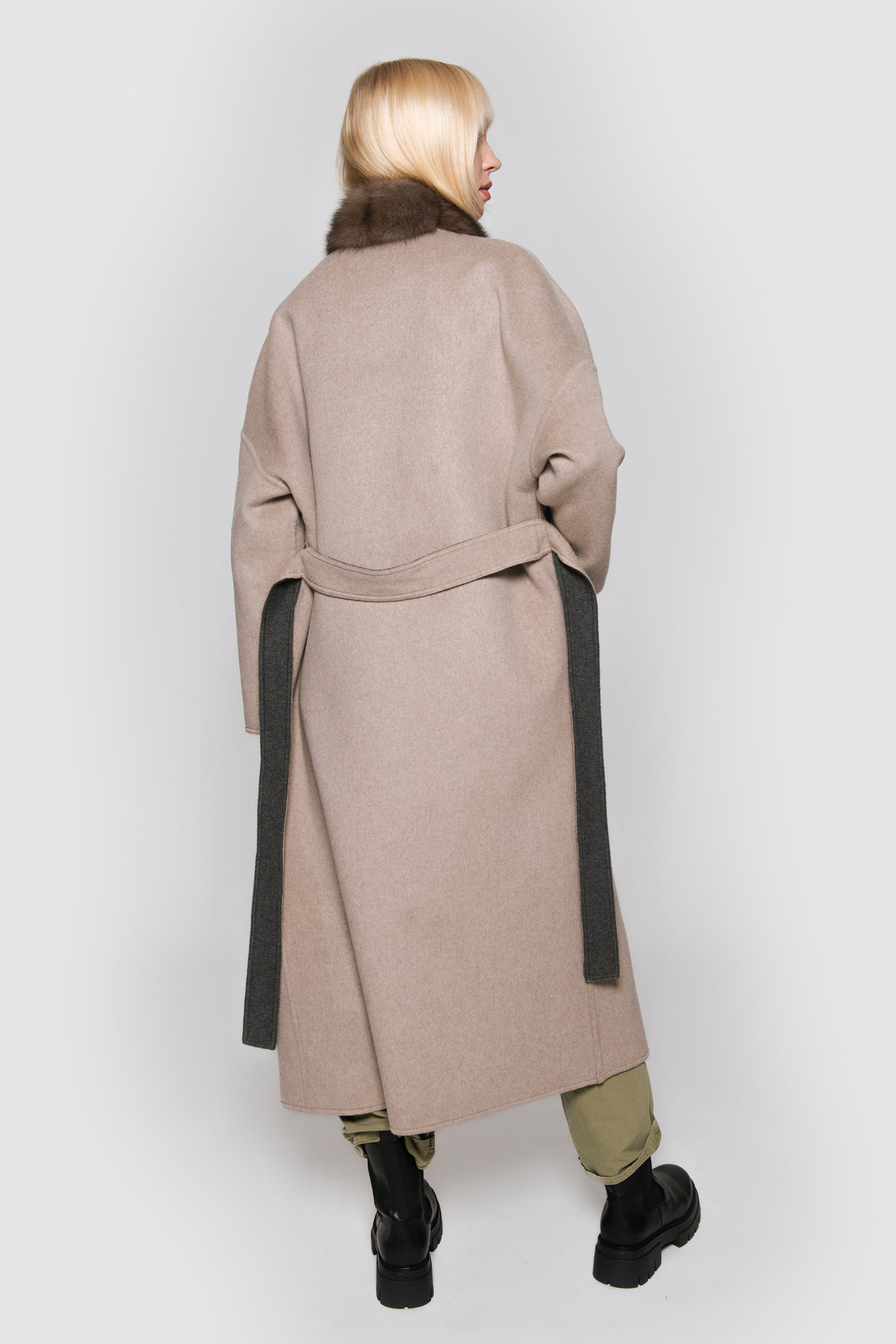 Indulge in the luxury of Braschi’s reversible cashmere coat with large pockets, edged with graphite sable and featuring a closure secured by a cashmere belt. This Italian masterpiece offers both style and functionality, allowing you to adapt your look to any occasion. Elevate your wardrobe with the perfect blend of craftsmanship and opulence, where fashion meets versatility and elegance.