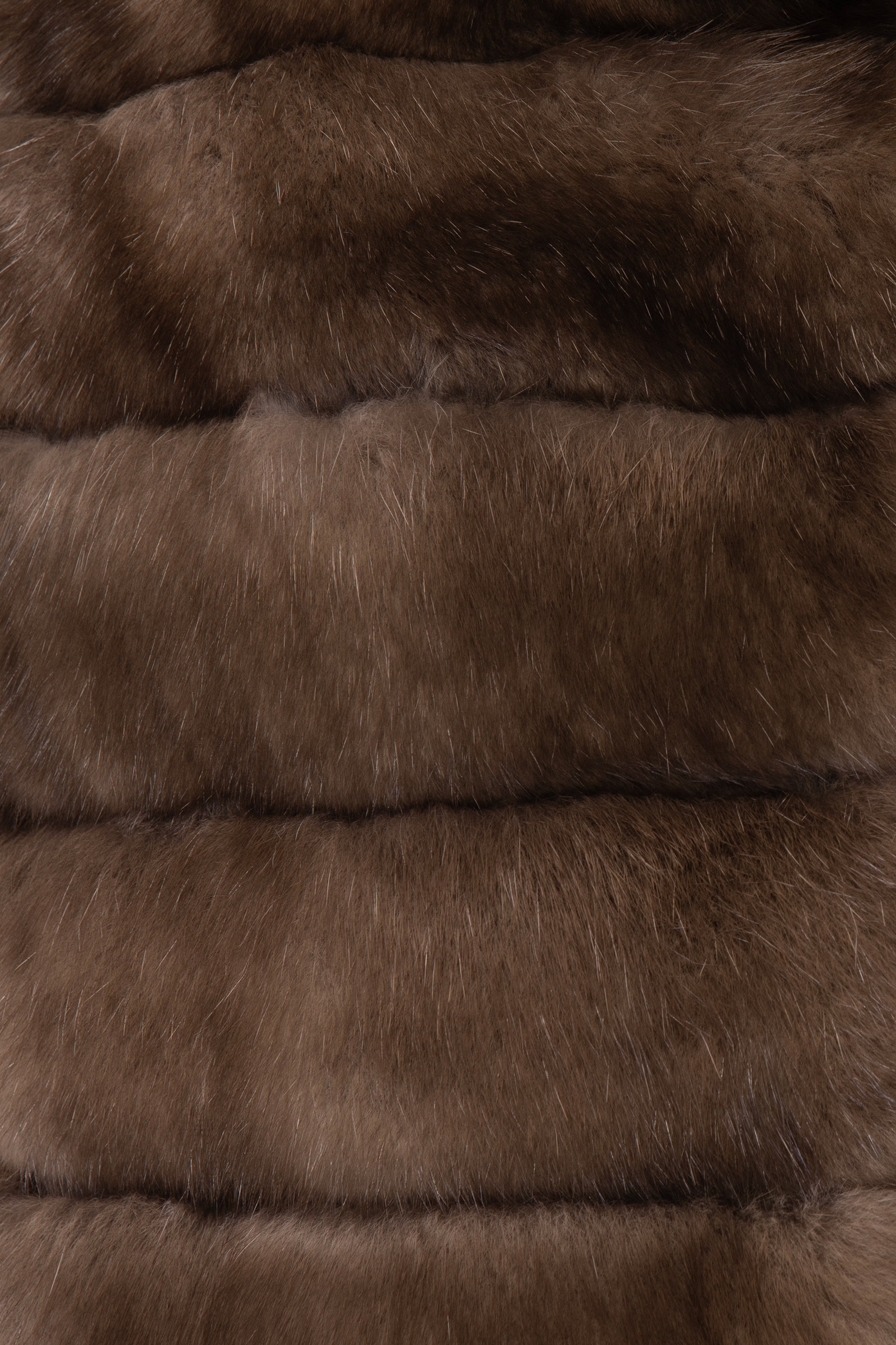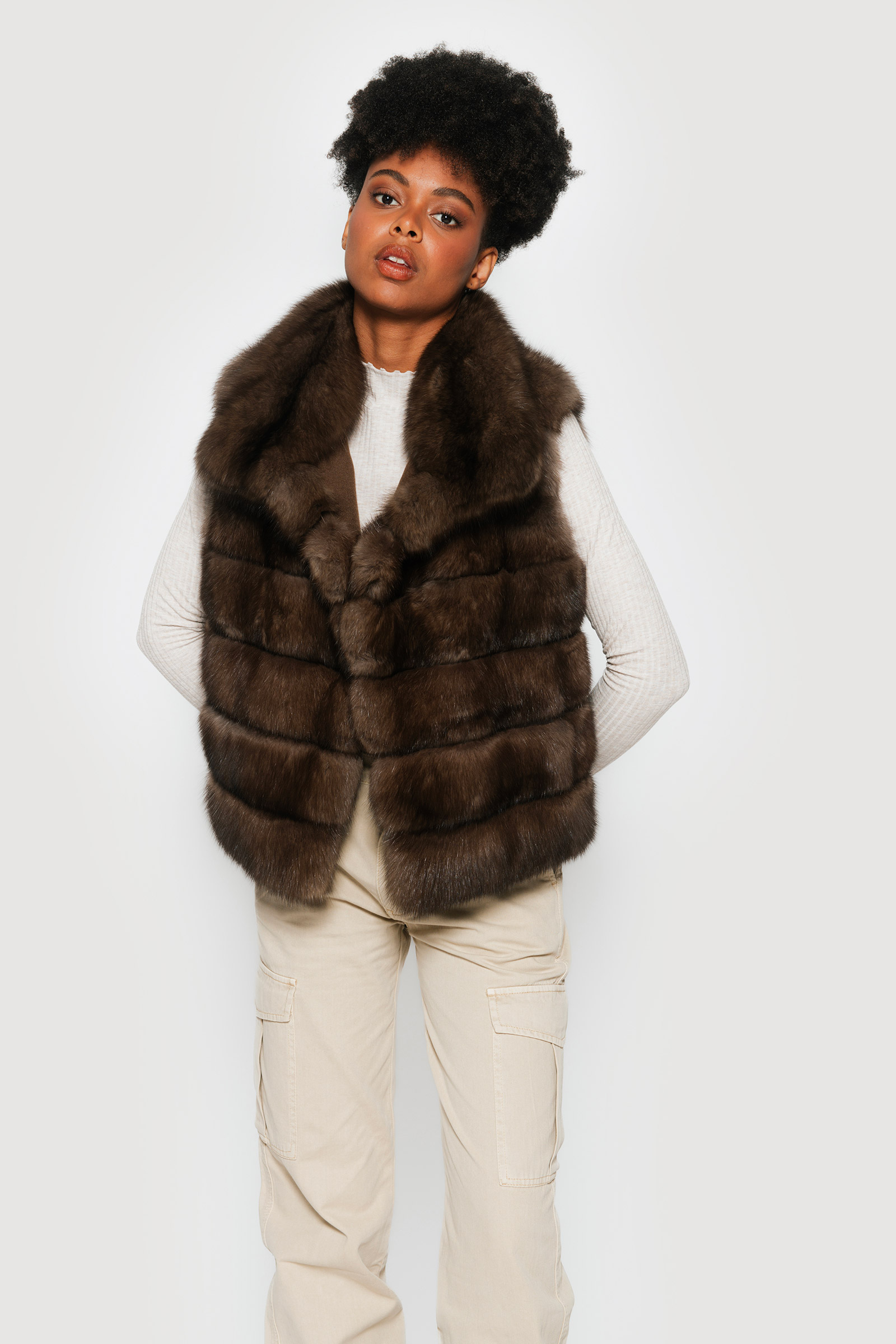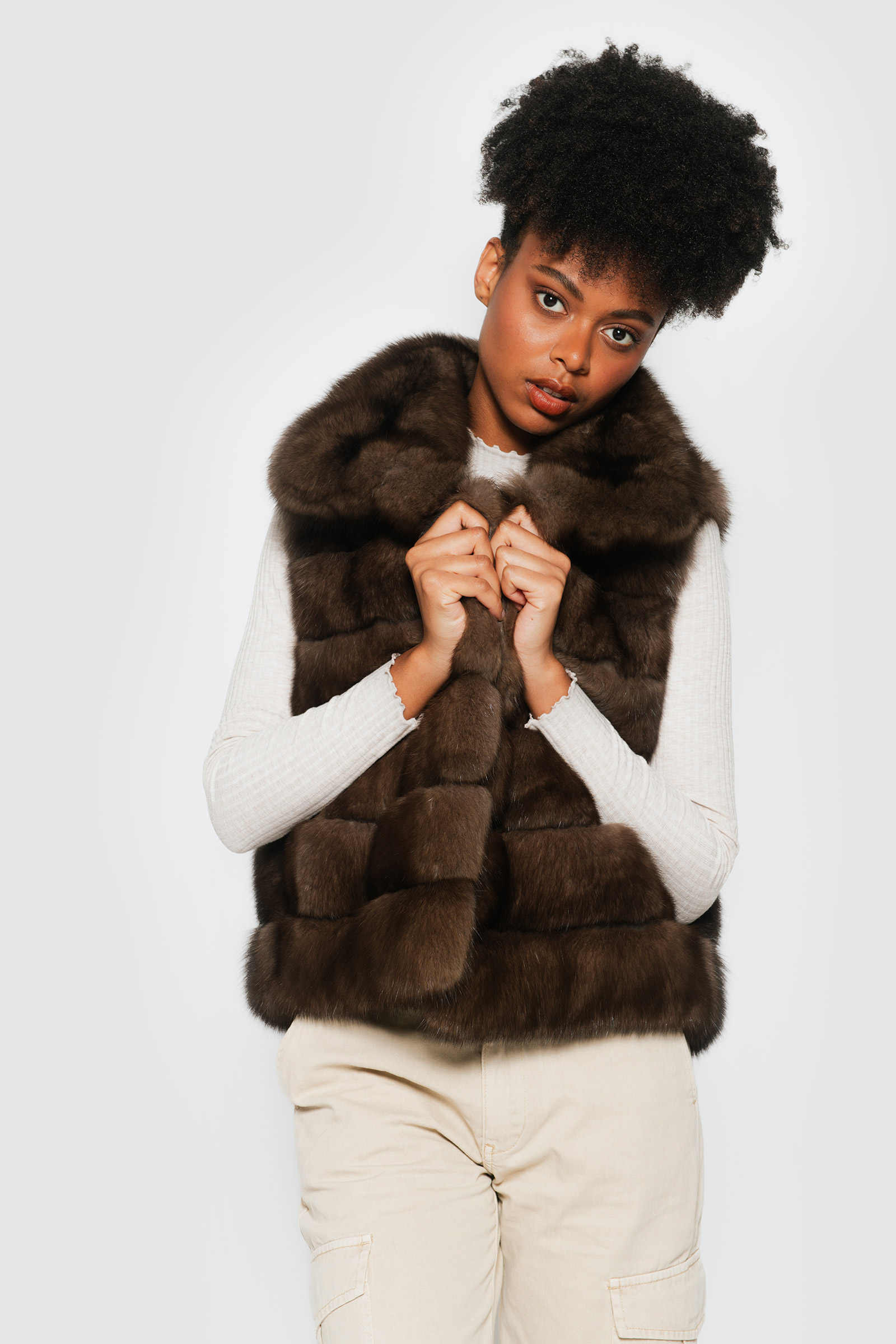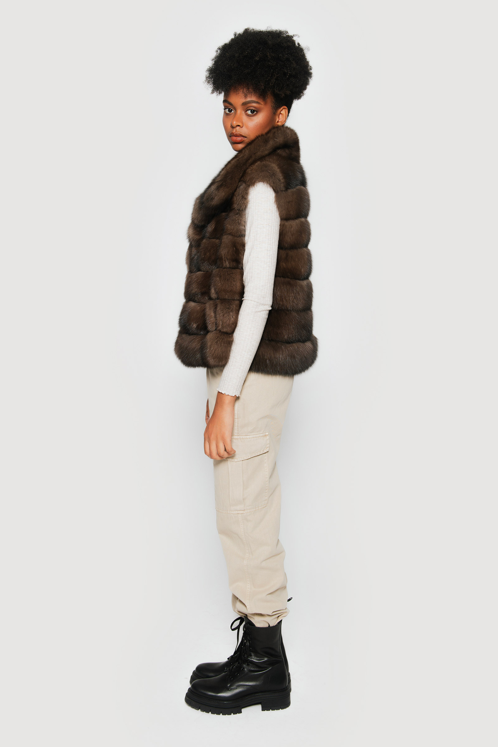 Elevate your style with Braschi’s graphite sable vest, a masterpiece of luxury. Crafted in Italy, it showcases meticulous horizontal workmanship, adding a unique and sophisticated touch to your look. The sumptuous silk lining ensures unparalleled comfort and opulence. Embrace the epitome of elegance and exceptional craftsmanship with Braschi, where fashion meets sophistication.