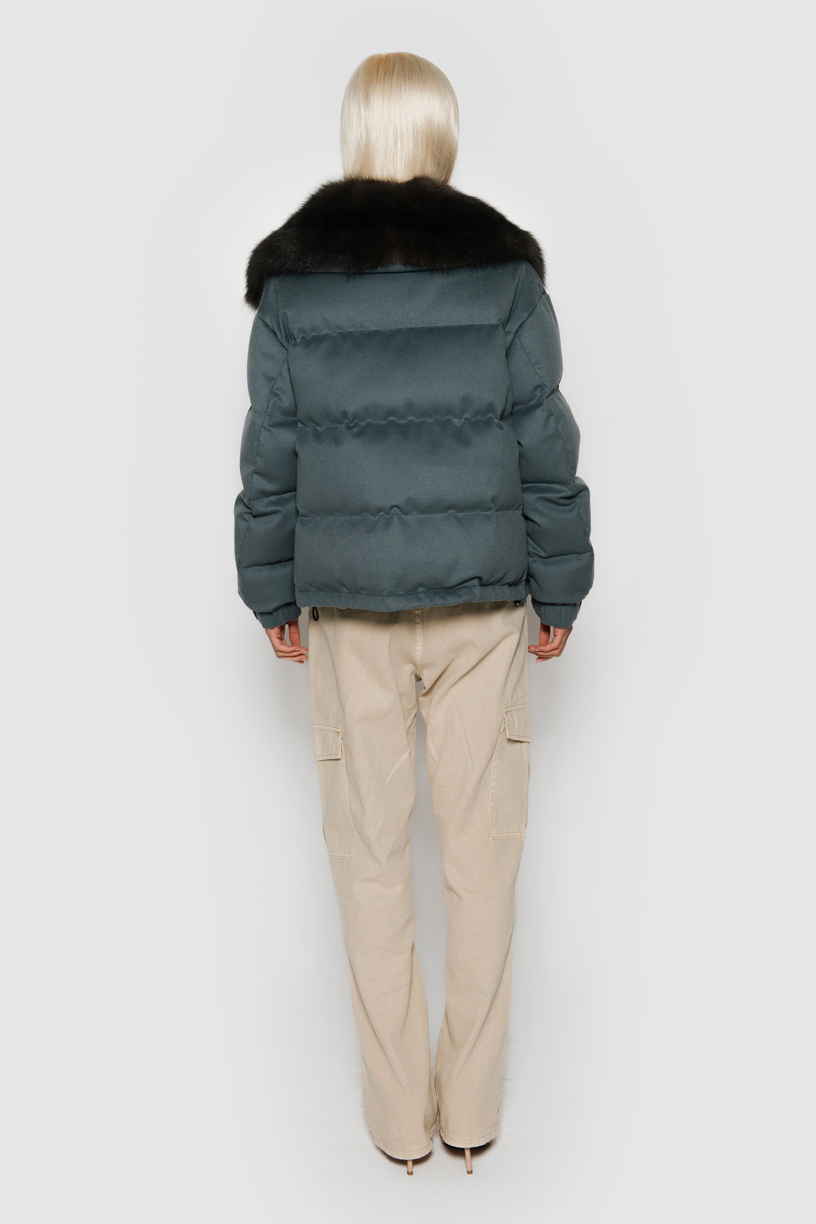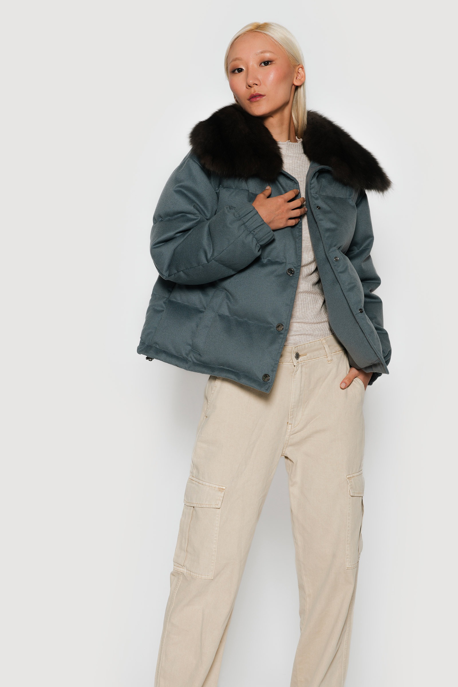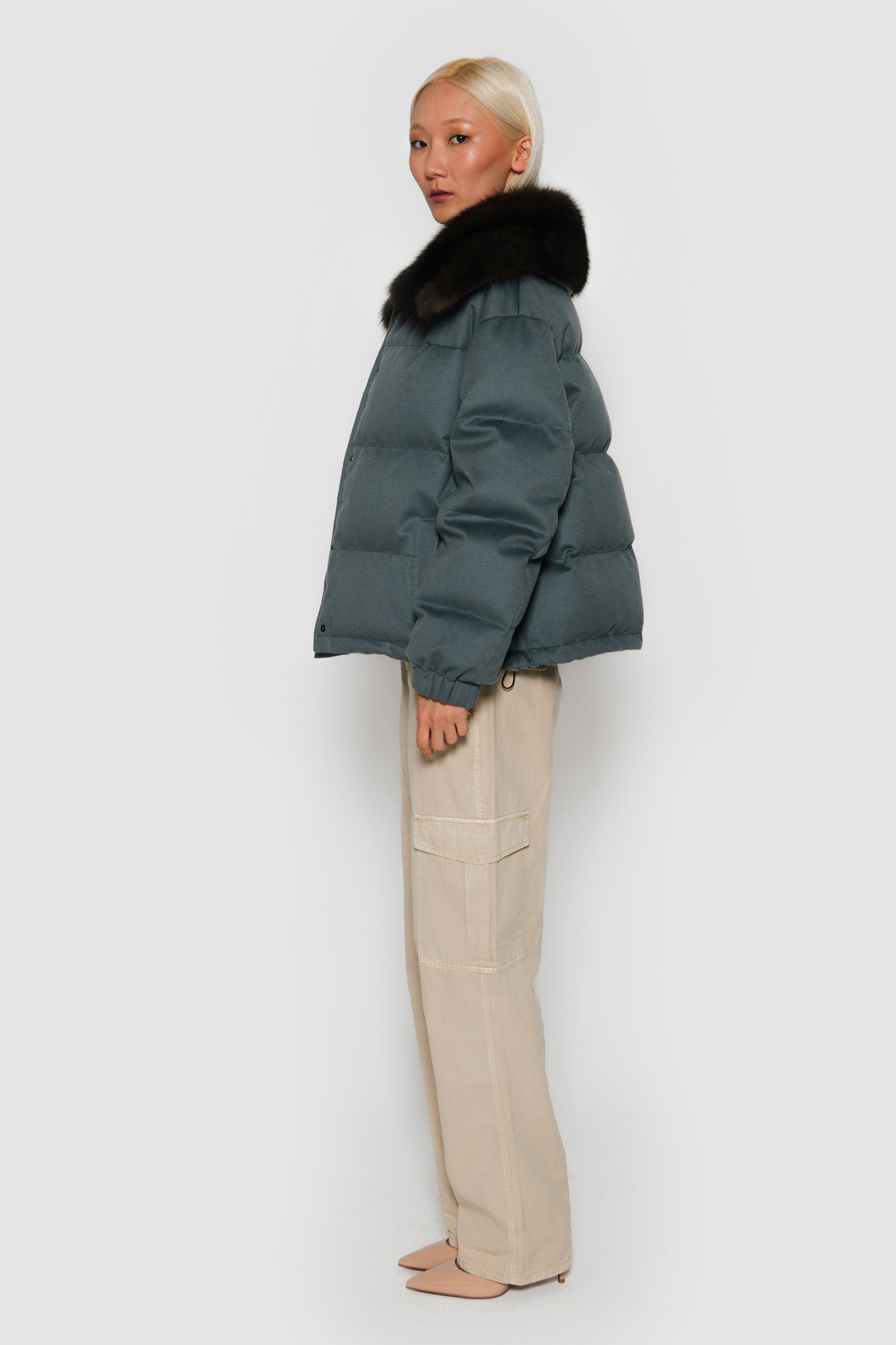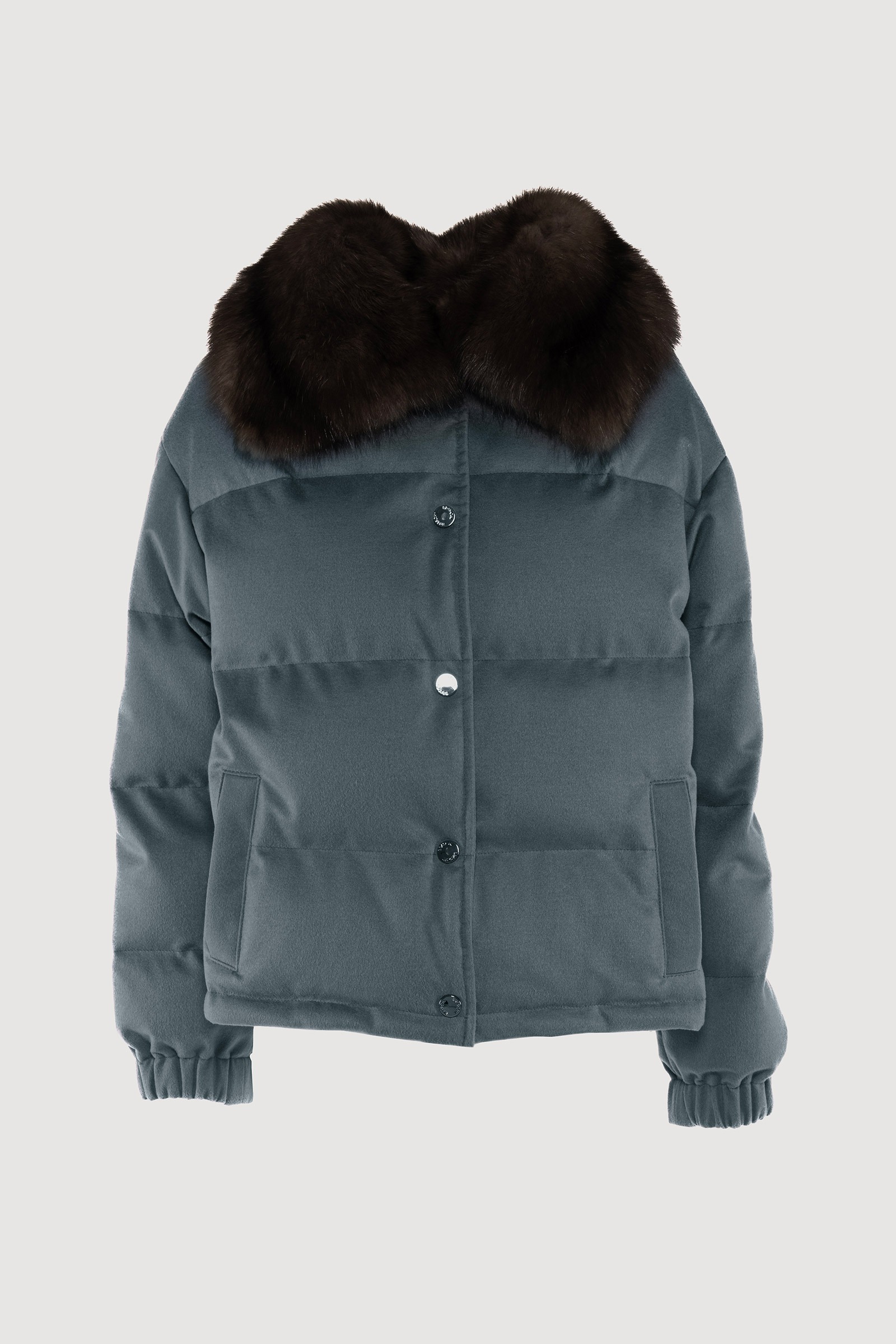 Cashmere duvet Loro Piana storm system with dark barguzinsky sable collar, closure with automatic logoed buttons.