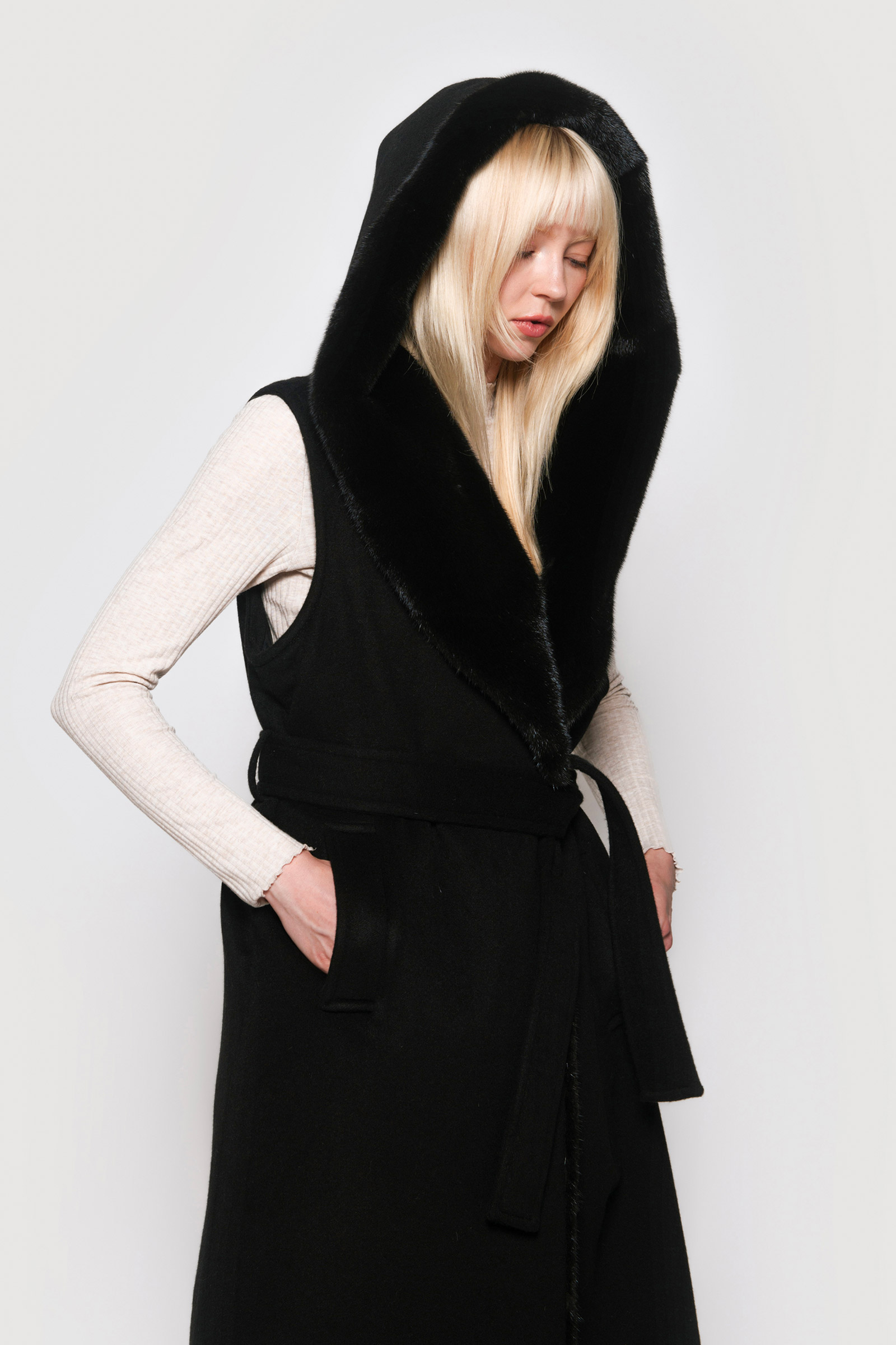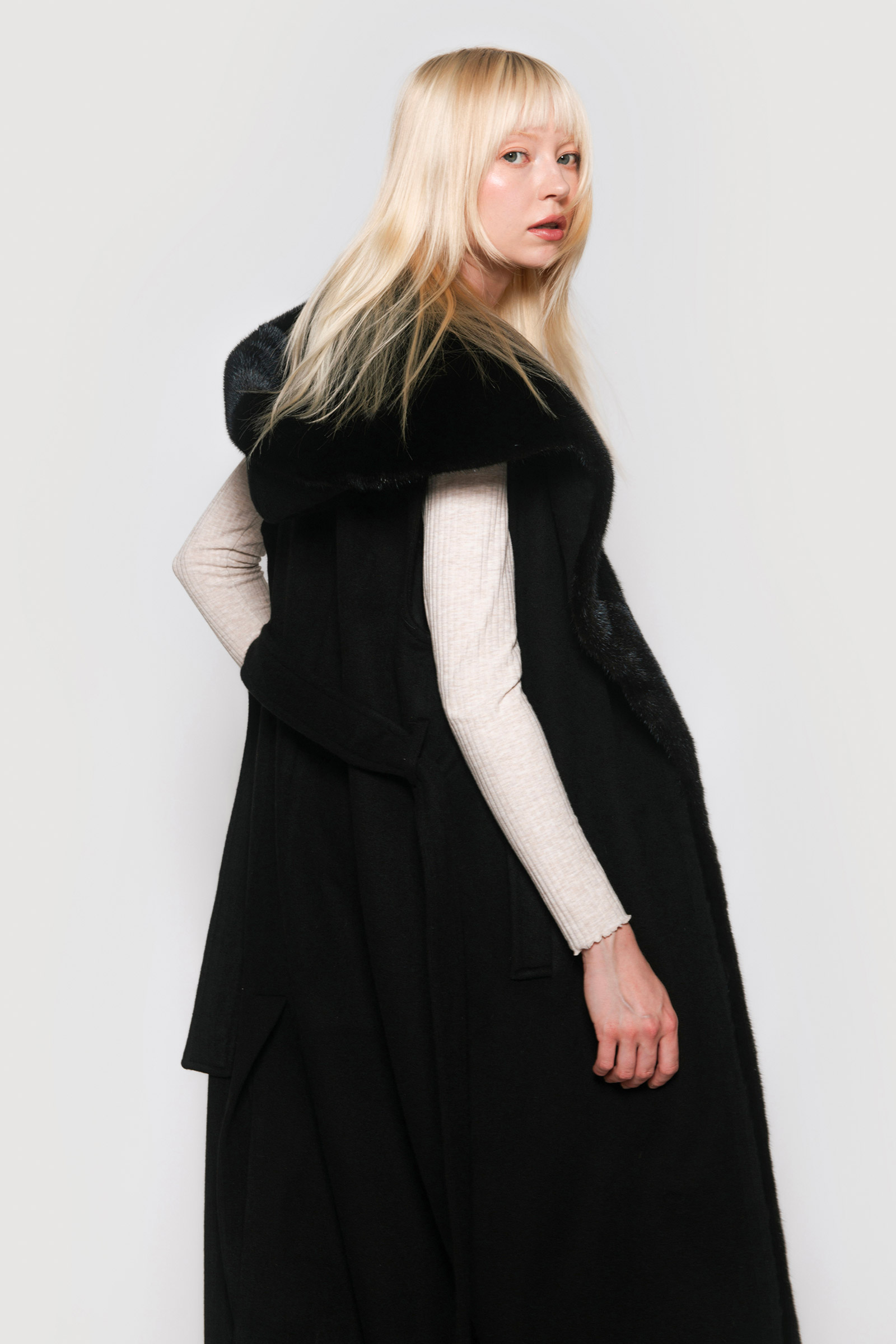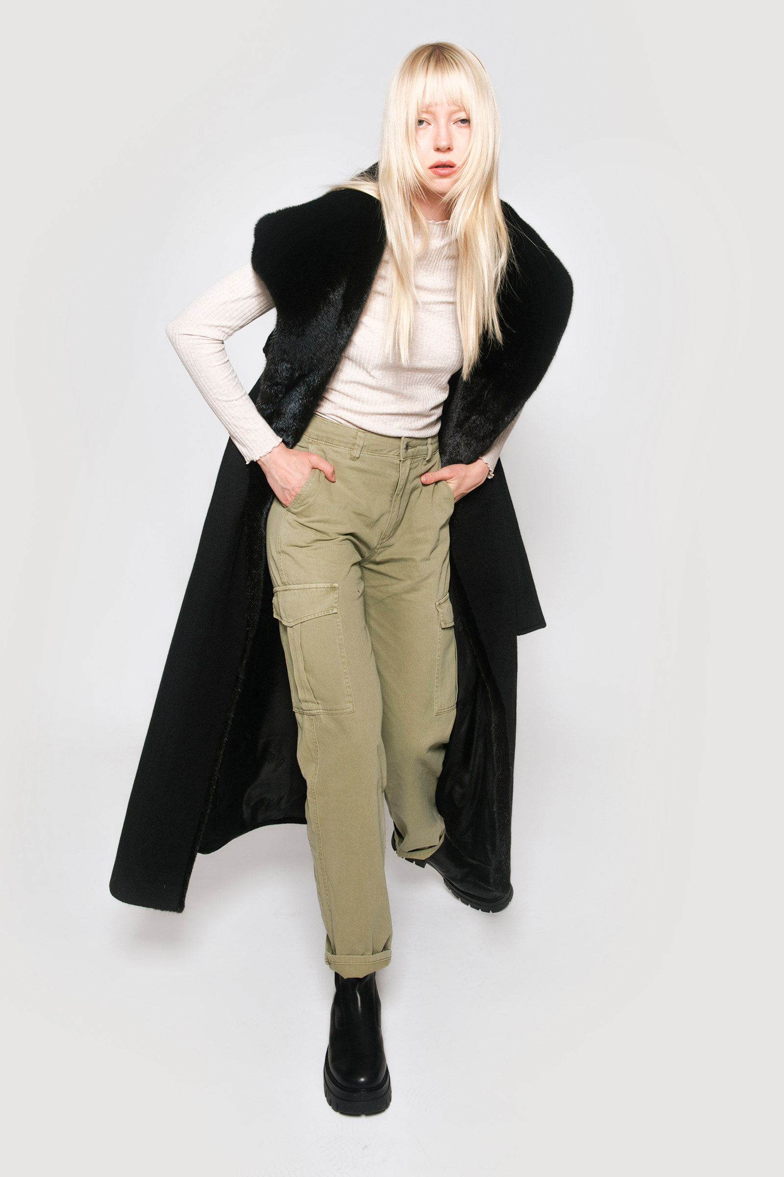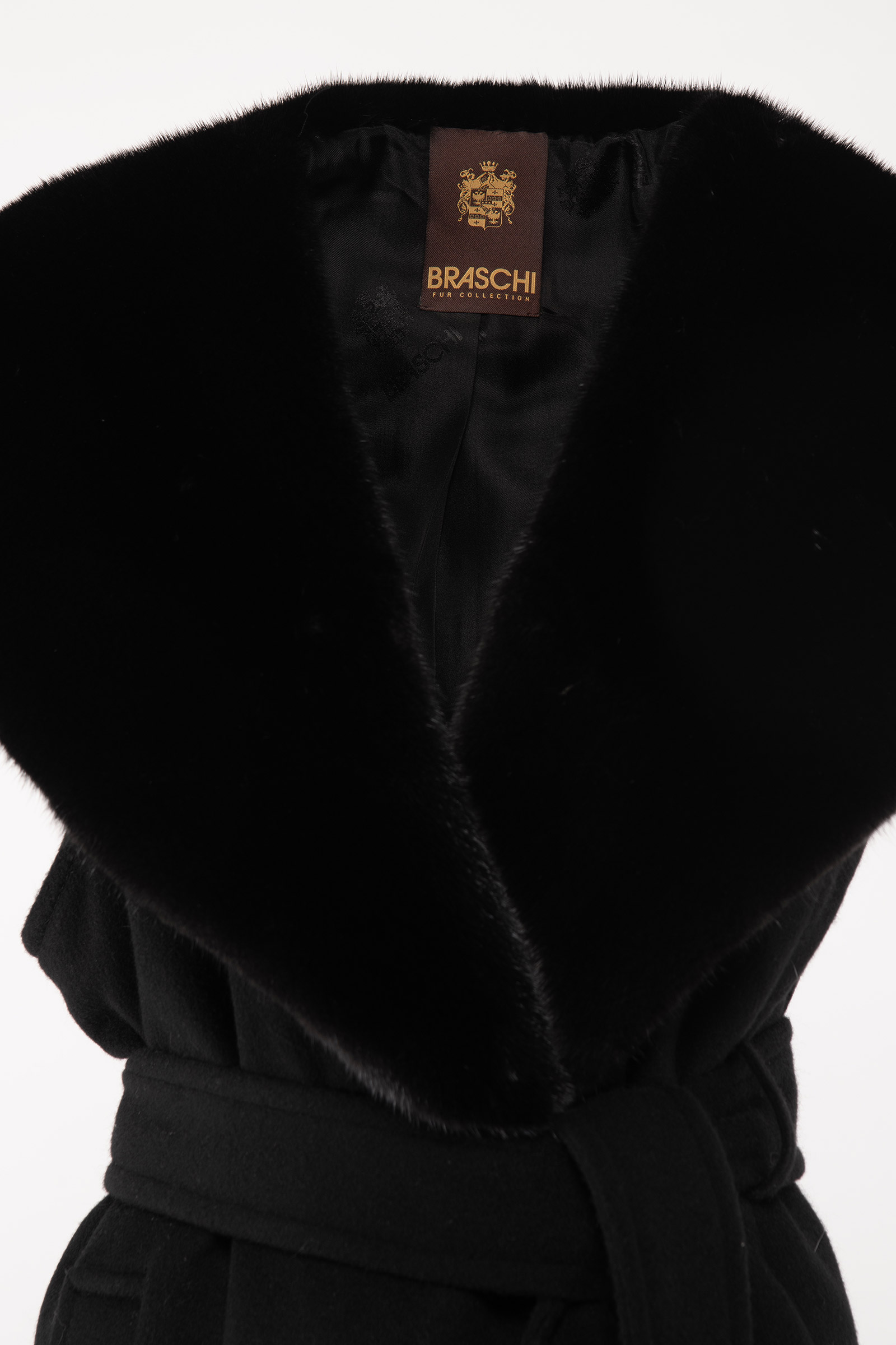 Indulge in the epitome of luxury with our Loro Piana Cashmere Coat adorned with black nafa mink accents by Braschi. This Italian masterpiece features two side pockets for practicality and sumptuous silk lining for comfort. Elevate your style with a touch of opulence and Italian craftsmanship. Shop now to experience warmth, sophistication, and timeless elegance in one exquisite piece.