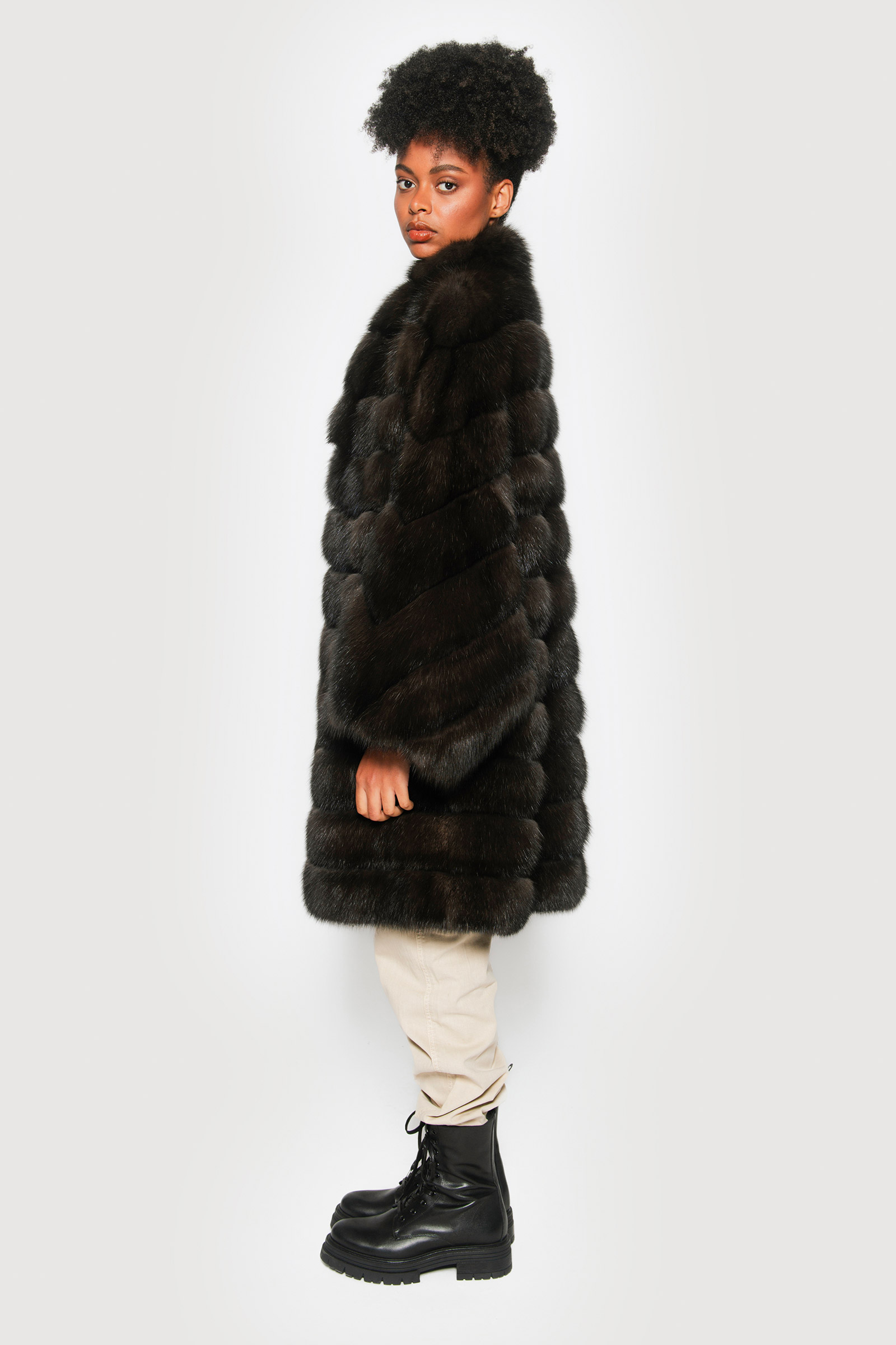 Indulge in opulence with Braschi’s Long Dark Silvery Bargu Sable Jacket. Meticulously crafted with horizontal workmanship, this jacket exudes elegance and sophistication. Its silk lining ensures warmth and comfort in the winter chill. Embrace Italian craftsmanship and elevate your fashion statement with Braschi.