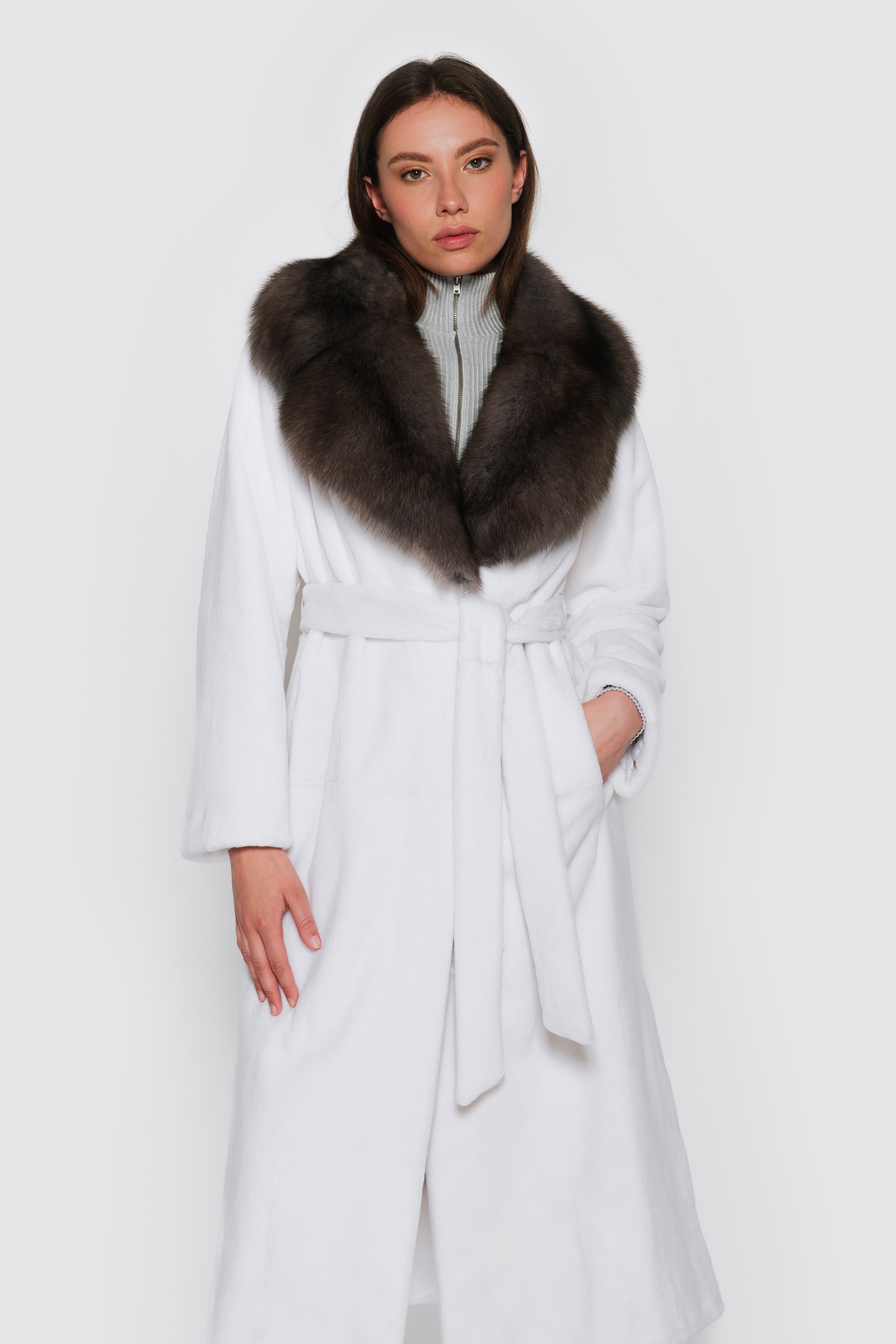 / Coat in white mink and sable smoke