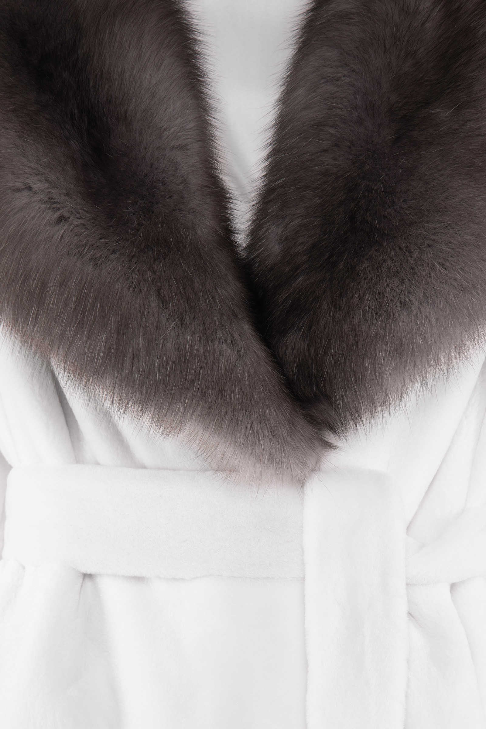 Shaved mink coat with lapel collar in smoke sable, mink belt closure, silk lining