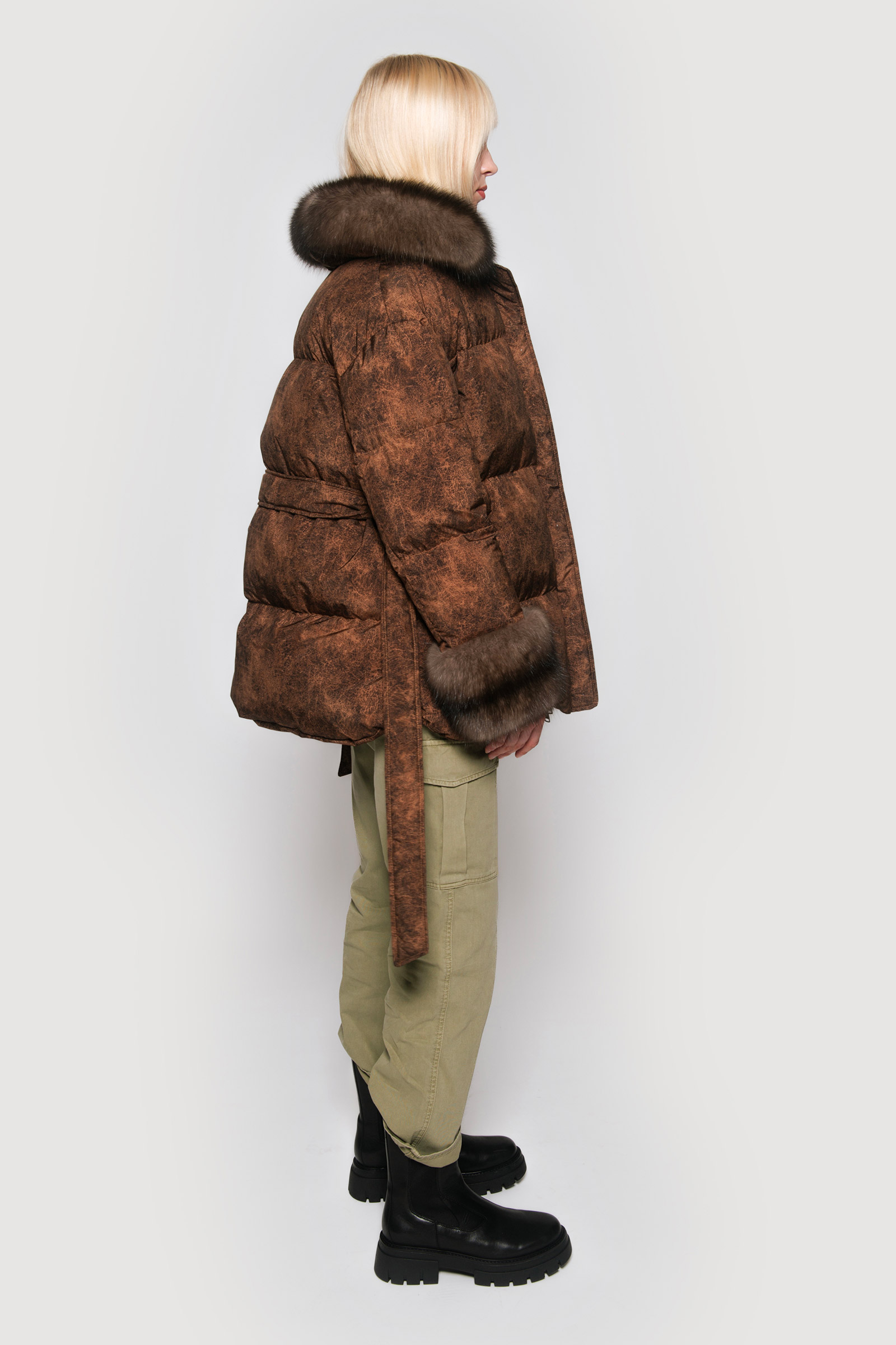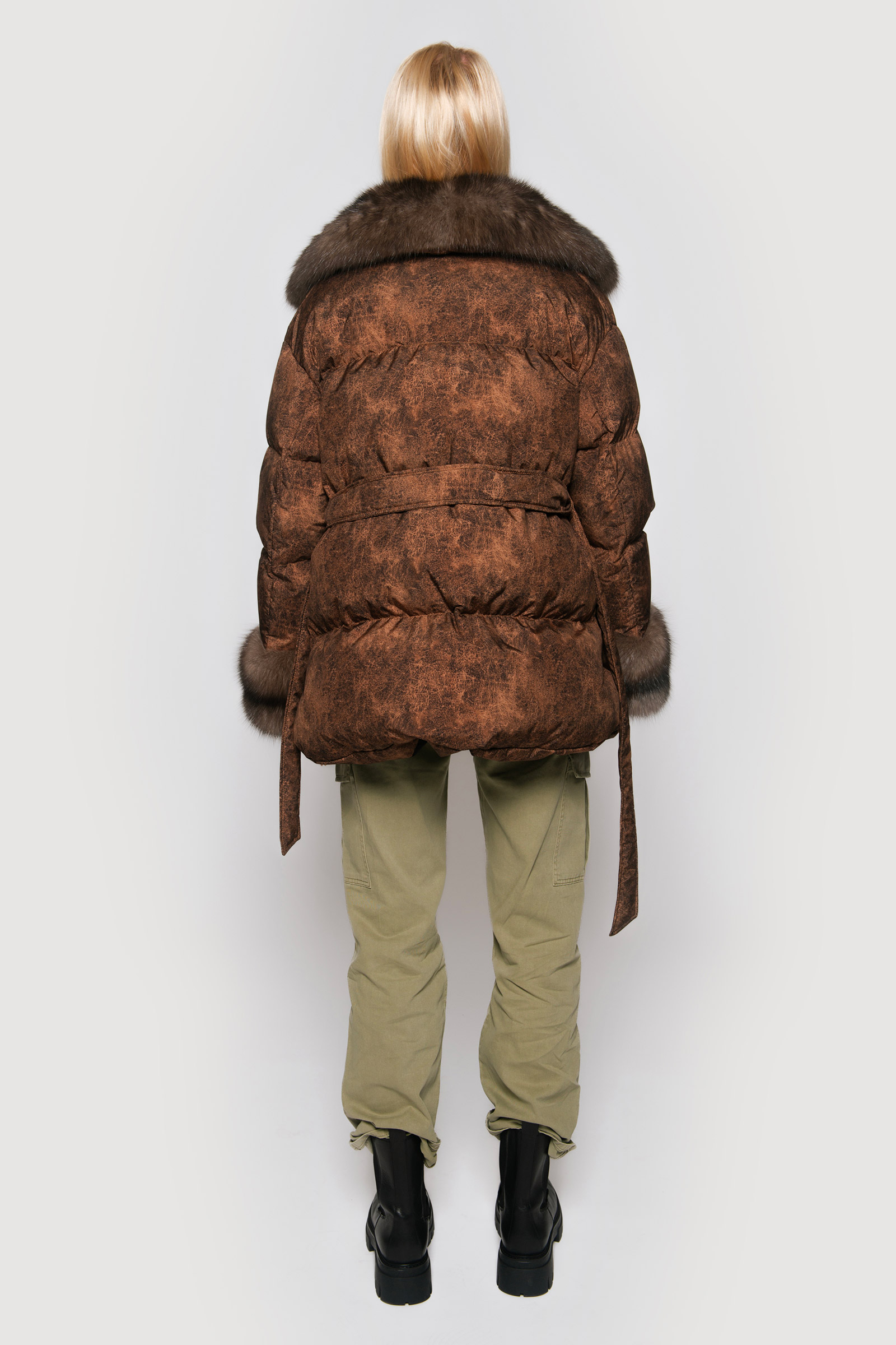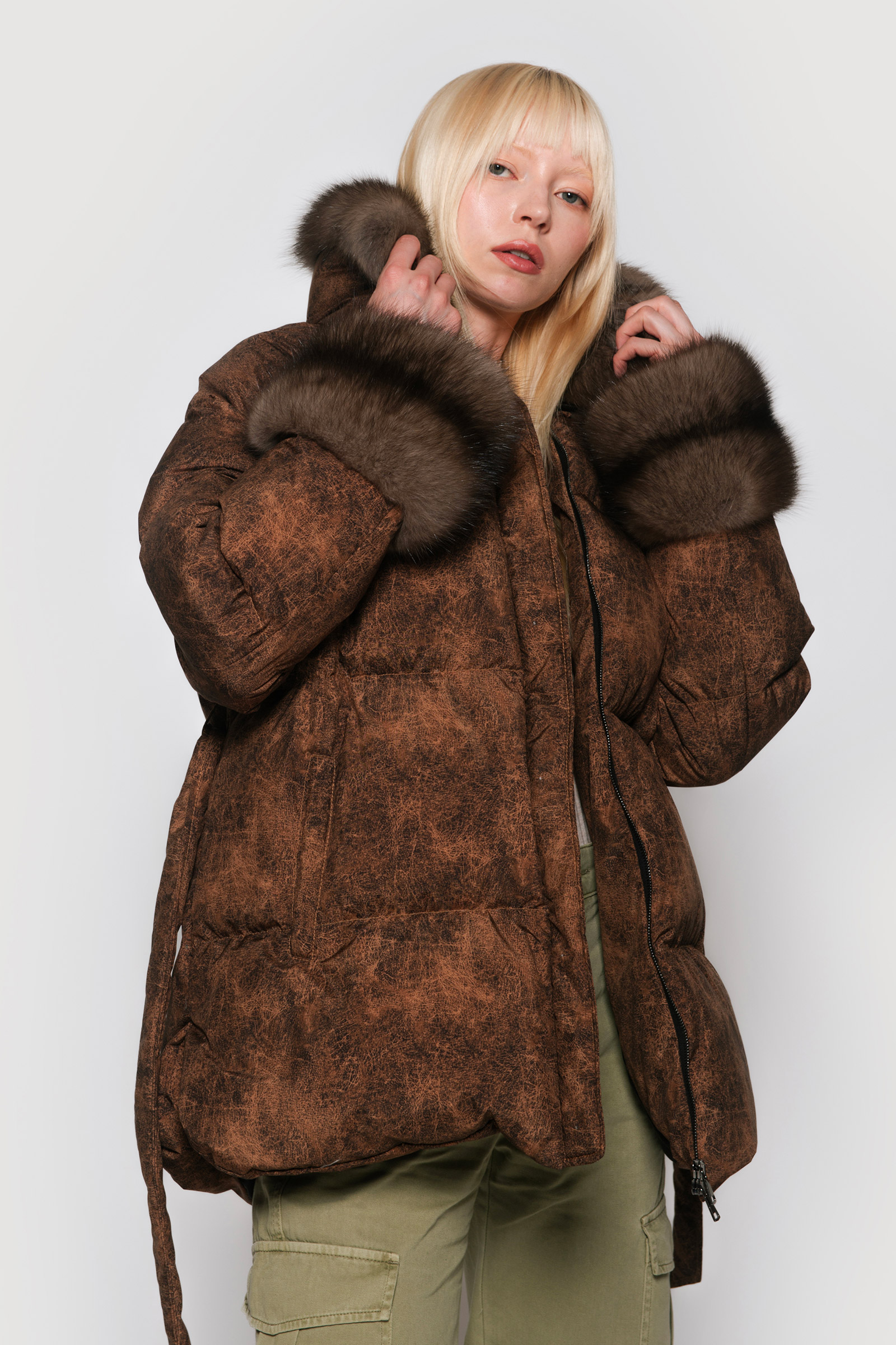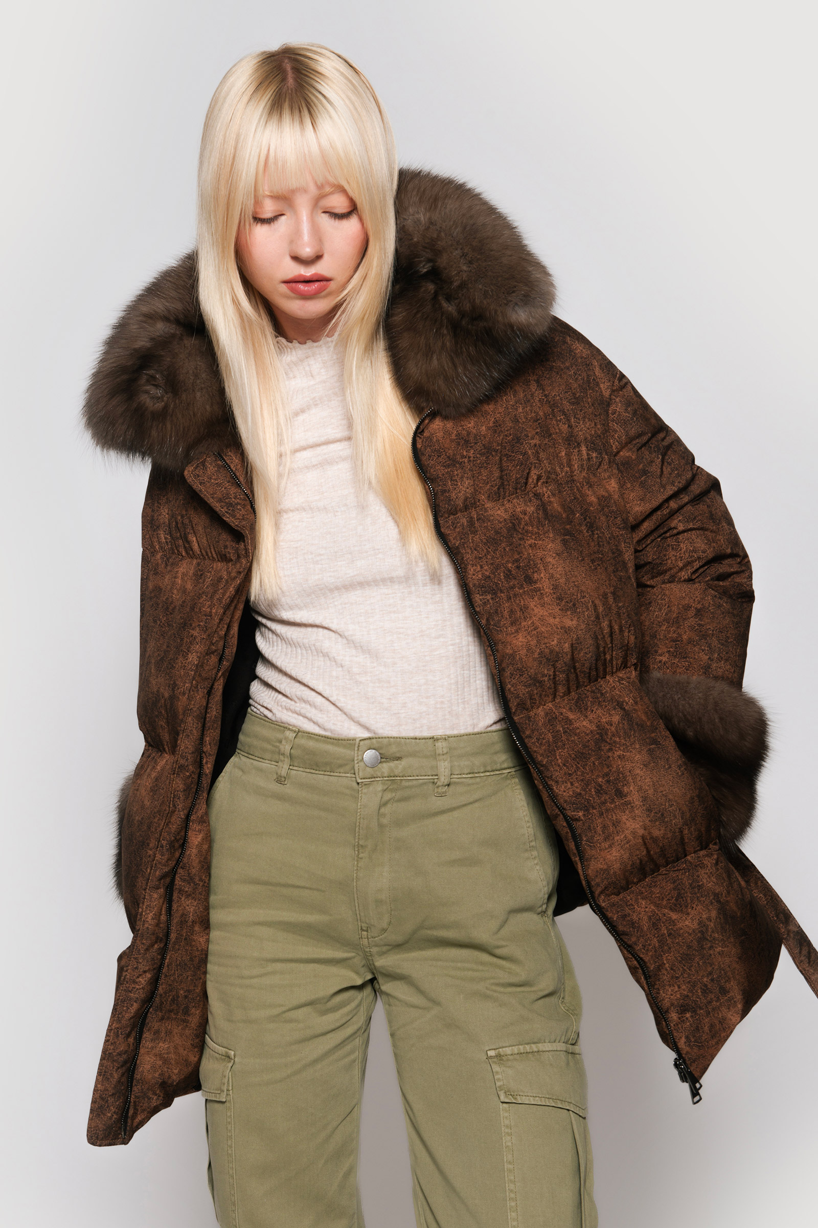 Down jacket in limonta fabric and graphite sable