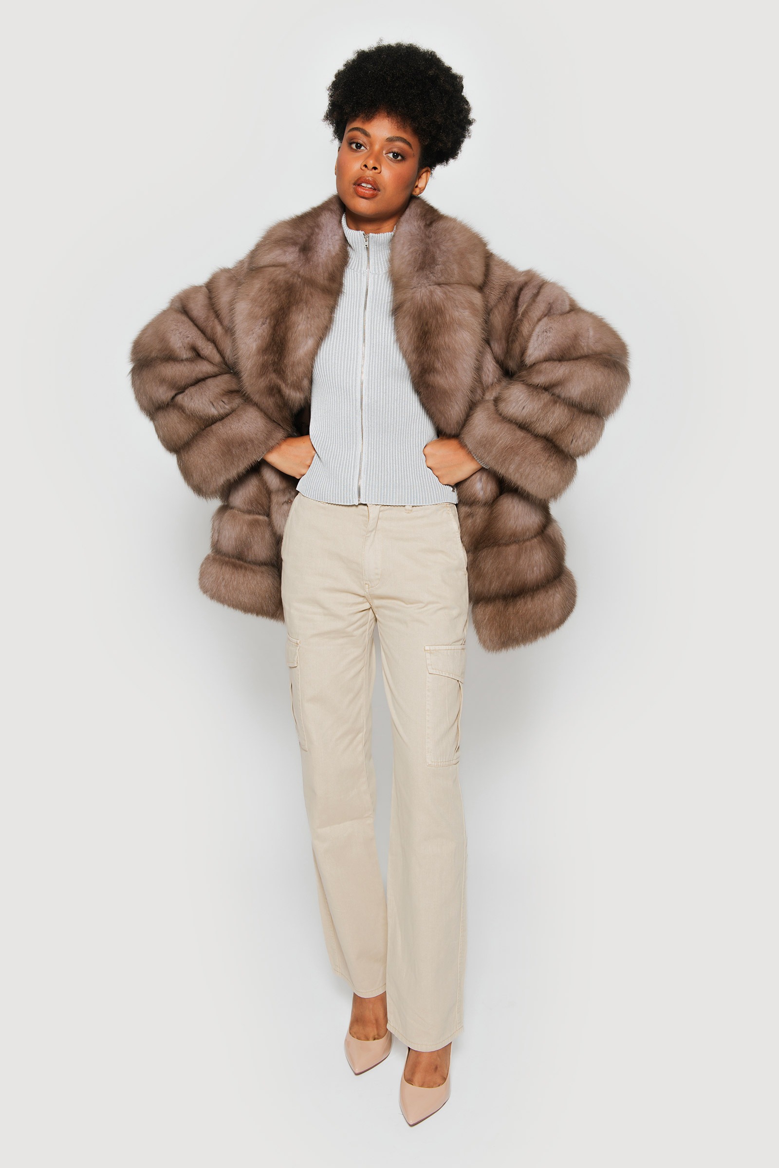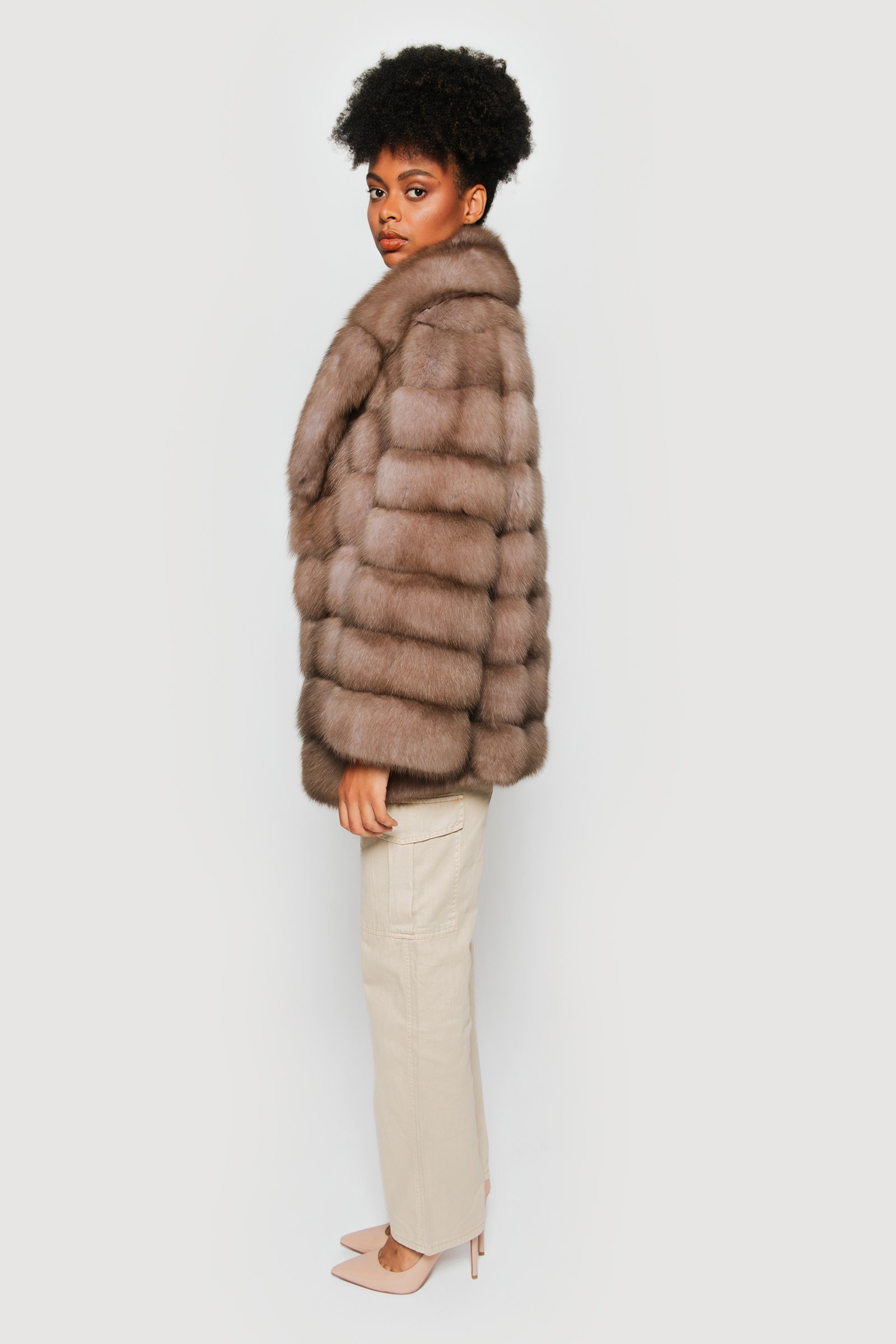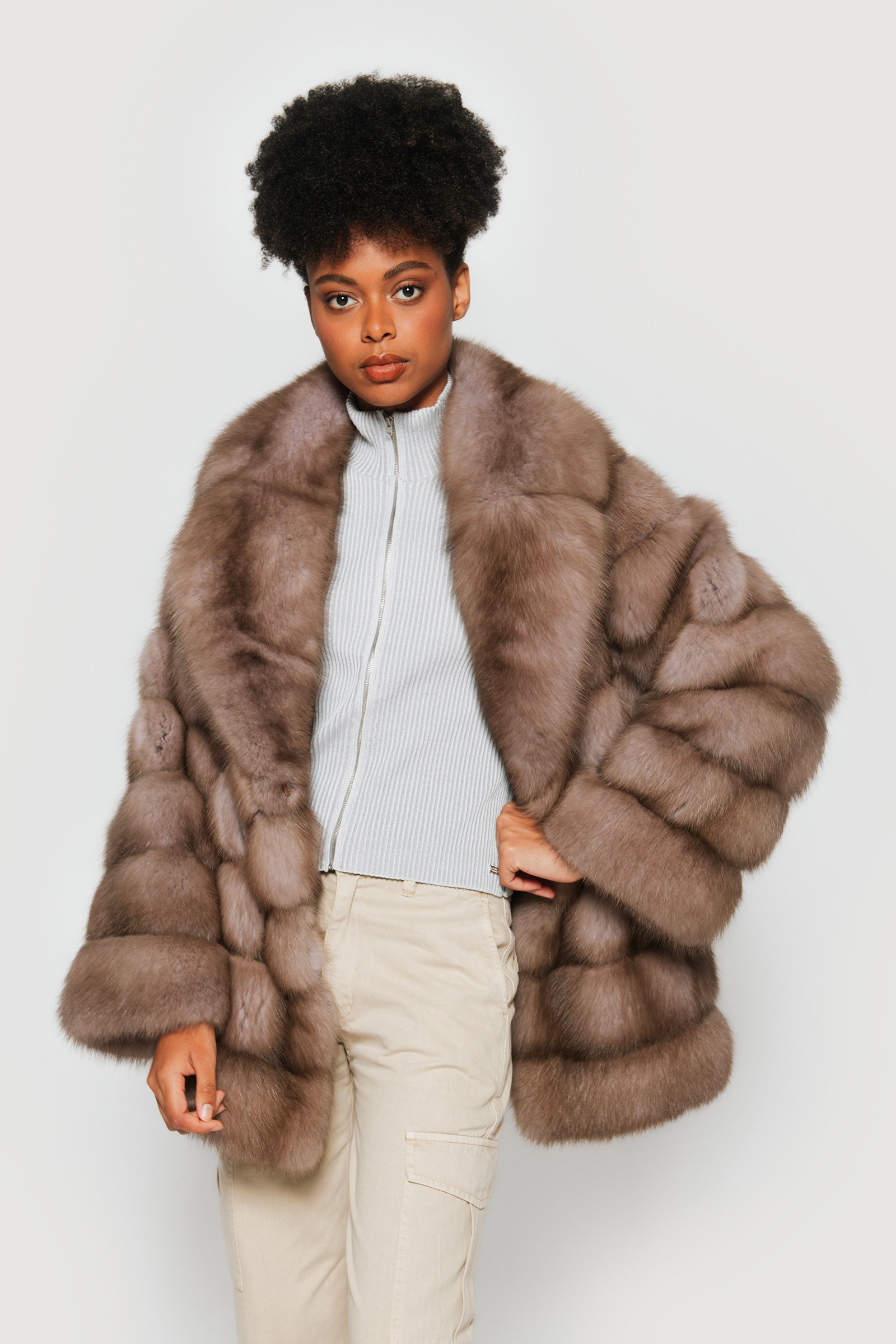 Majesty sable jacket with wide lapel collar, horizontal workmanship.