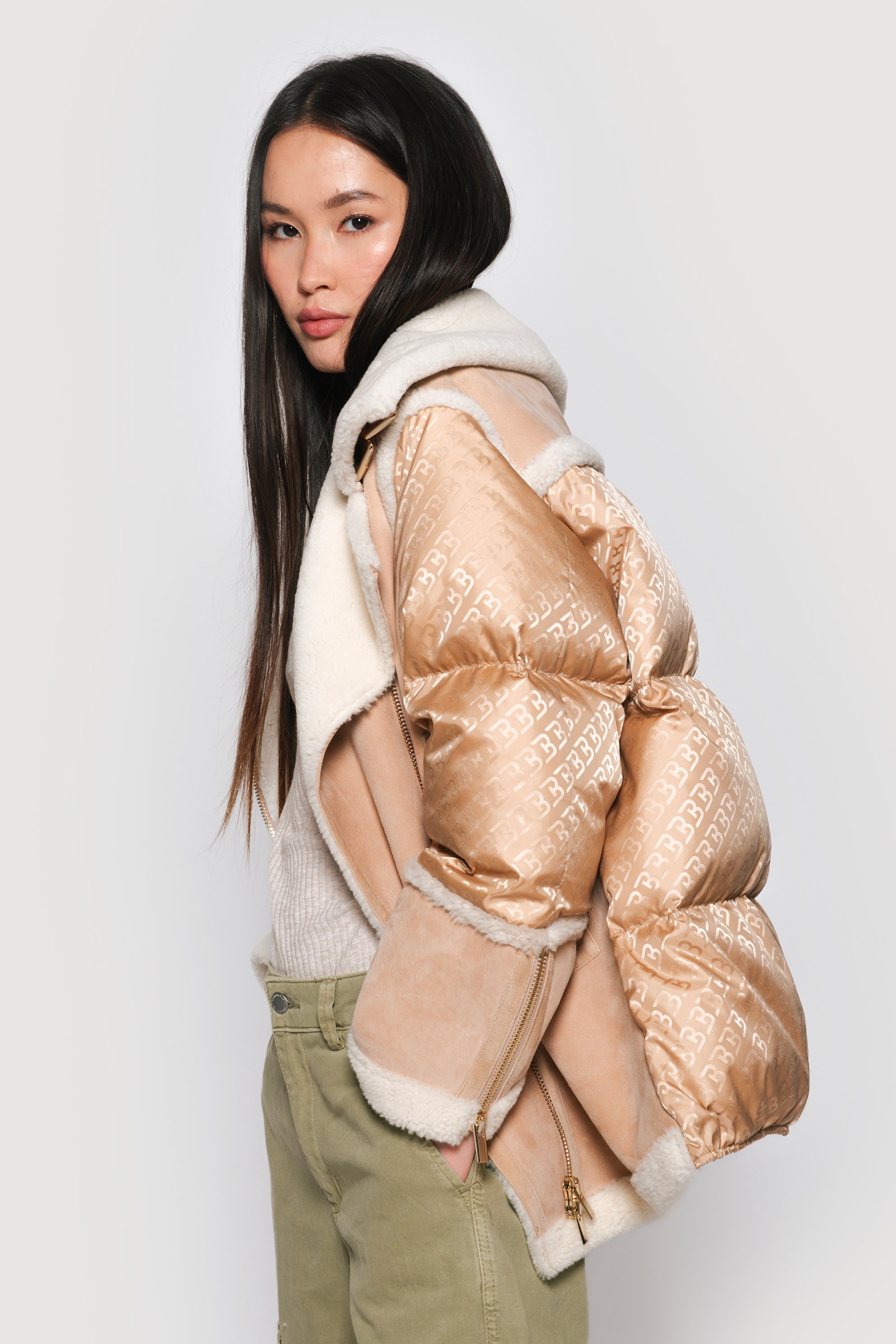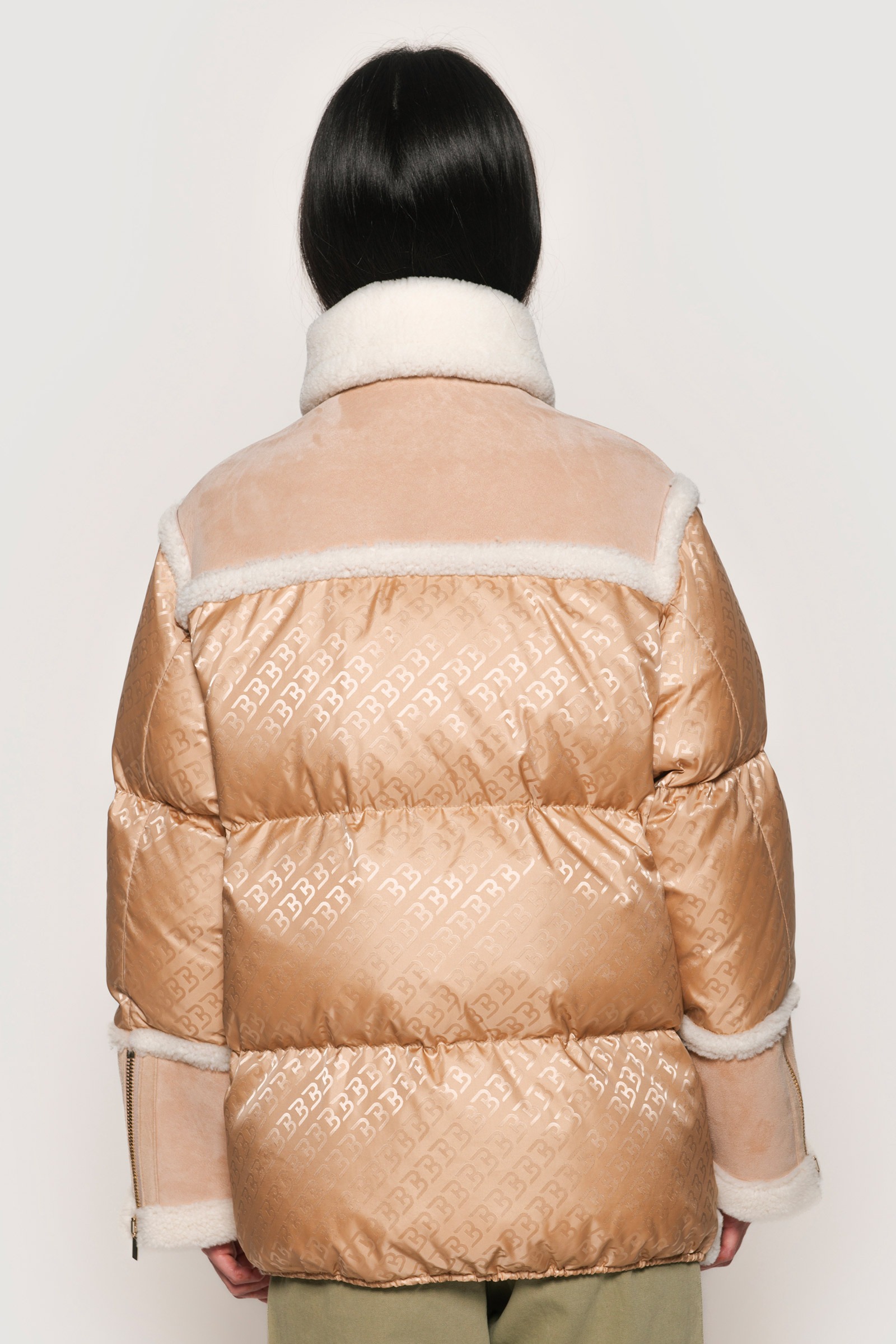 / Logoed down jacket and light camel shearling