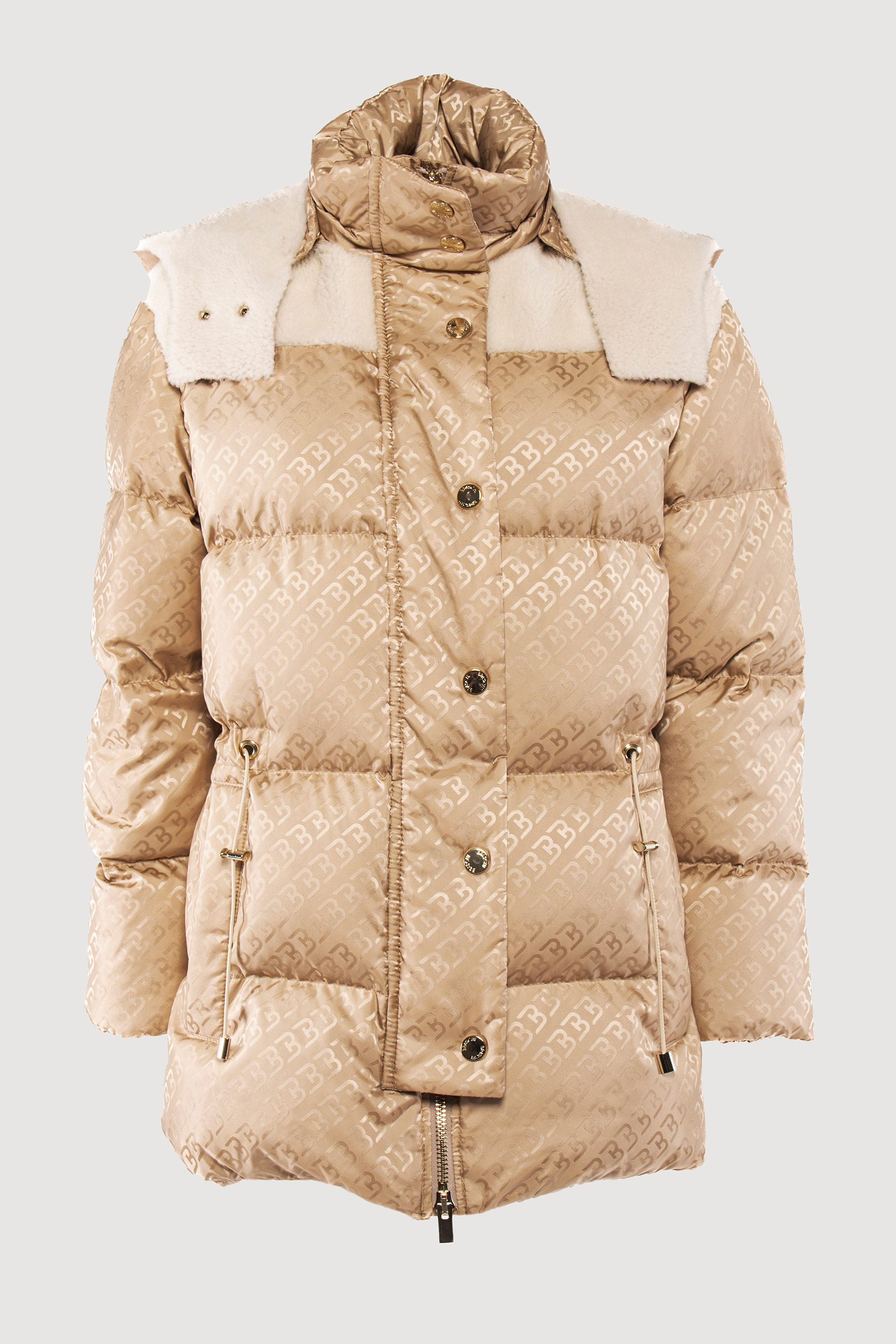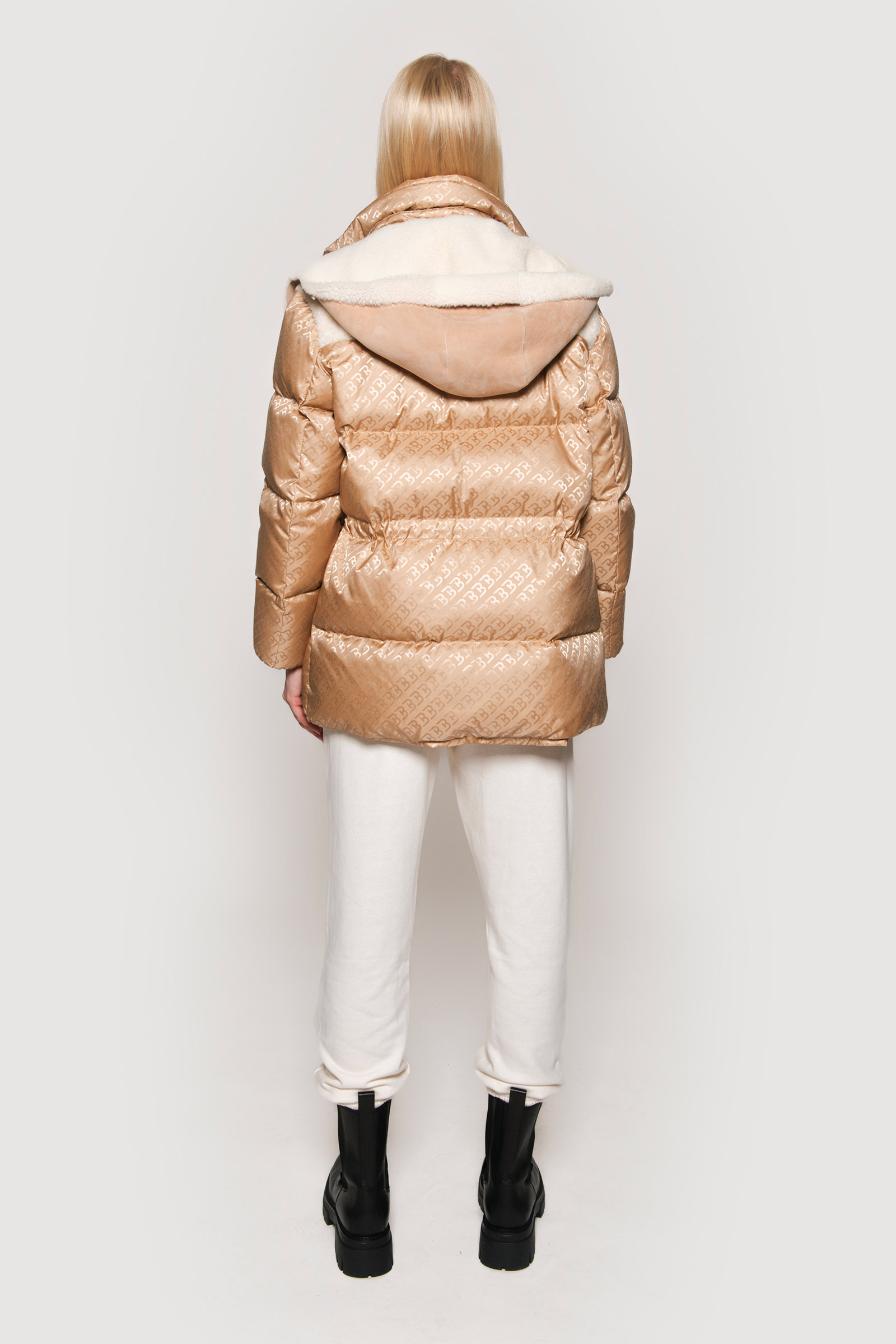 Logoed down jacket and light camel shearling