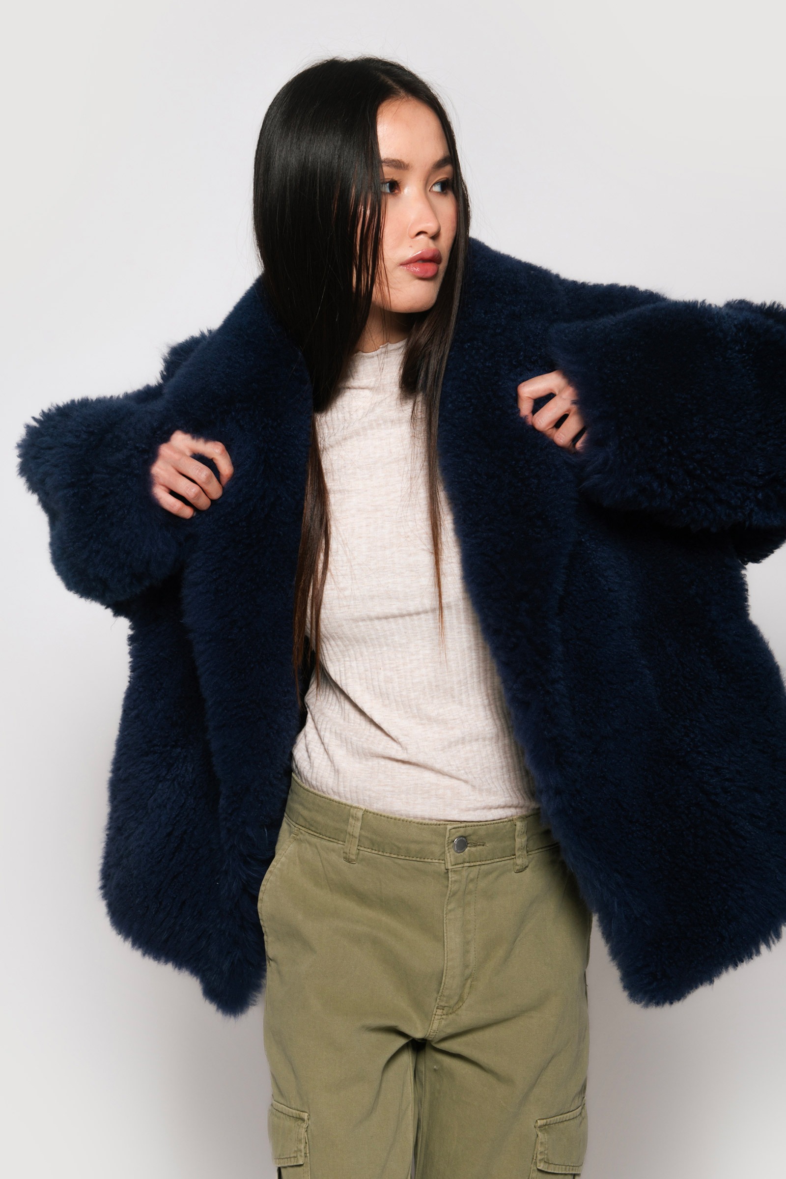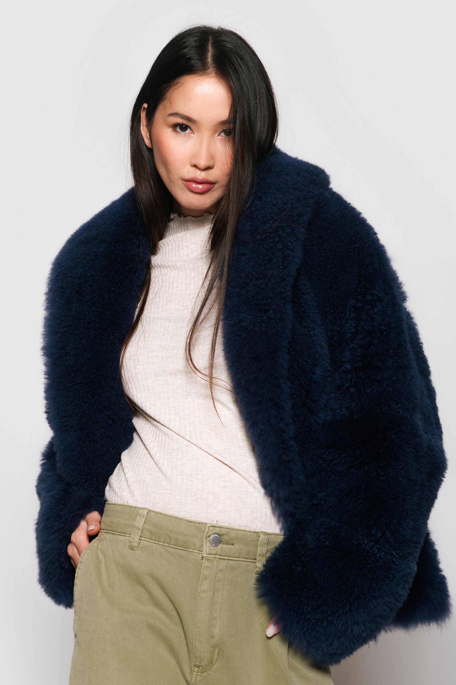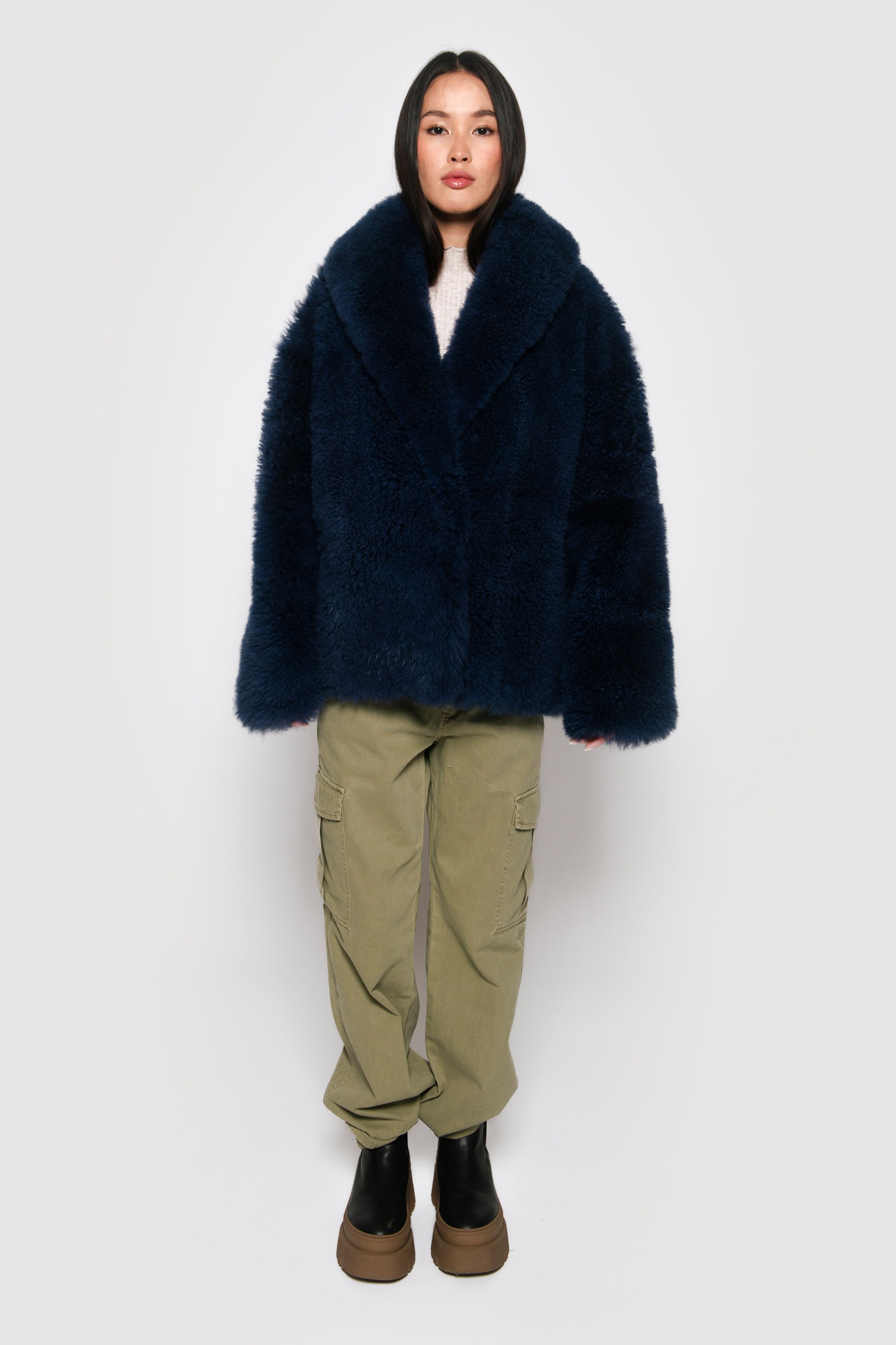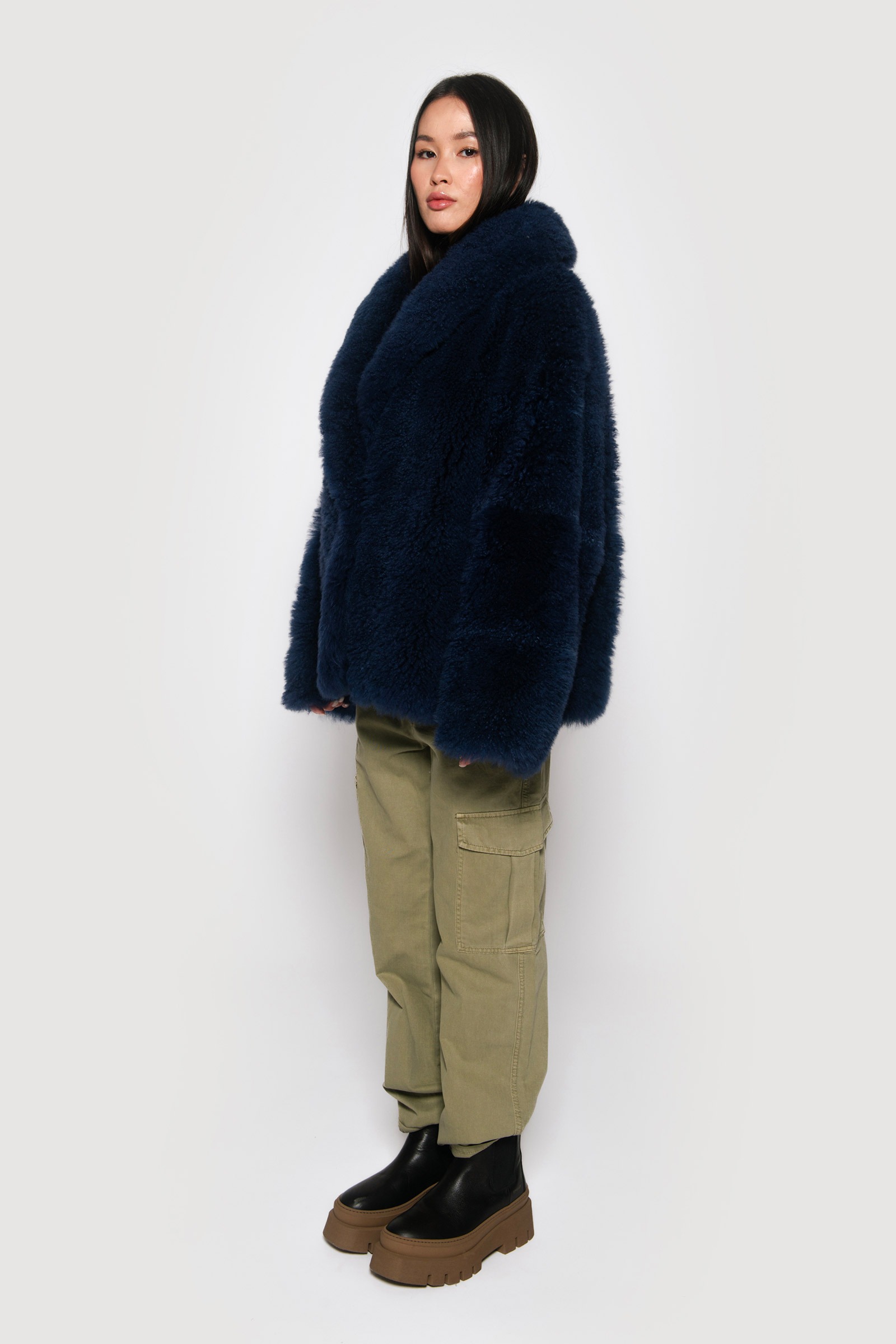 / Midnight blue shaved mohair goat jacket