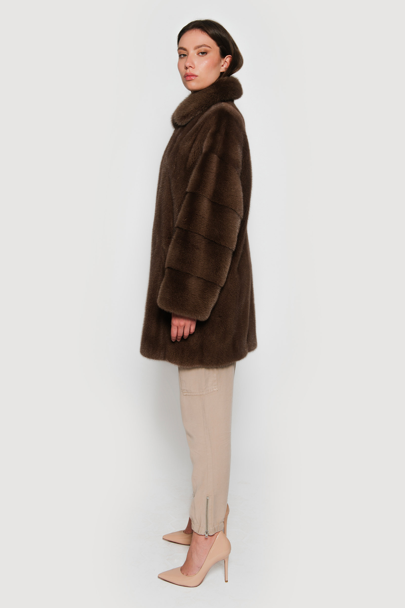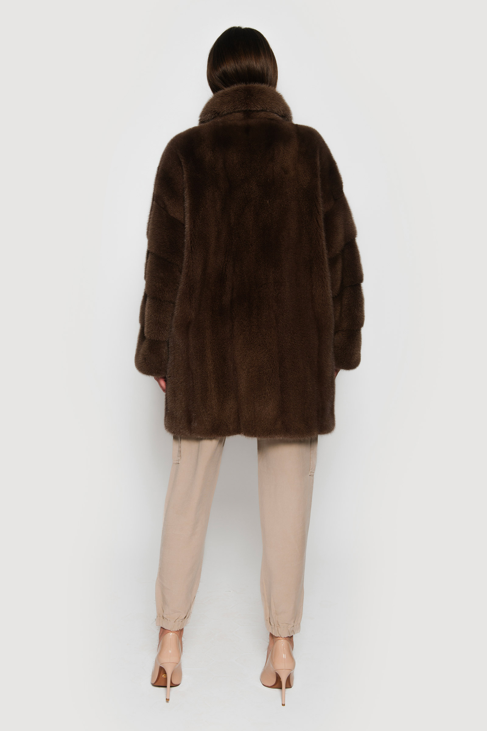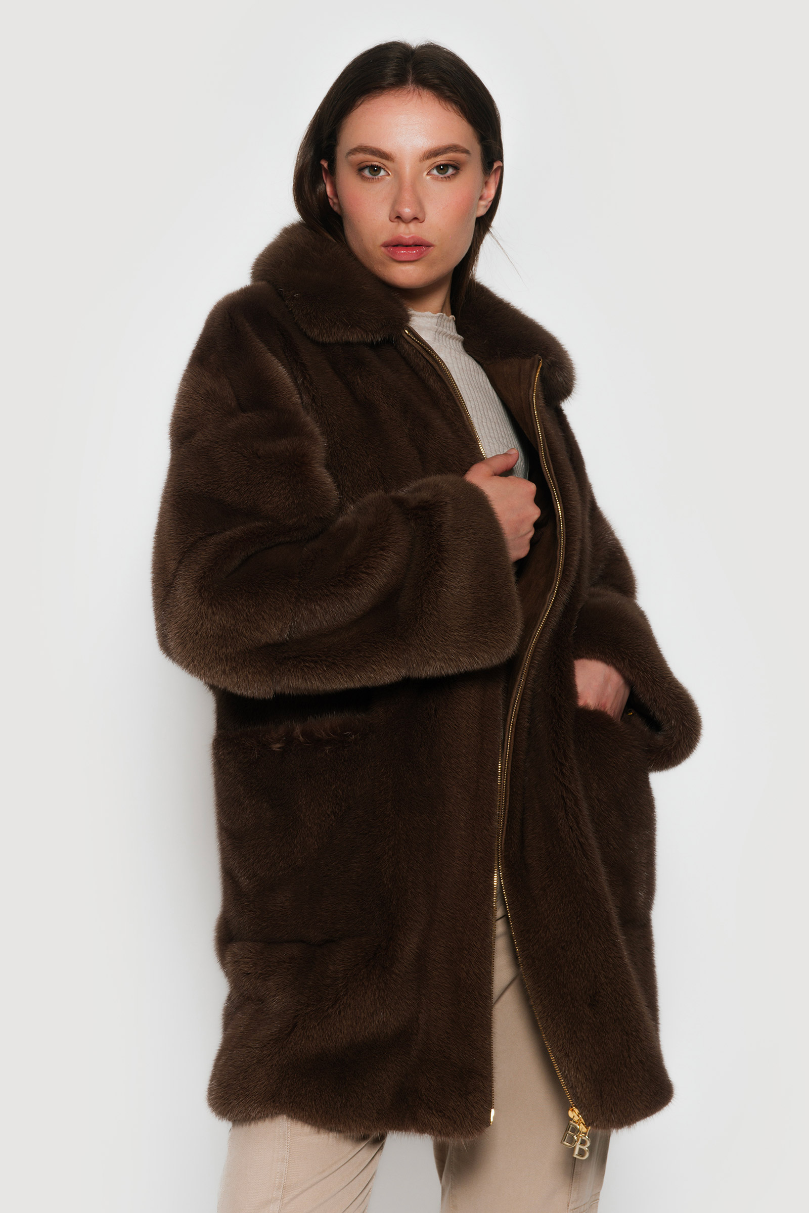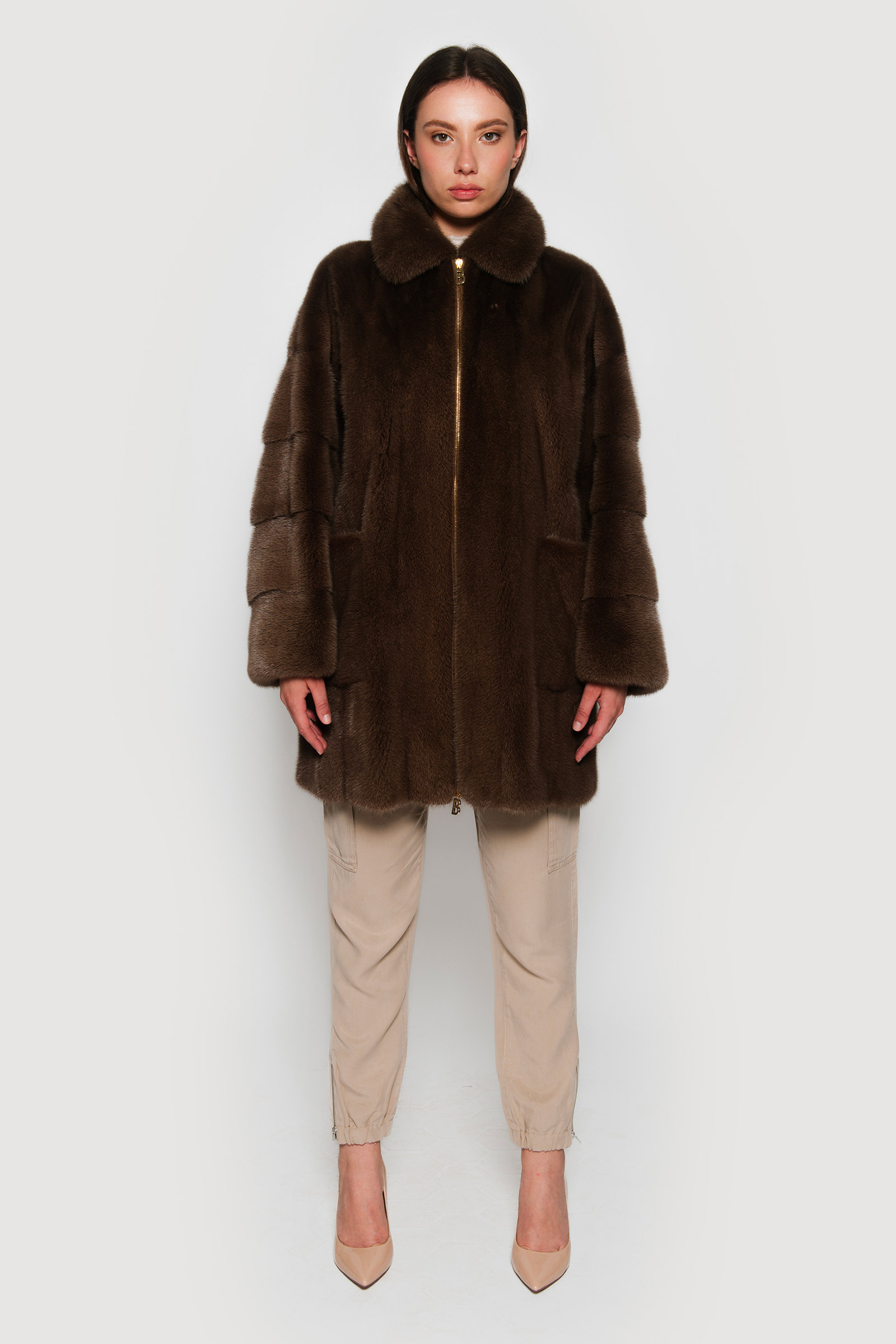 Elevate your winter style with Braschi’s Vertical Mink Jacket. Meticulously crafted with a straight collar and a zip closure, this jacket exudes timeless elegance. Its silk lining provides unparalleled warmth and comfort. Embrace Italian craftsmanship and make a statement with Braschi.
