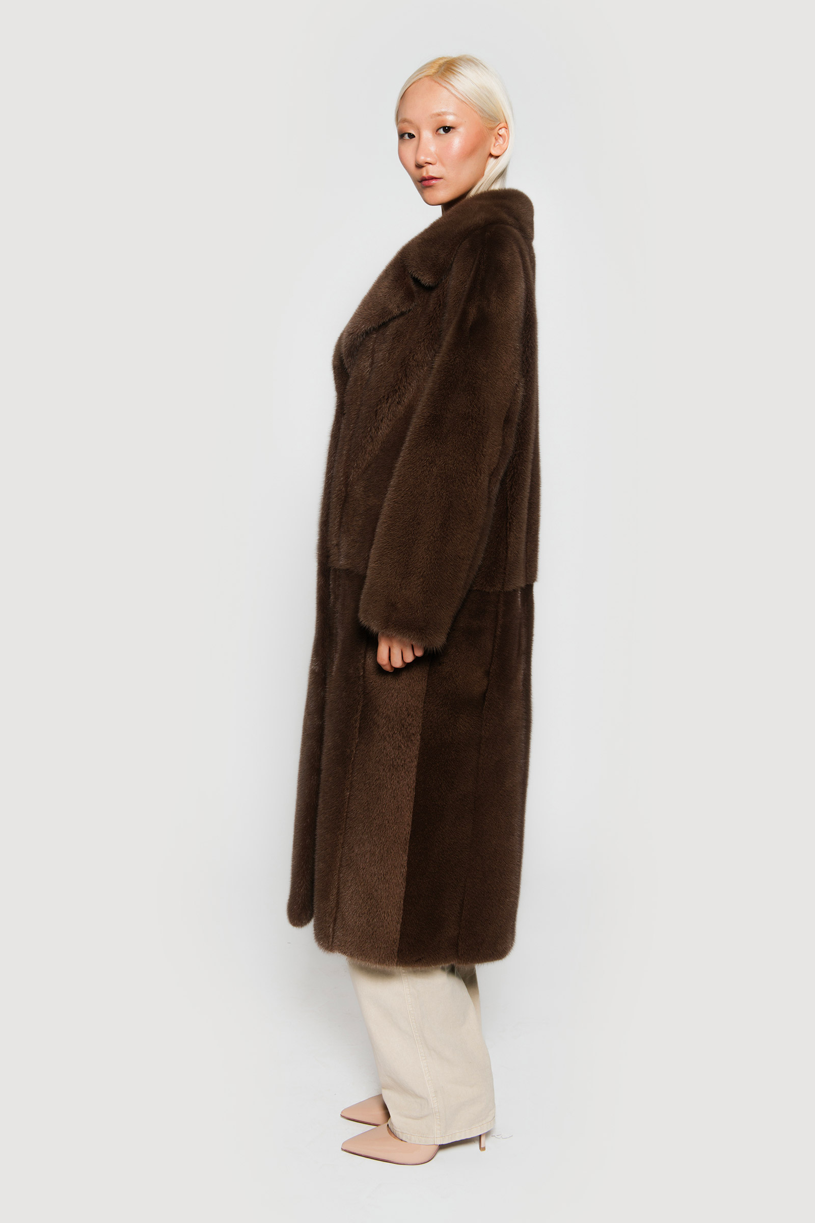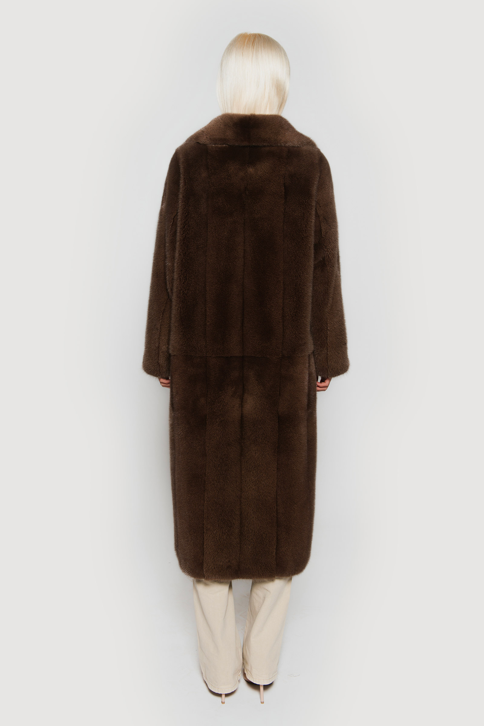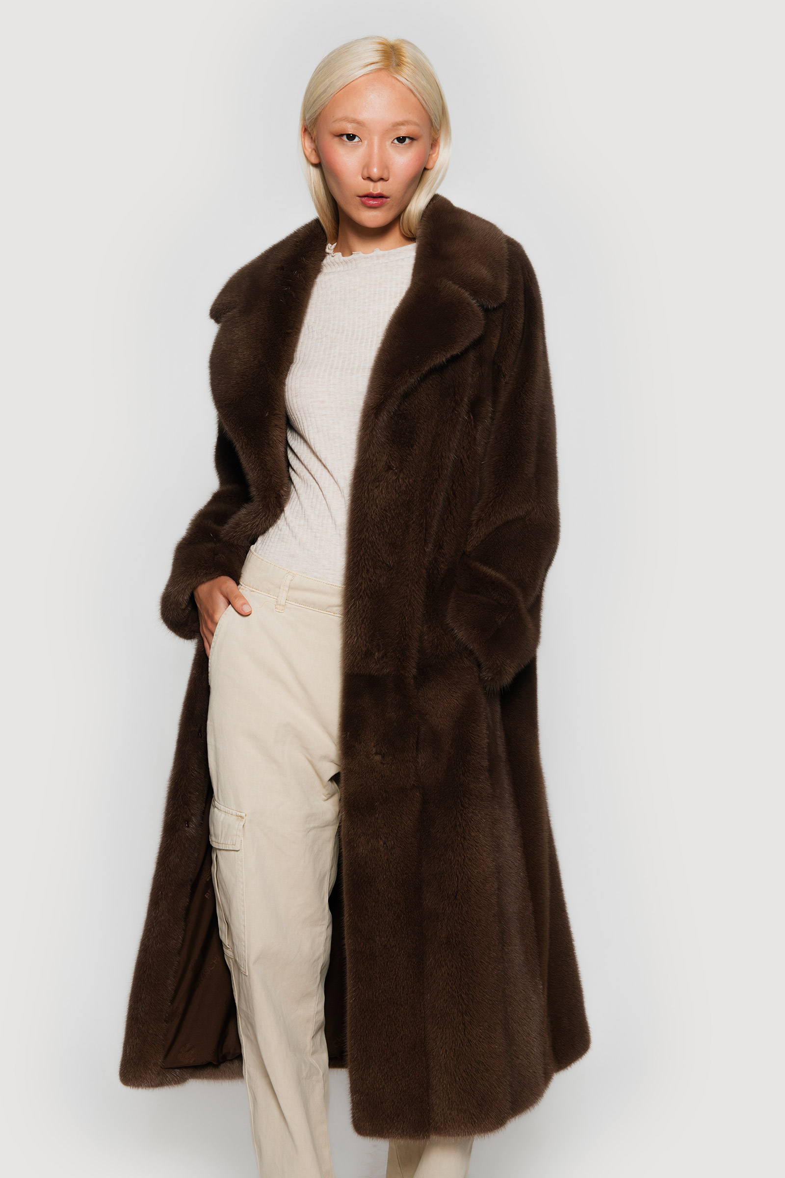 Elevate your winter wardrobe with the Long Vertical Mink Jacket from Braschi. Meticulously crafted with a lapel collar and button closure, this exquisite piece exudes timeless elegance. Its silk lining ensures unparalleled warmth and comfort. Embrace Italian craftsmanship and make a statement with Braschi.