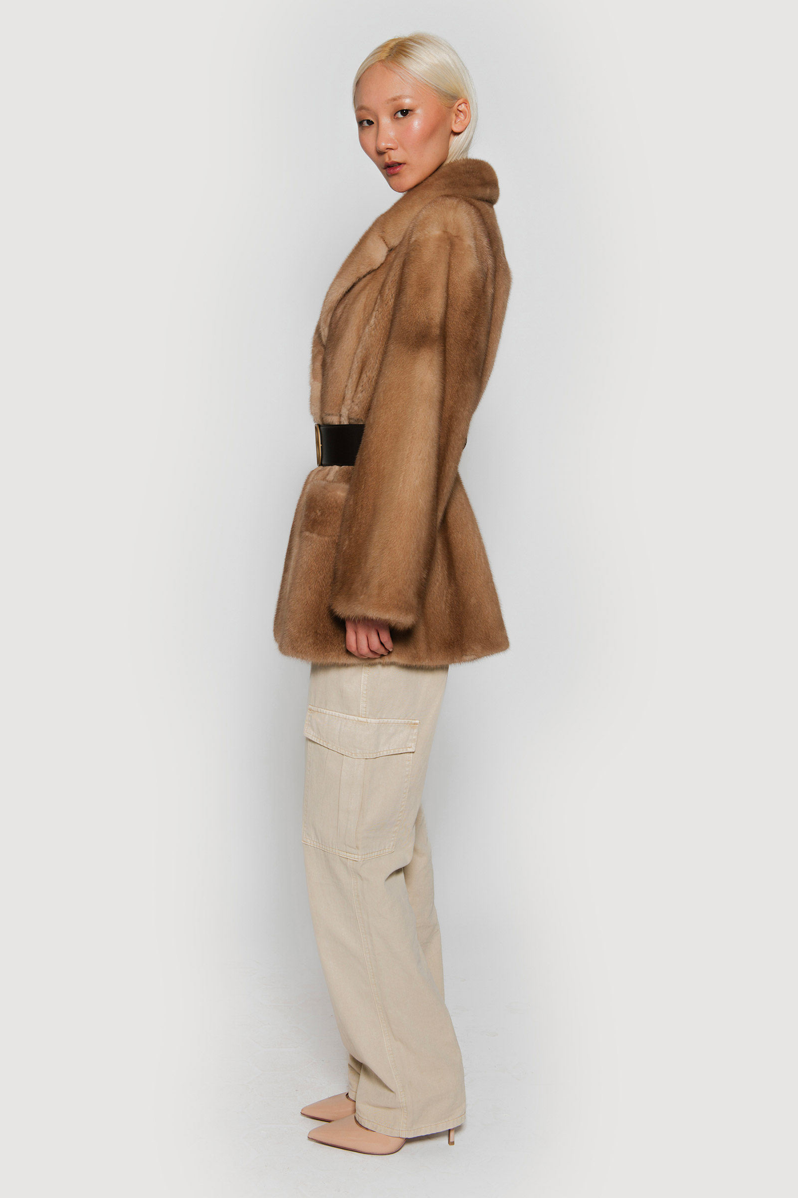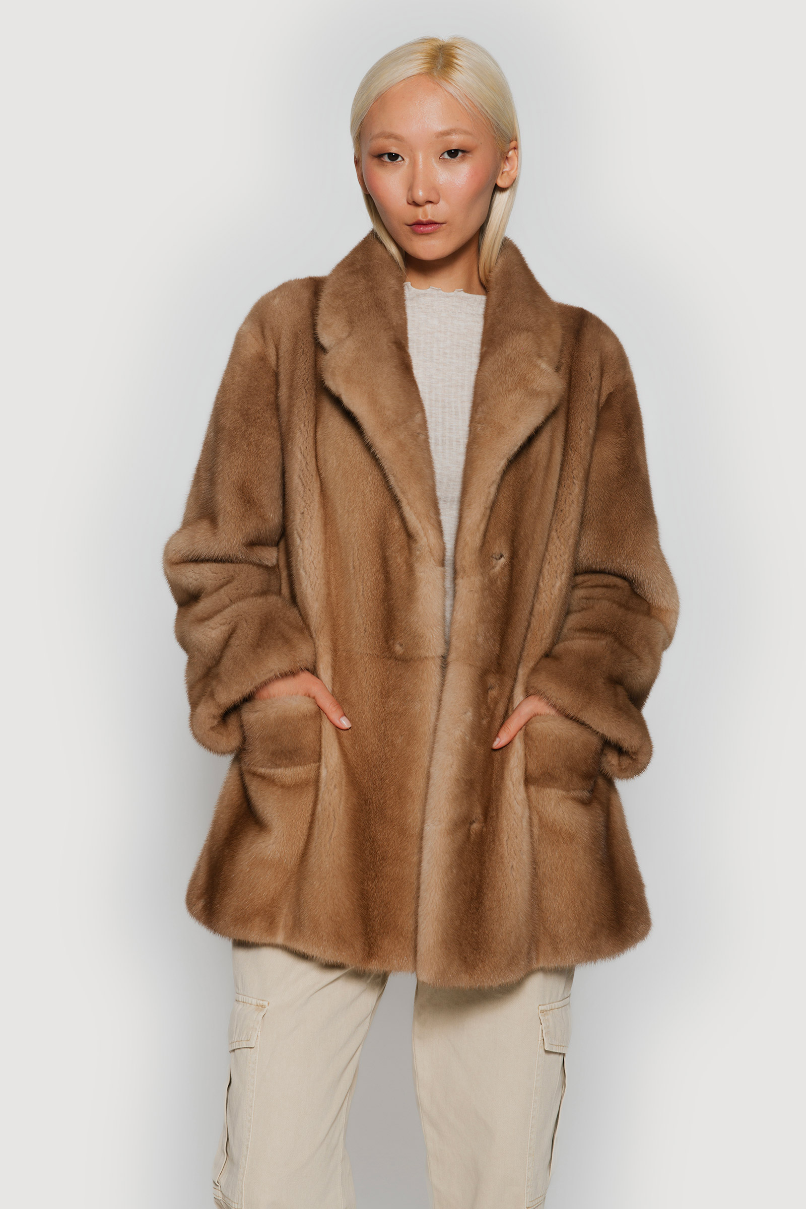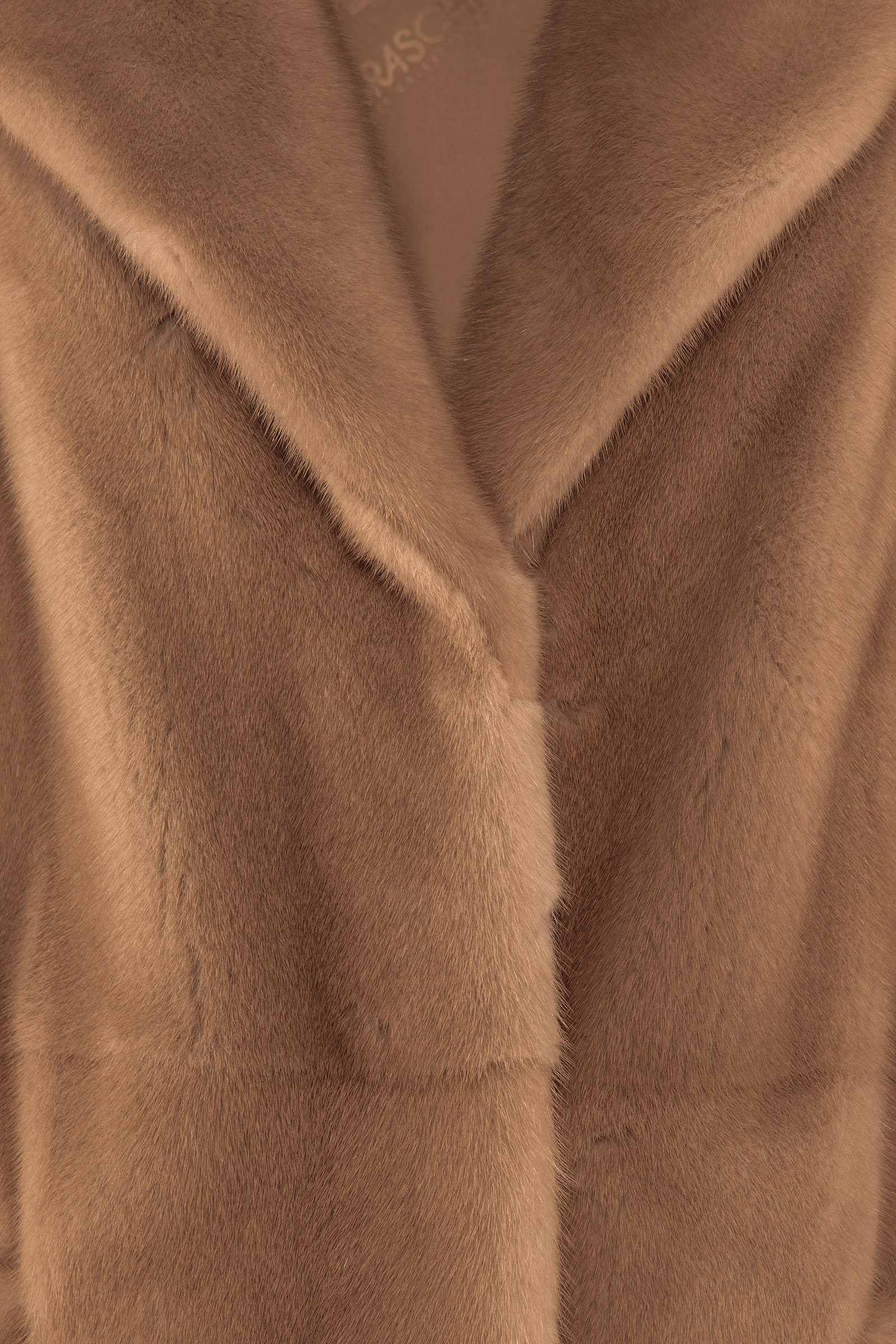 Indulge in opulent elegance with our vertical mink jacket by Braschi. Made in Italy, this extraordinary piece showcases a refined lapel collar and a seamless button fastening for a tailored fit. Its sumptuous silk lining ensures comfort and luxury. Elevate your wardrobe with timeless style and unmatched craftsmanship. Discover Braschi today.