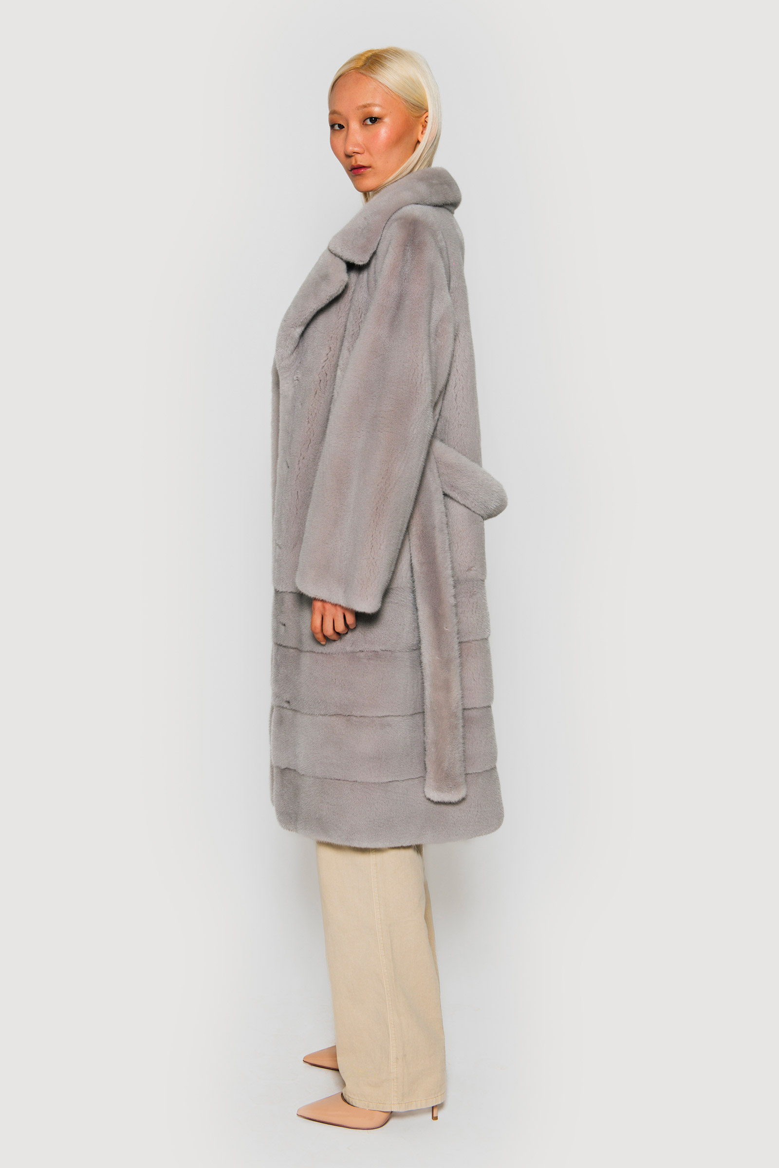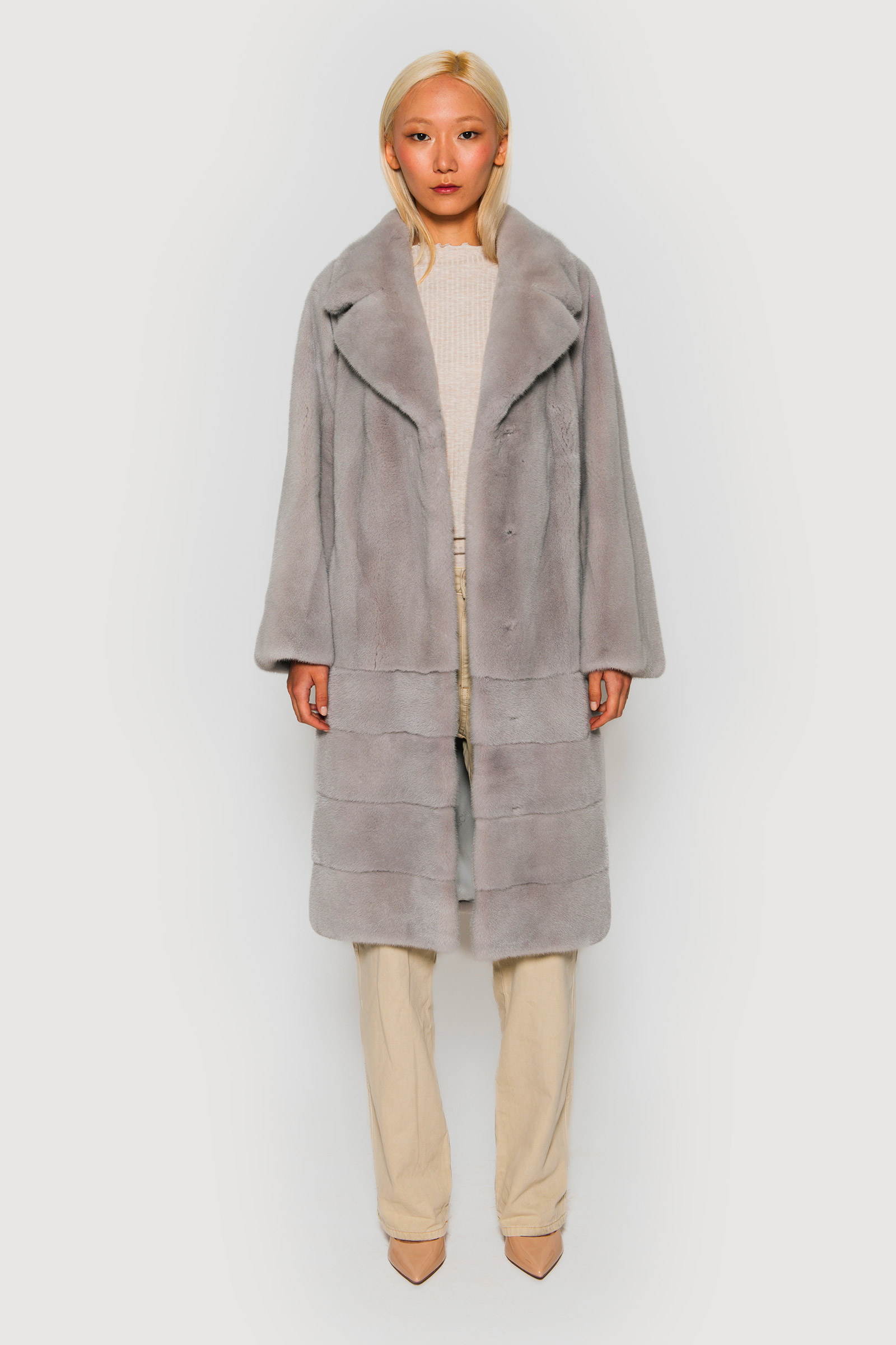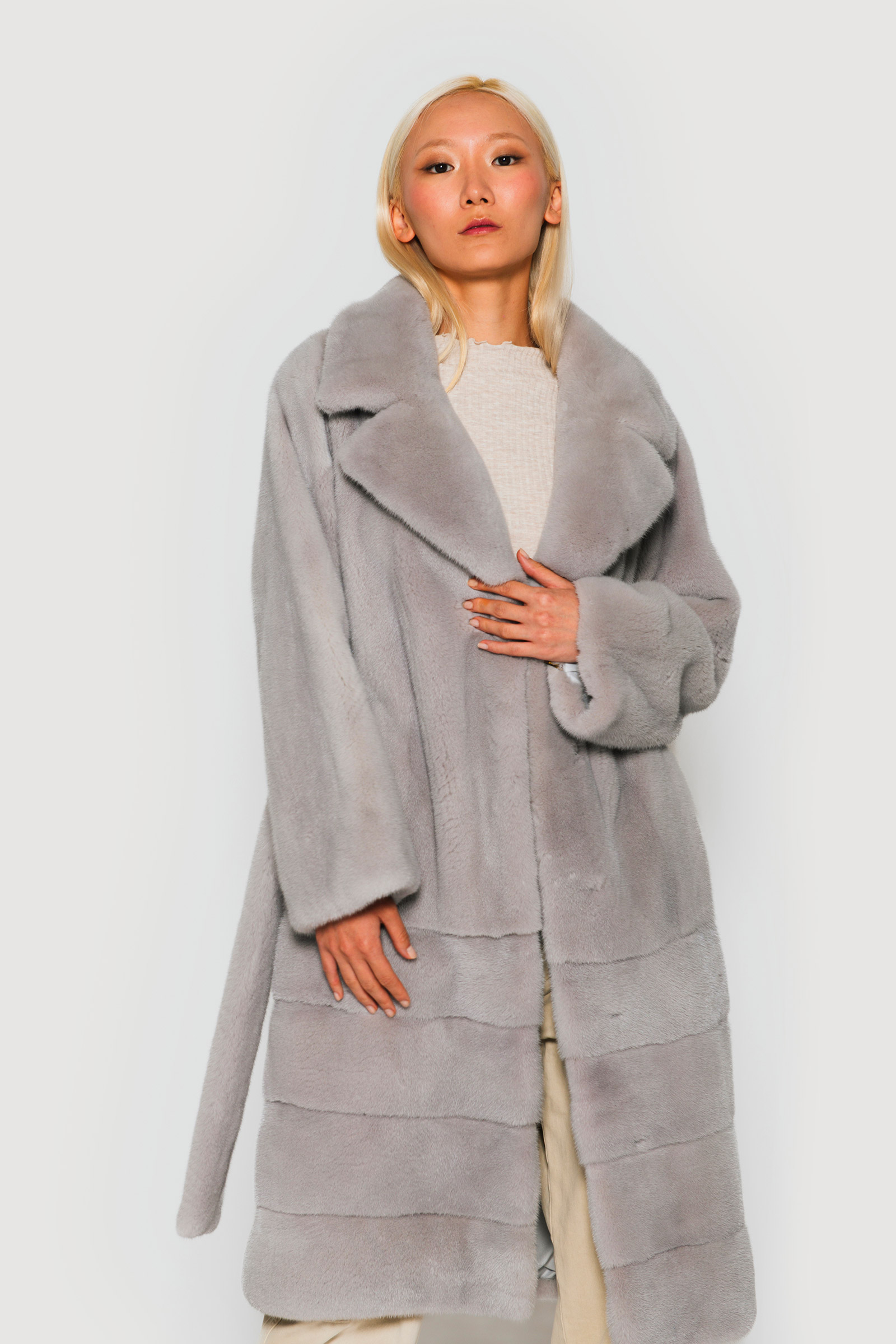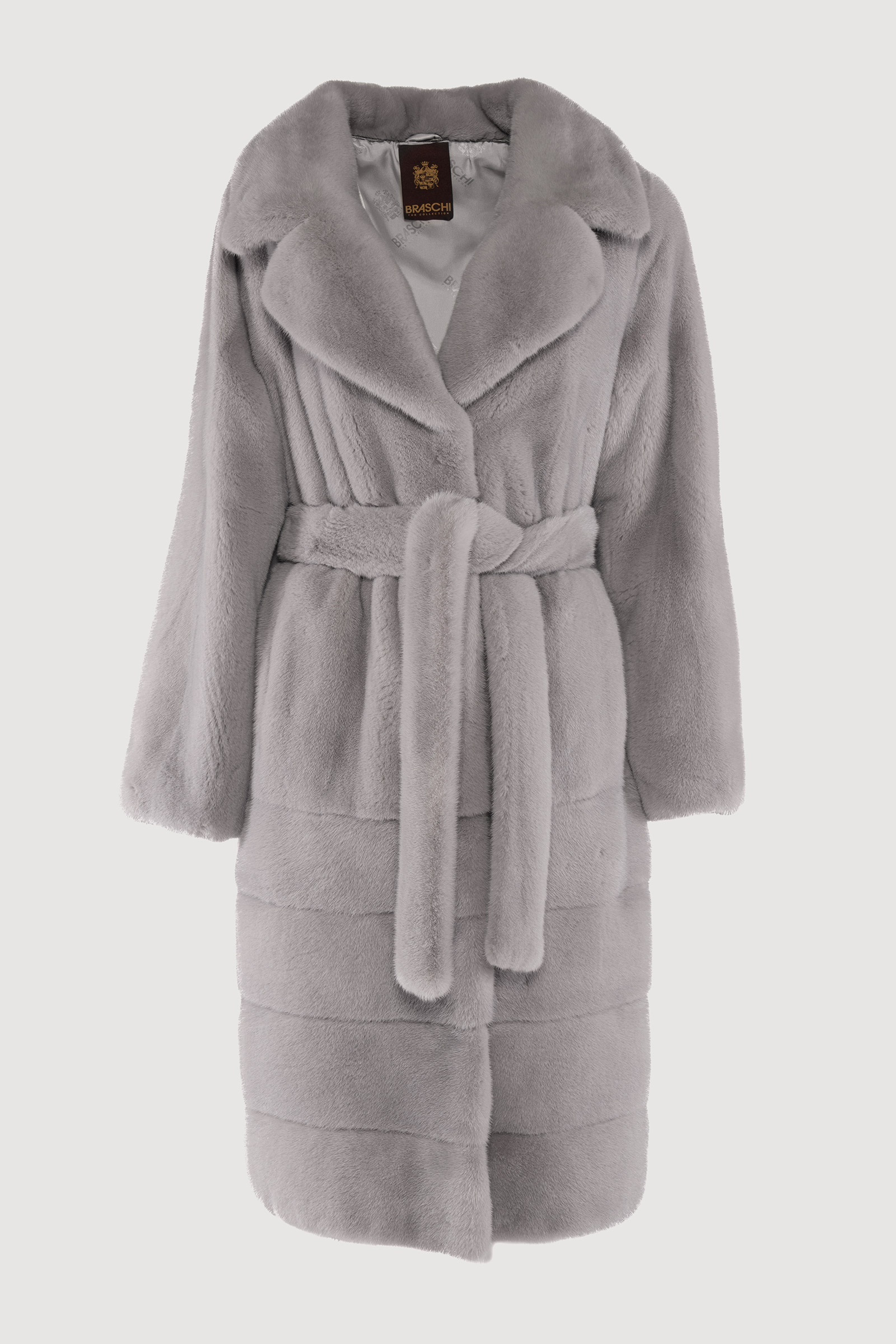 Elevate your winter wardrobe with the Long Vertical Mink Jacket from Braschi. Meticulously crafted with a lapel collar and mink belt closure, this exquisite piece exudes timeless elegance. Its silk lining ensures unparalleled warmth and comfort. Embrace Italian craftsmanship and make a statement with Braschi.