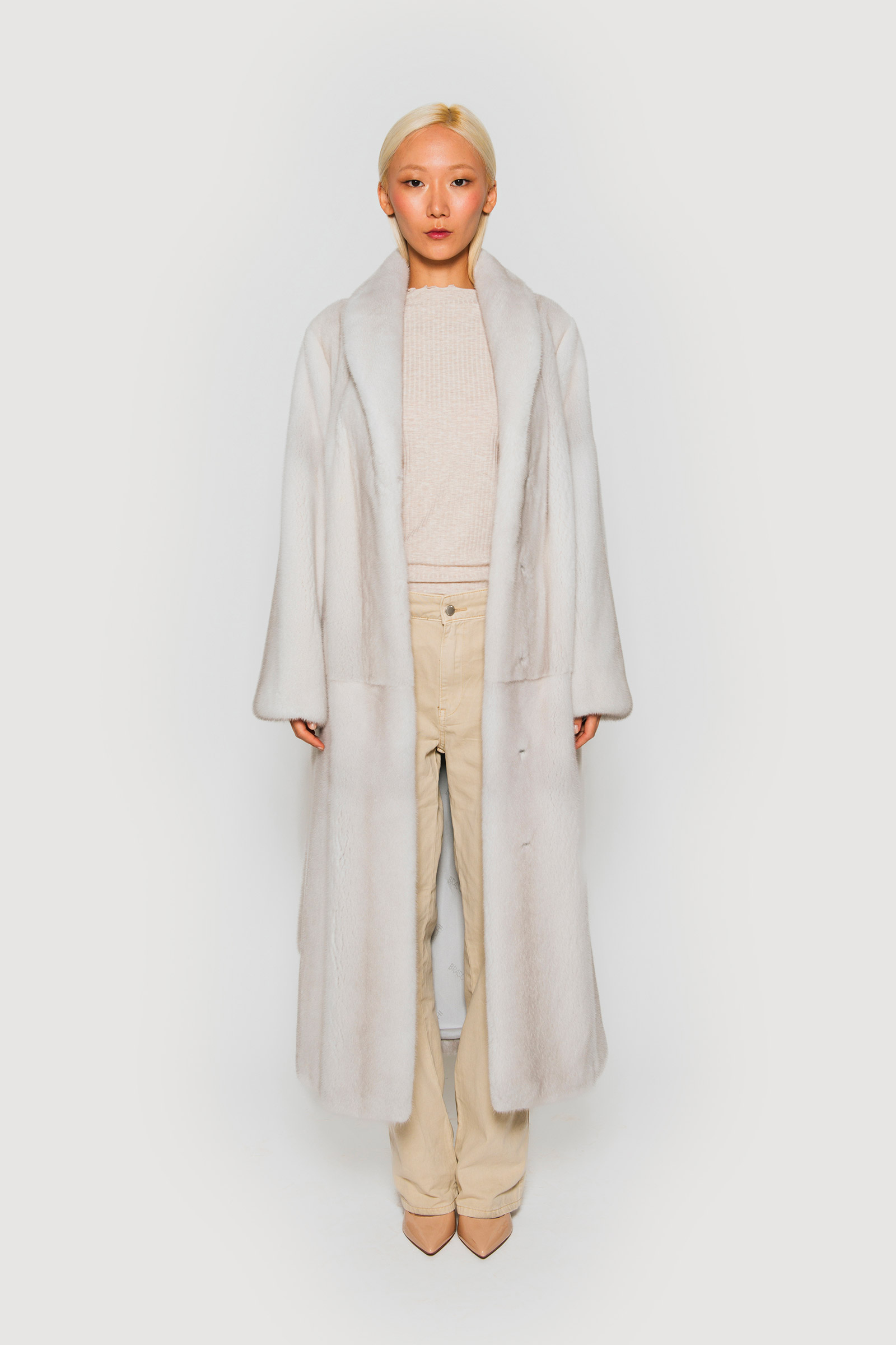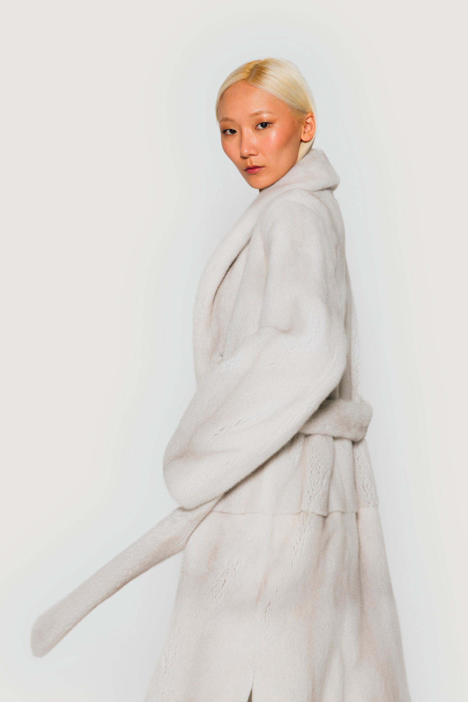 Elevate your winter wardrobe with the Long Vertical Mink Jacket from Braschi. Meticulously crafted with a lapel collar and mink belt closure, this exquisite piece exudes timeless elegance. Its silk lining ensures unparalleled warmth and comfort. Embrace Italian craftsmanship and make a statement with Braschi.