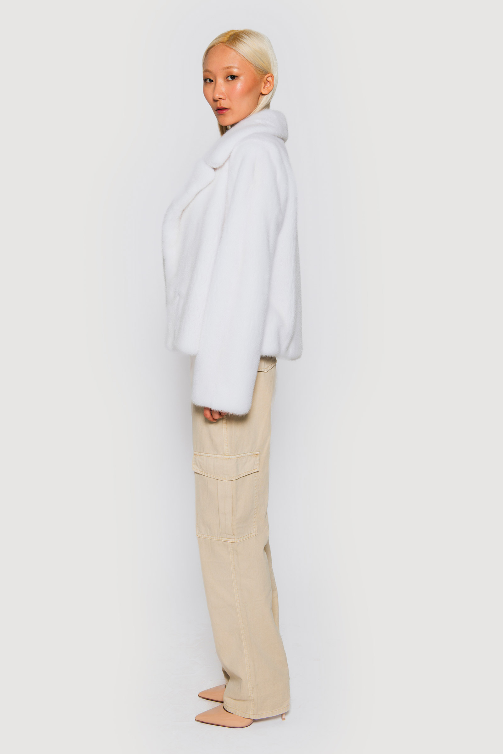 Elevate your style with the Mink Jacket from Braschi. This exquisite piece, meticulously crafted with vertical processing and featuring a lapel collar, offers timeless elegance. Its button fastening and silk lining ensure both style and warmth. Embrace Italian craftsmanship and make a stylish statement with Braschi.