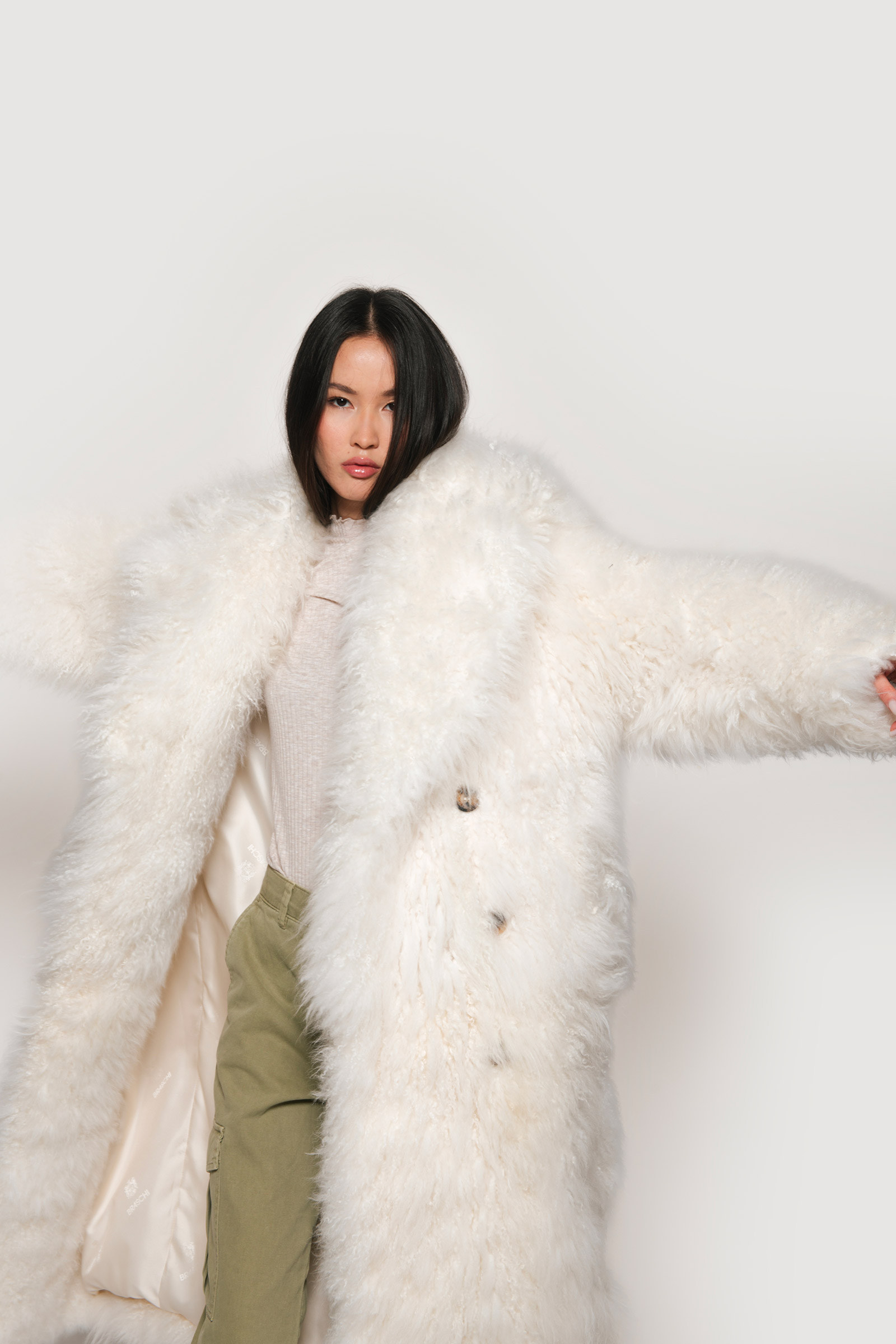 Elevate your style with Braschi’s beautiful cashmere mohair goat jacket, showcasing a custom dark horn button closure. This Italian-crafted masterpiece is complemented by sumptuous silk lining, ensuring unparalleled comfort and opulence. Embrace timeless elegance with the perfect blend of craftsmanship and individuality, where fashion meets luxury.