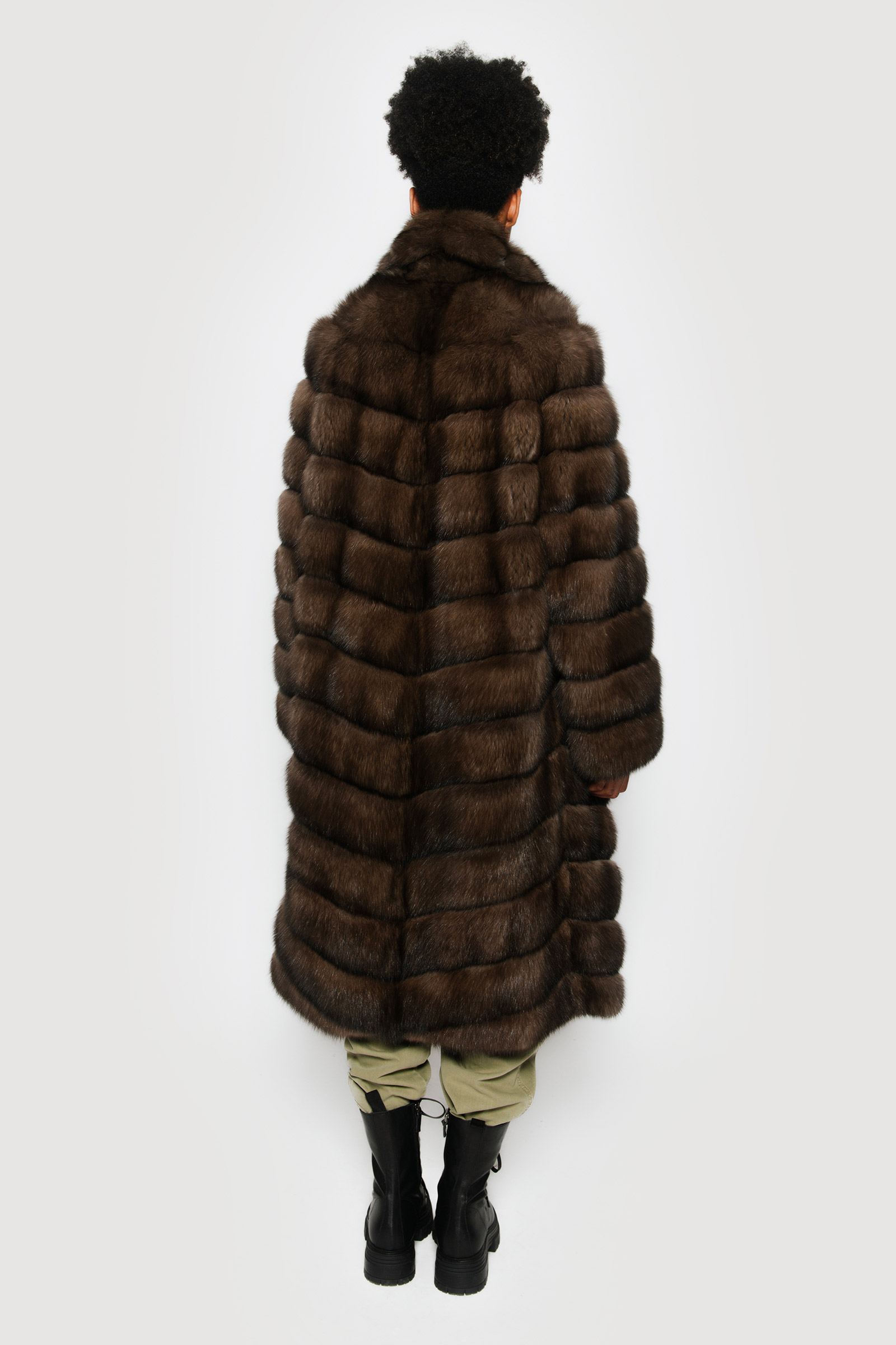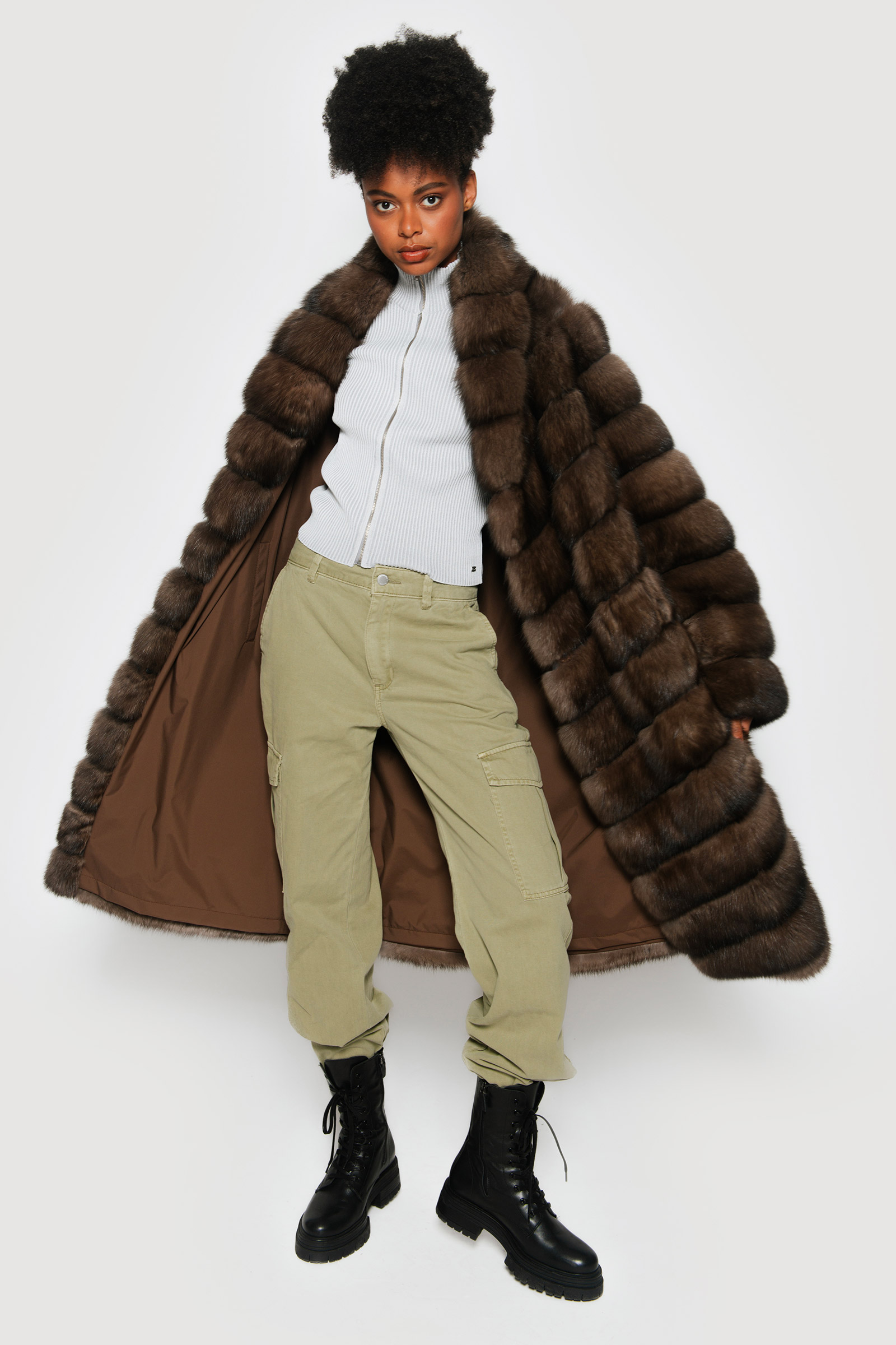 Experience versatility and luxury with Braschi’s long reversible jacket, seamlessly blending graphite sable with tech rain system fabric. This Italian-made masterpiece features a sumptuous shawl collar, offering both style and comfort. Elevate your wardrobe with this exceptional piece, where craftsmanship and sophistication converge for an unparalleled fashion experience.
