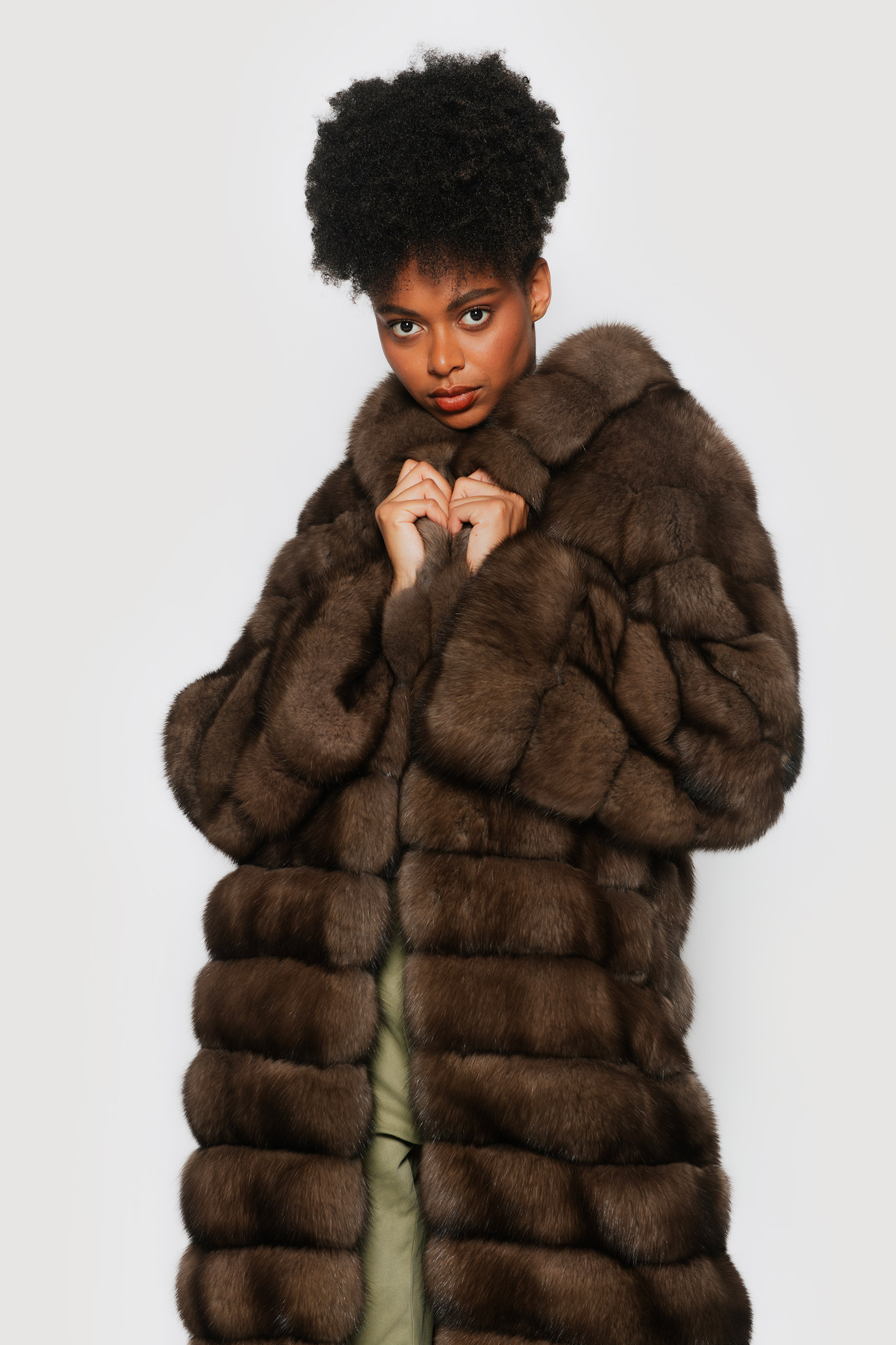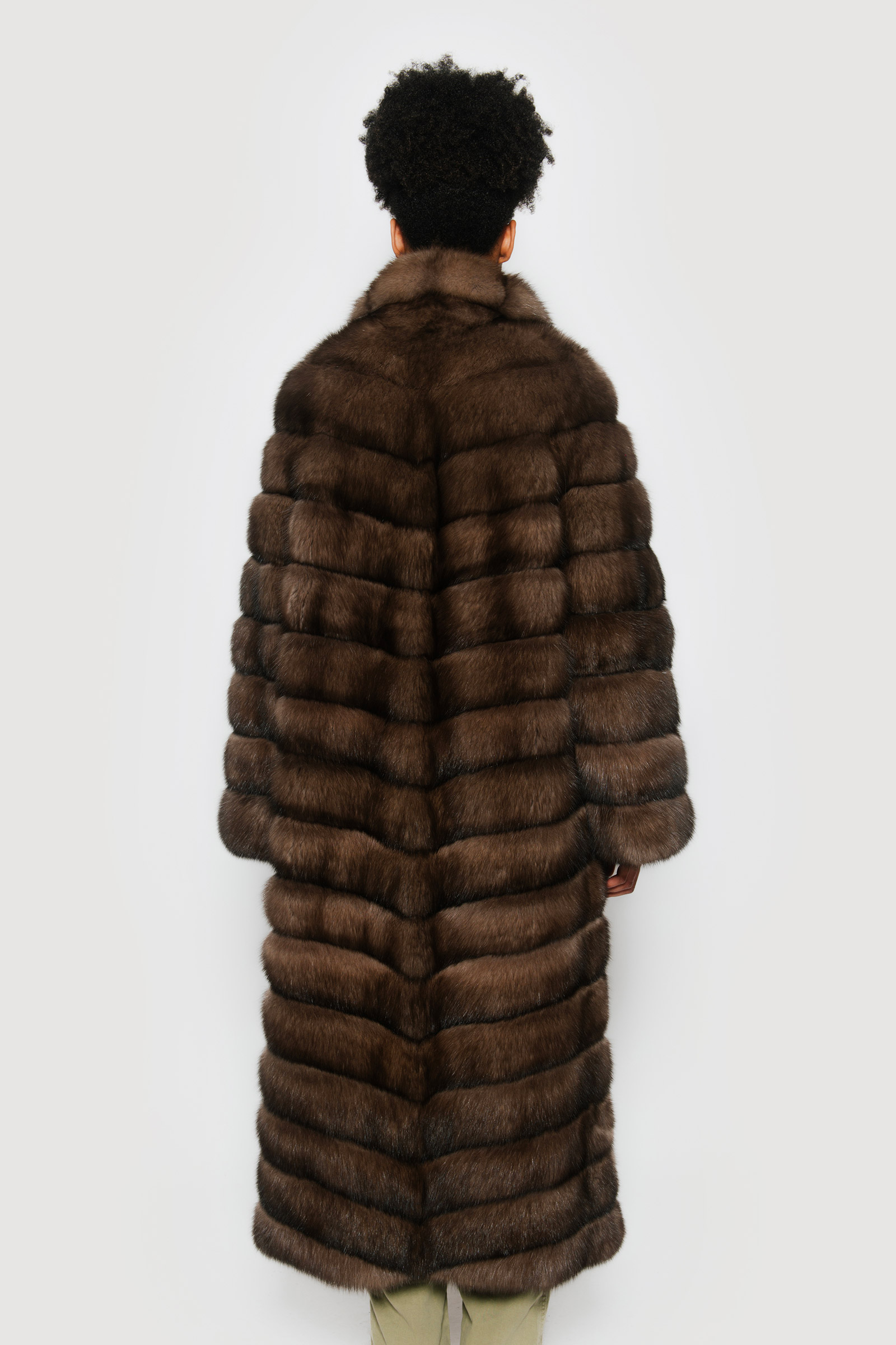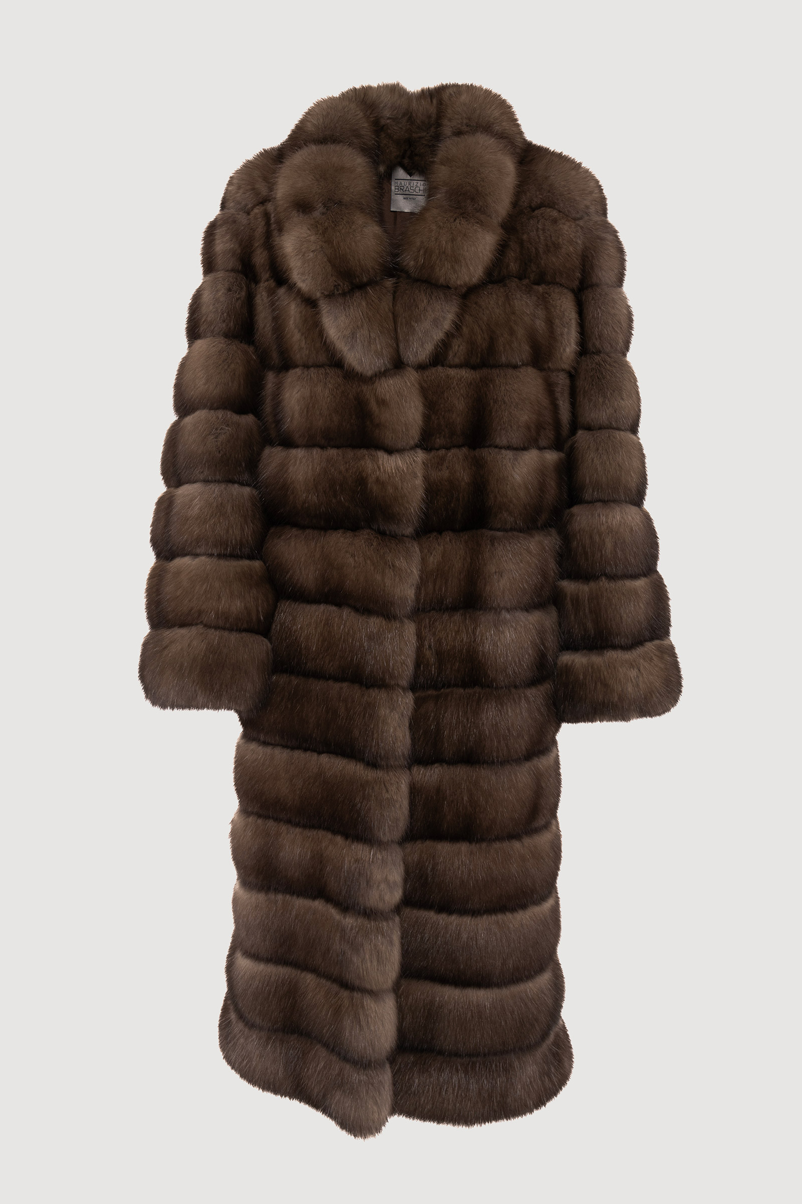 Elevate your winter style with the Long Graphite Sable Jacket from Braschi. Meticulously crafted with horizontal workmanship and featuring a shawl collar, this jacket exudes timeless elegance. Its silk lining ensures unparalleled warmth and comfort. Embrace Italian craftsmanship and make a statement with Braschi.