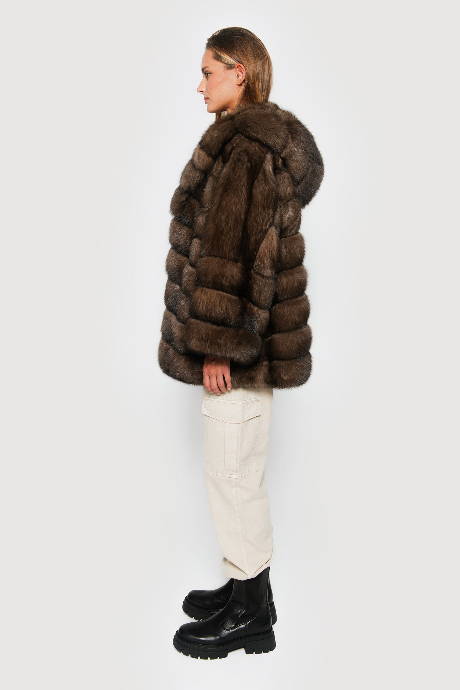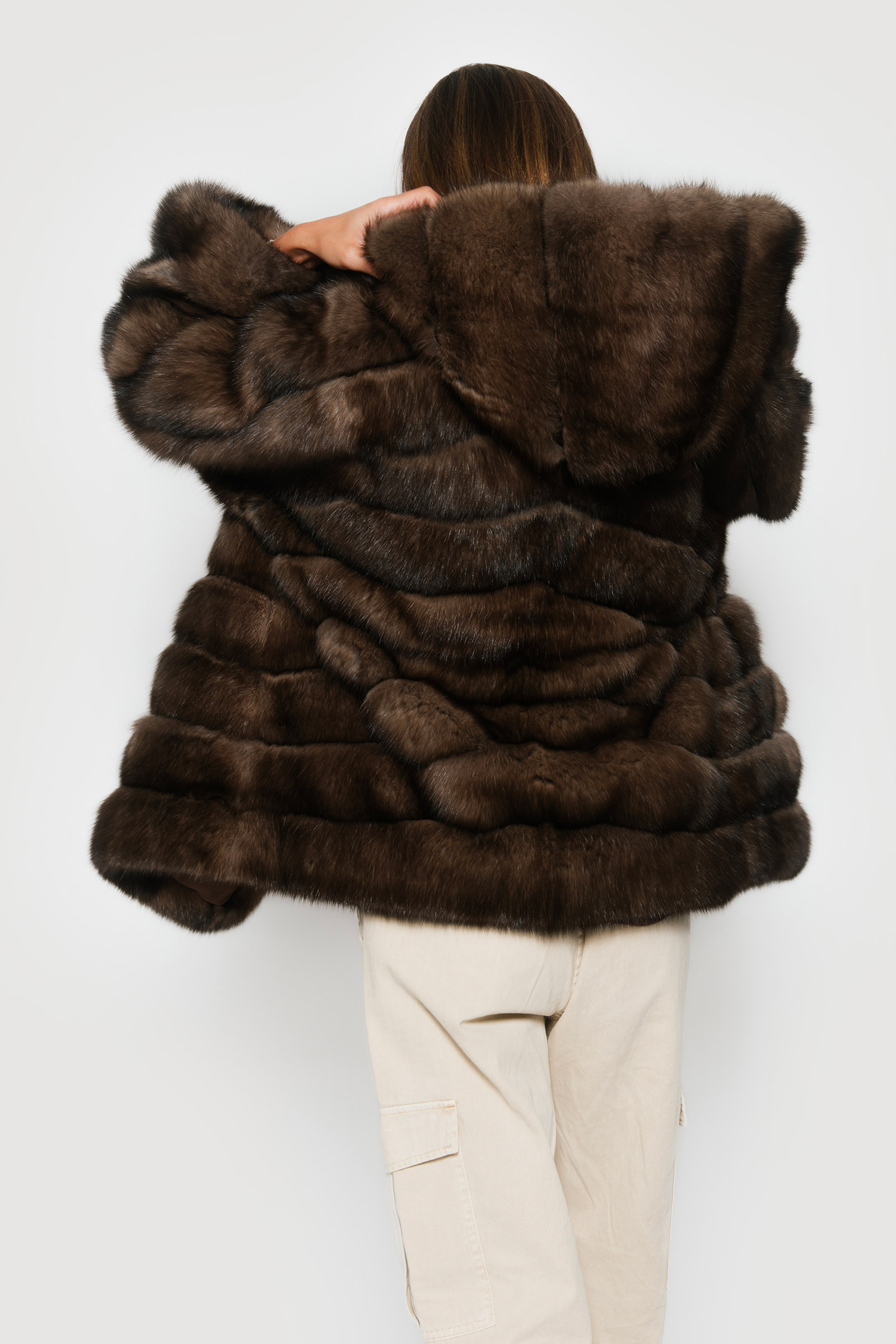 Elevate your winter wardrobe with the Graphite Sable Jacket from Braschi. This stunning piece features a hood, meticulous horizontal workmanship, and a silk lining. It exudes timeless elegance while ensuring unparalleled warmth and comfort. Embrace Italian craftsmanship and make a stylish statement with Braschi.