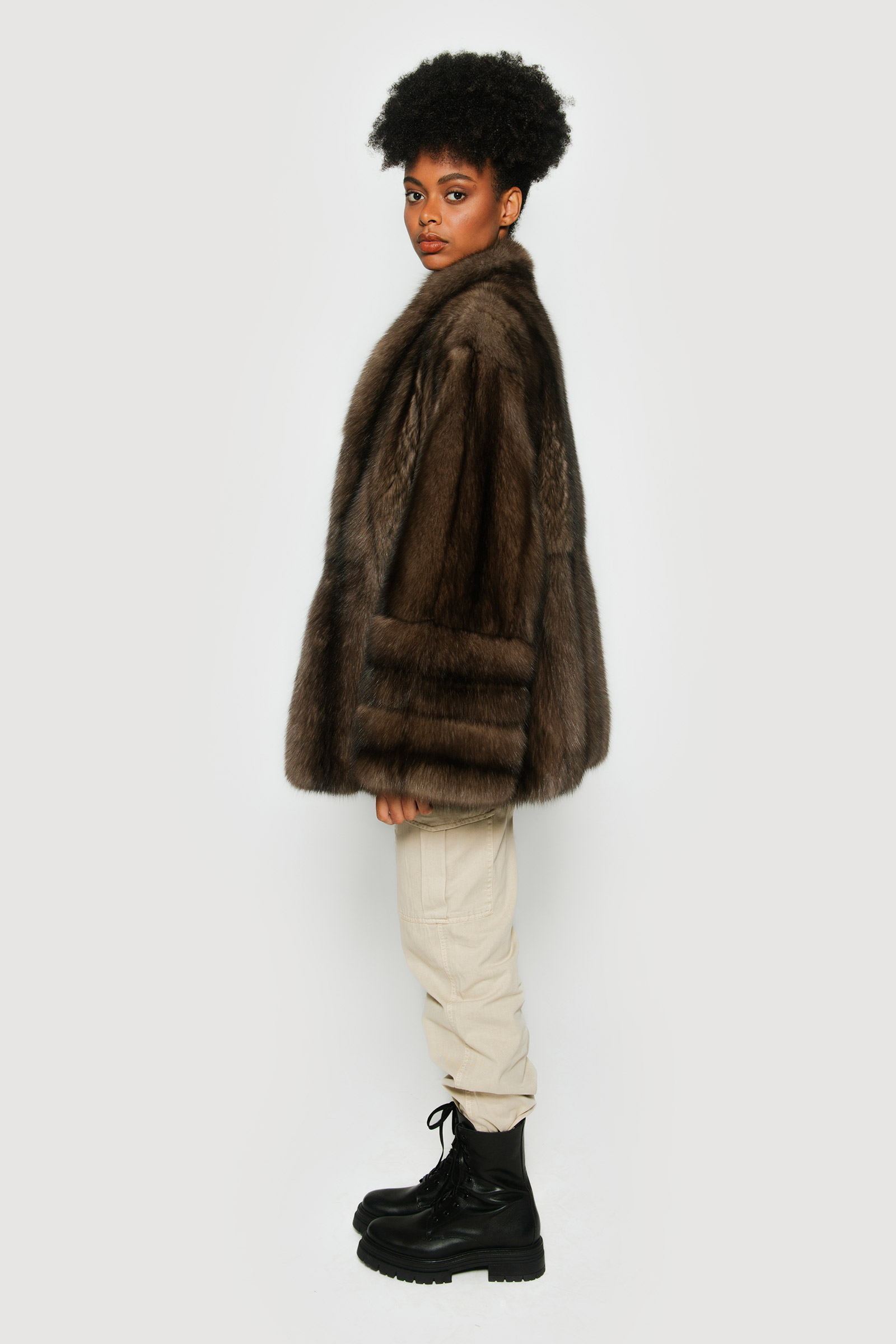 Braschi presents the epitome of luxury with our graphite sable jacket. Crafted in Italy, it boasts exquisite vertical full-skin workmanship for a distinctive touch. The sumptuous silk lining ensures comfort, making it an ideal choice for the discerning connoisseur of elegance. Elevate your style with Braschi and embrace the allure of exceptional craftsmanship.