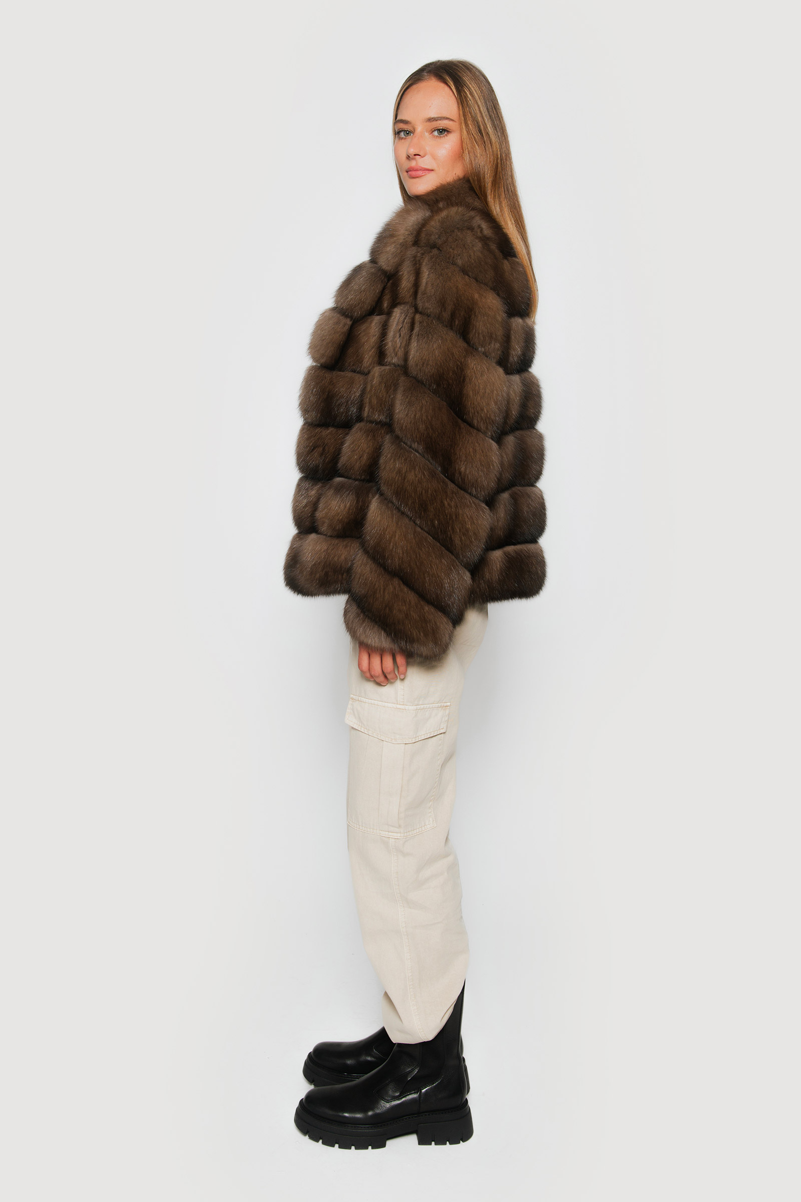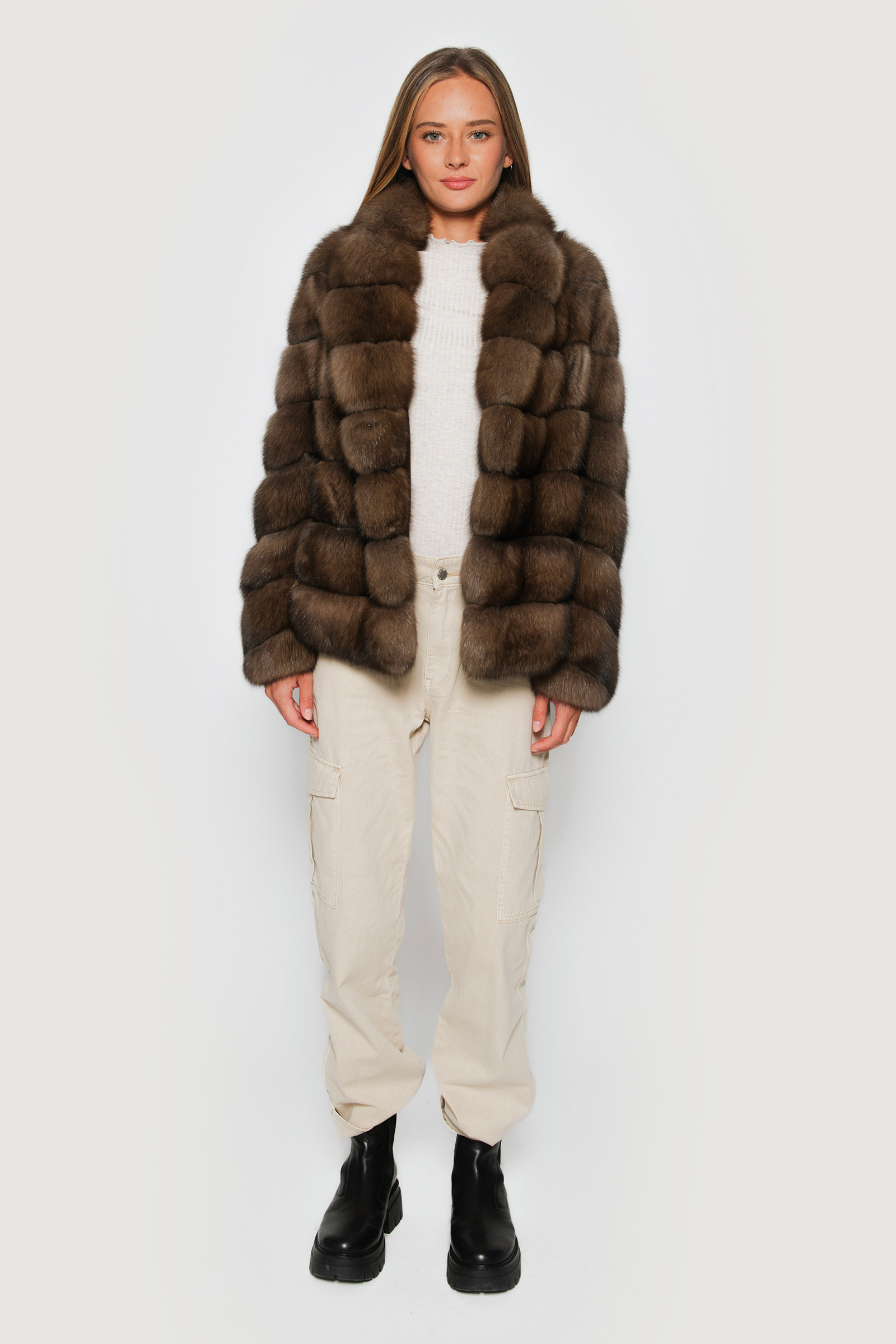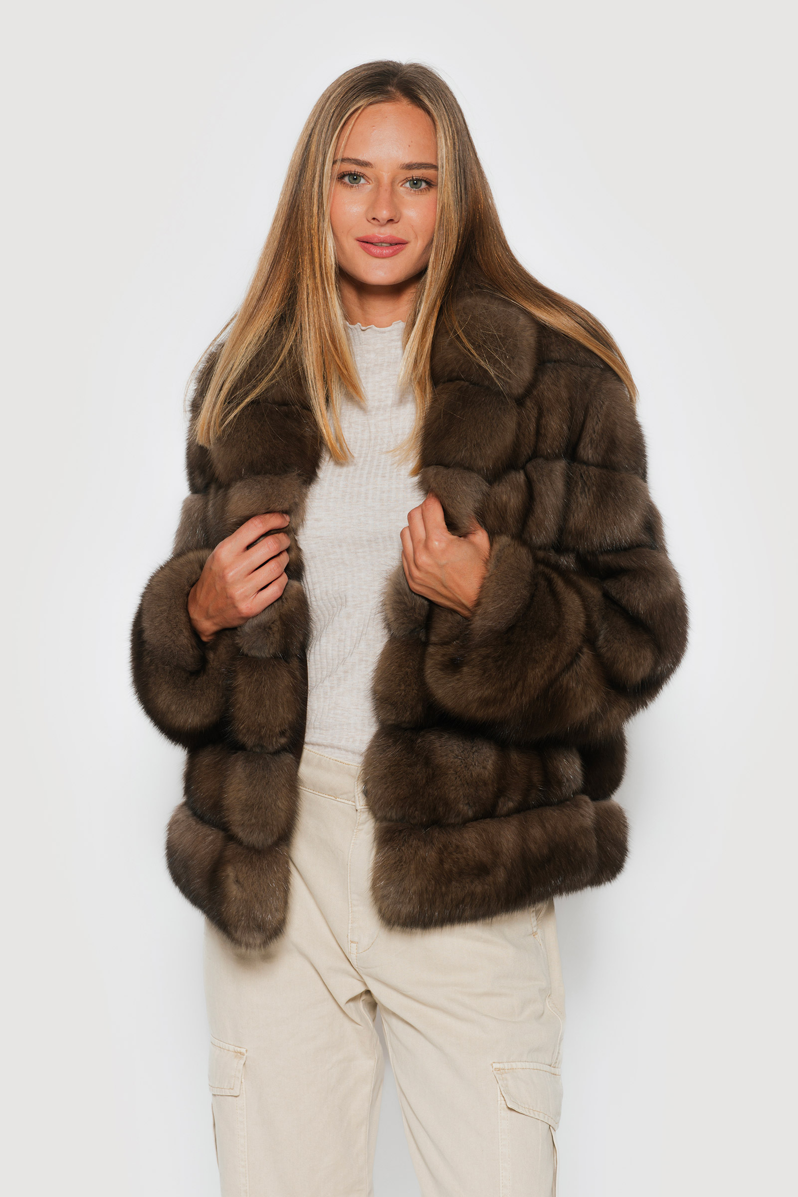 Introducing Braschi’s graphite sable jacket, a true masterpiece. Meticulously crafted with horizontal workmanship, this Italian-made gem showcases the epitome of elegance. The sumptuous silk lining adds a touch of luxury, ensuring comfort in style. Elevate your wardrobe with timeless sophistication – discover the allure of Braschi.