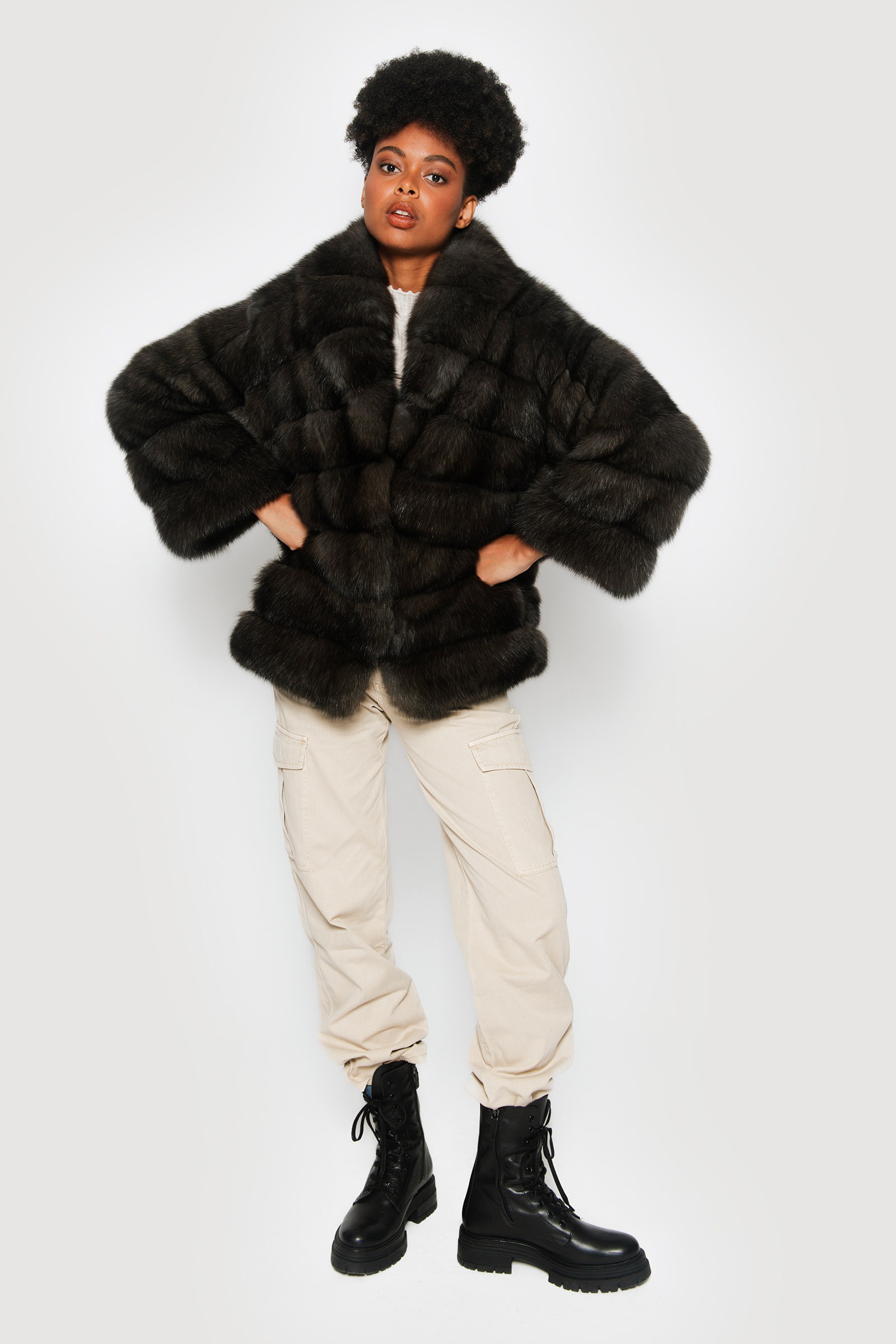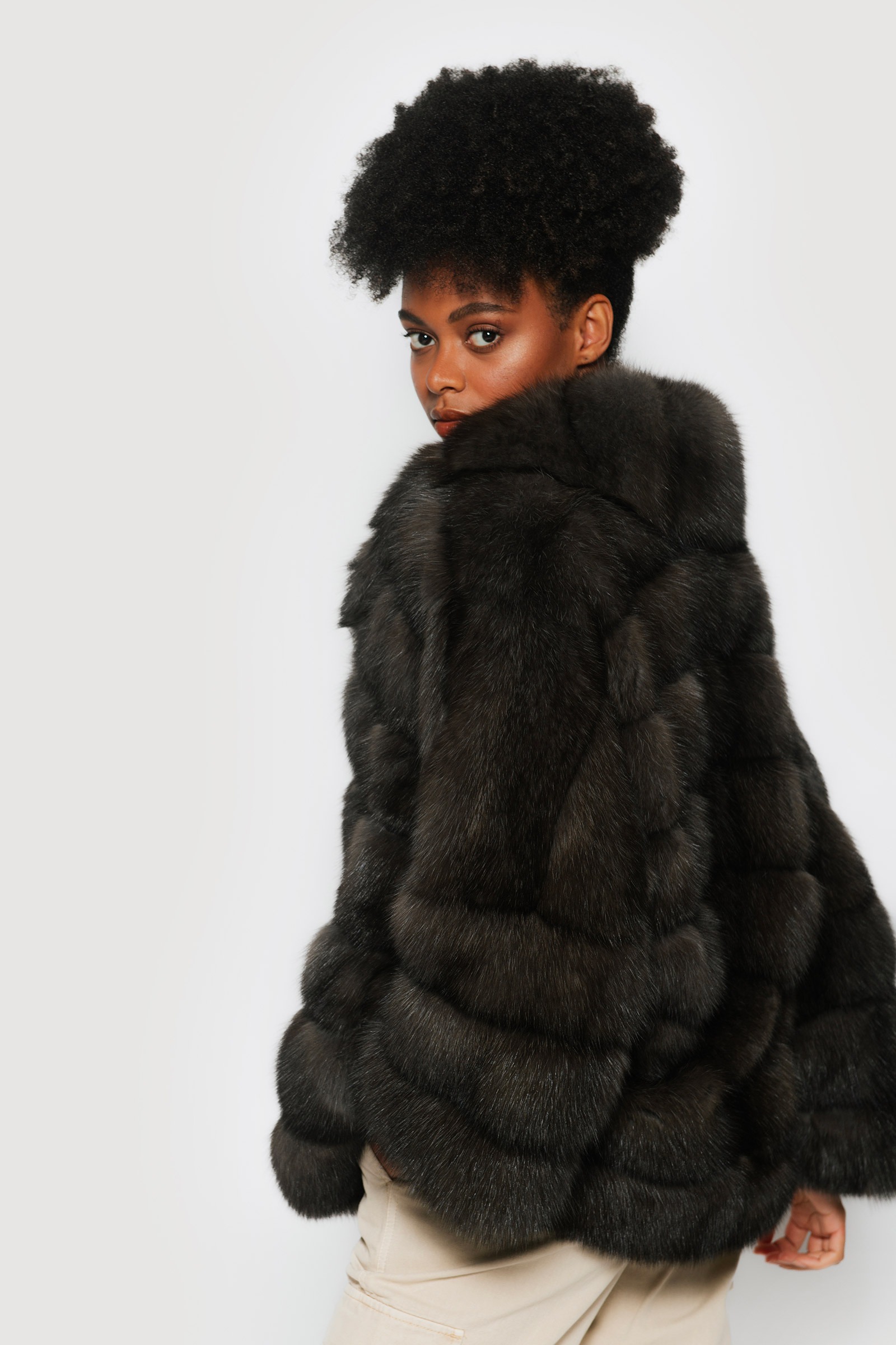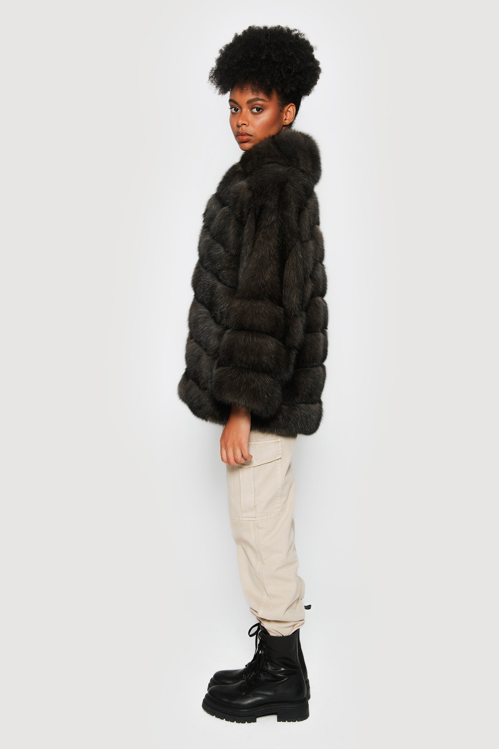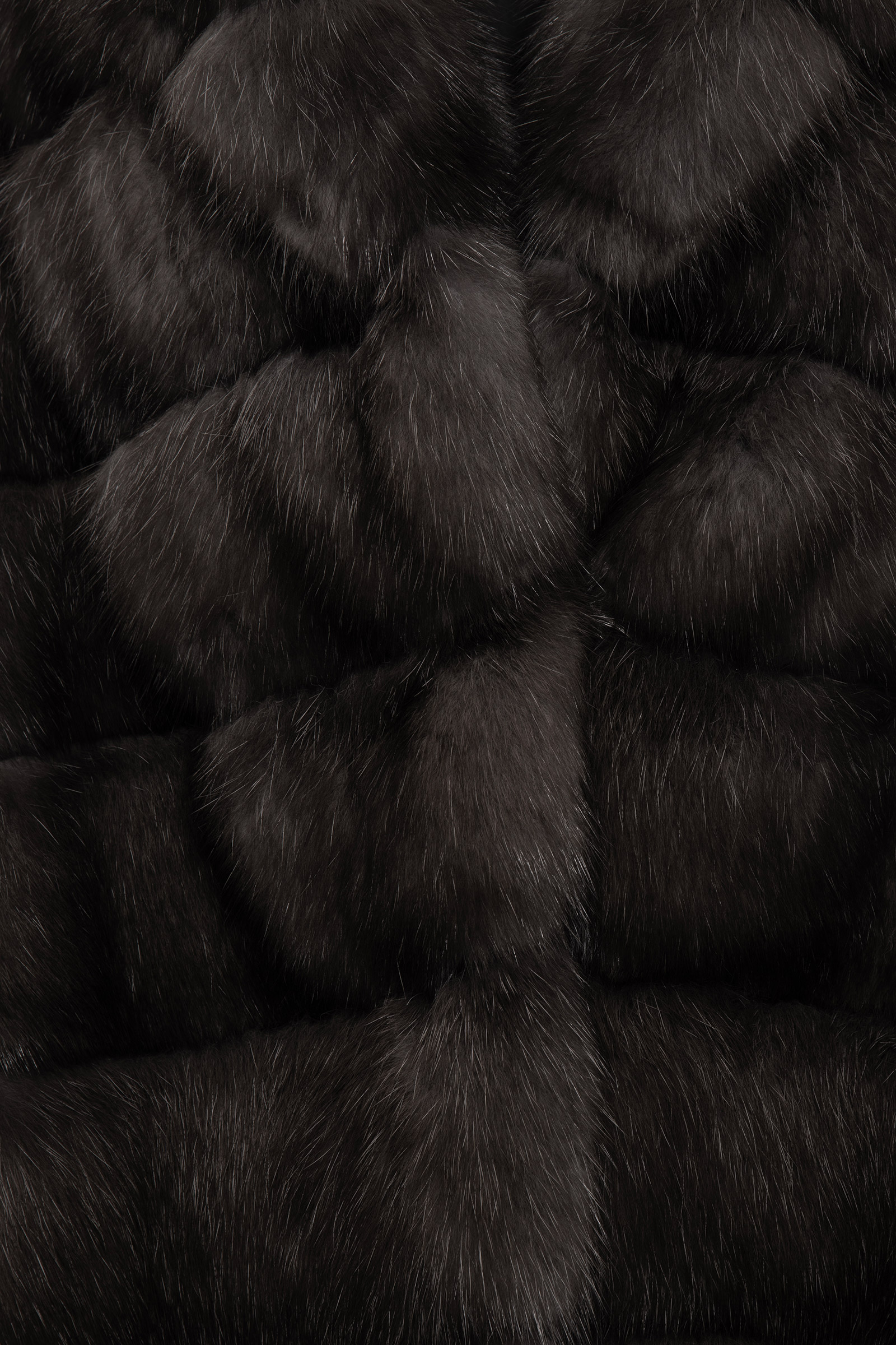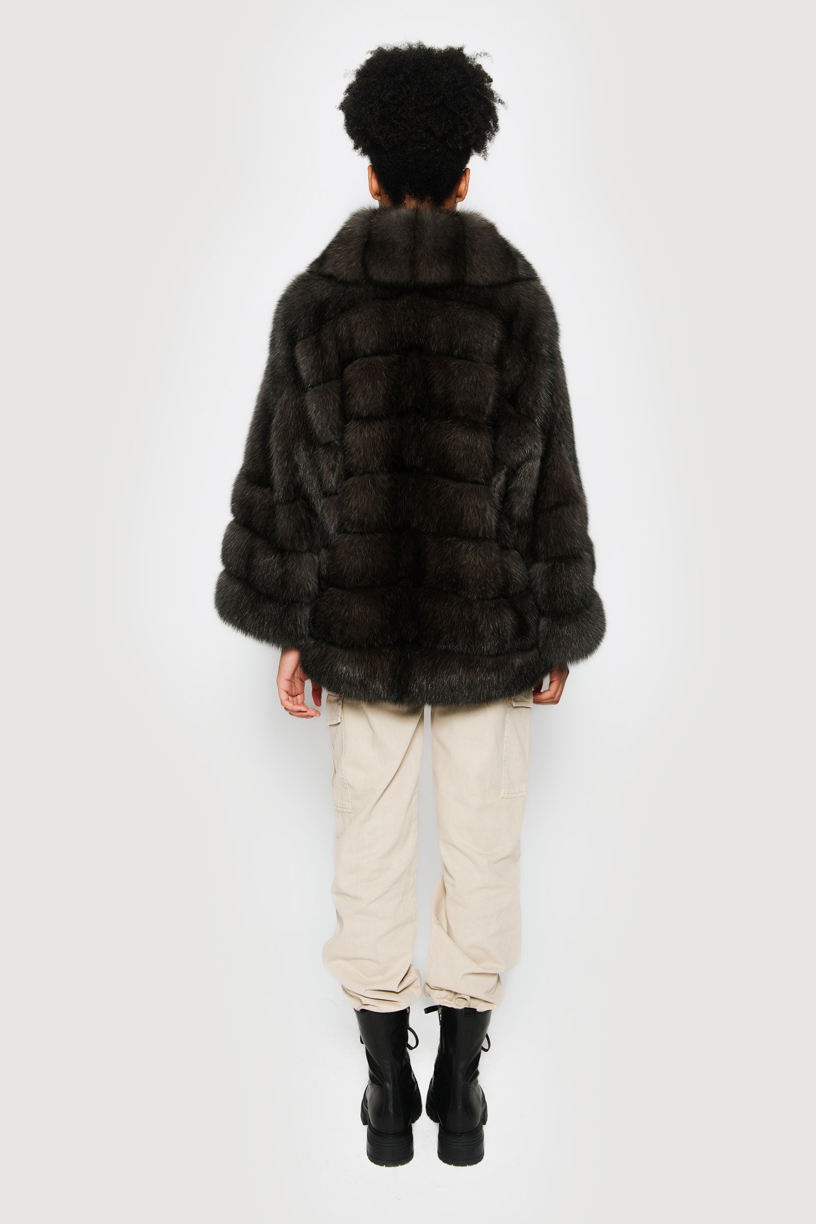 Long star gray sable jacket, horizontal workmanship, wide lapel collar.
