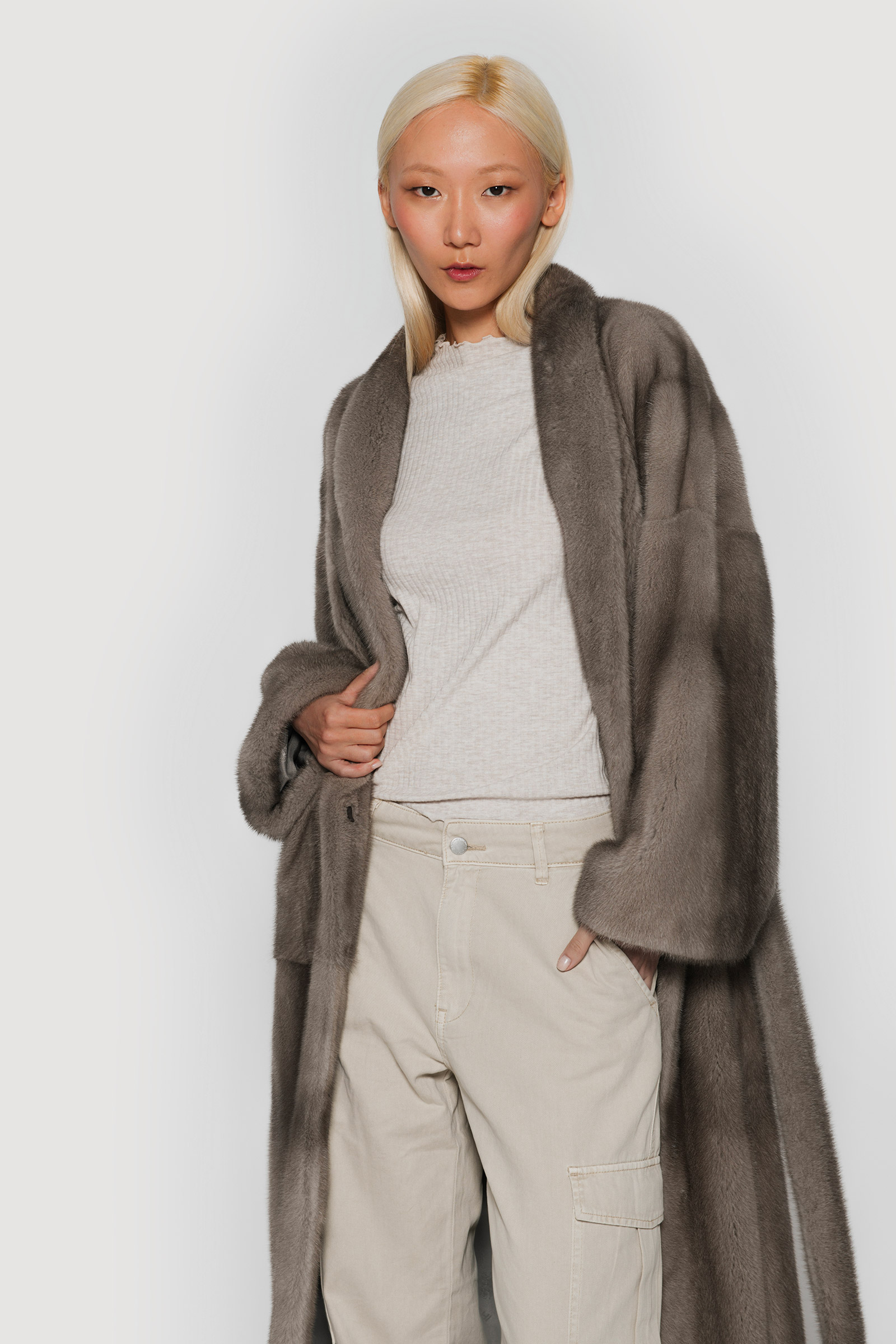 Step into the world of luxury with Braschi’s Long Vertical Mink Jacket. Featuring a shawl collar and button fastening, this exquisite piece offers both style and warmth. Meticulously crafted with vertical workmanship and a silk lining, it embodies Italian craftsmanship and timeless elegance. Make a statement with Braschi.
