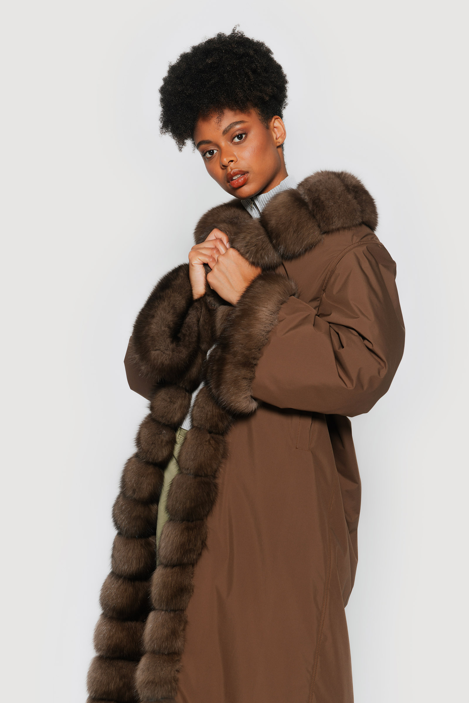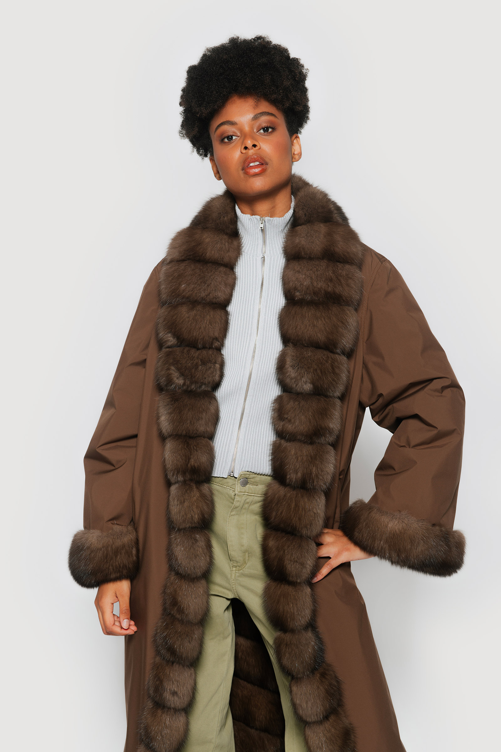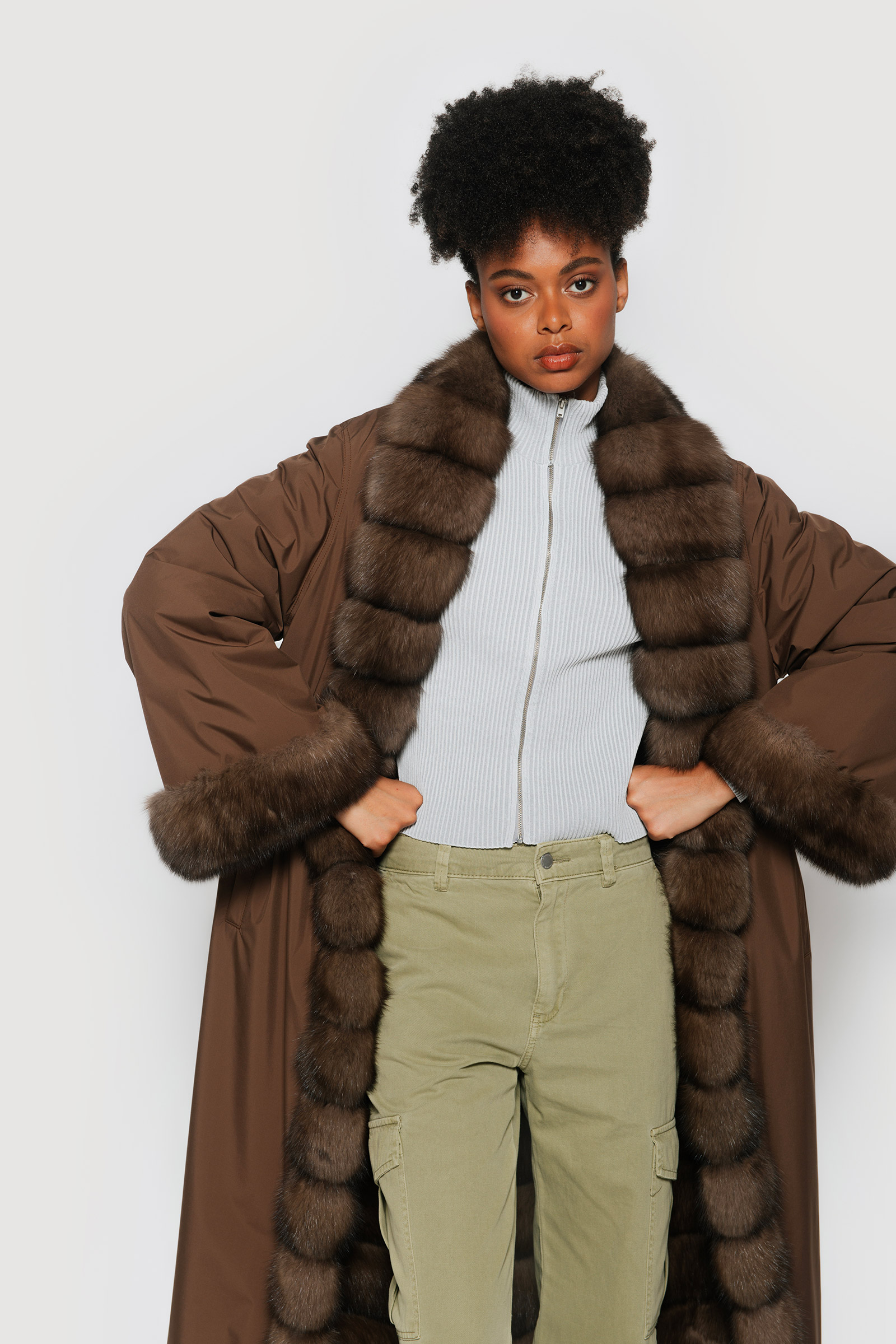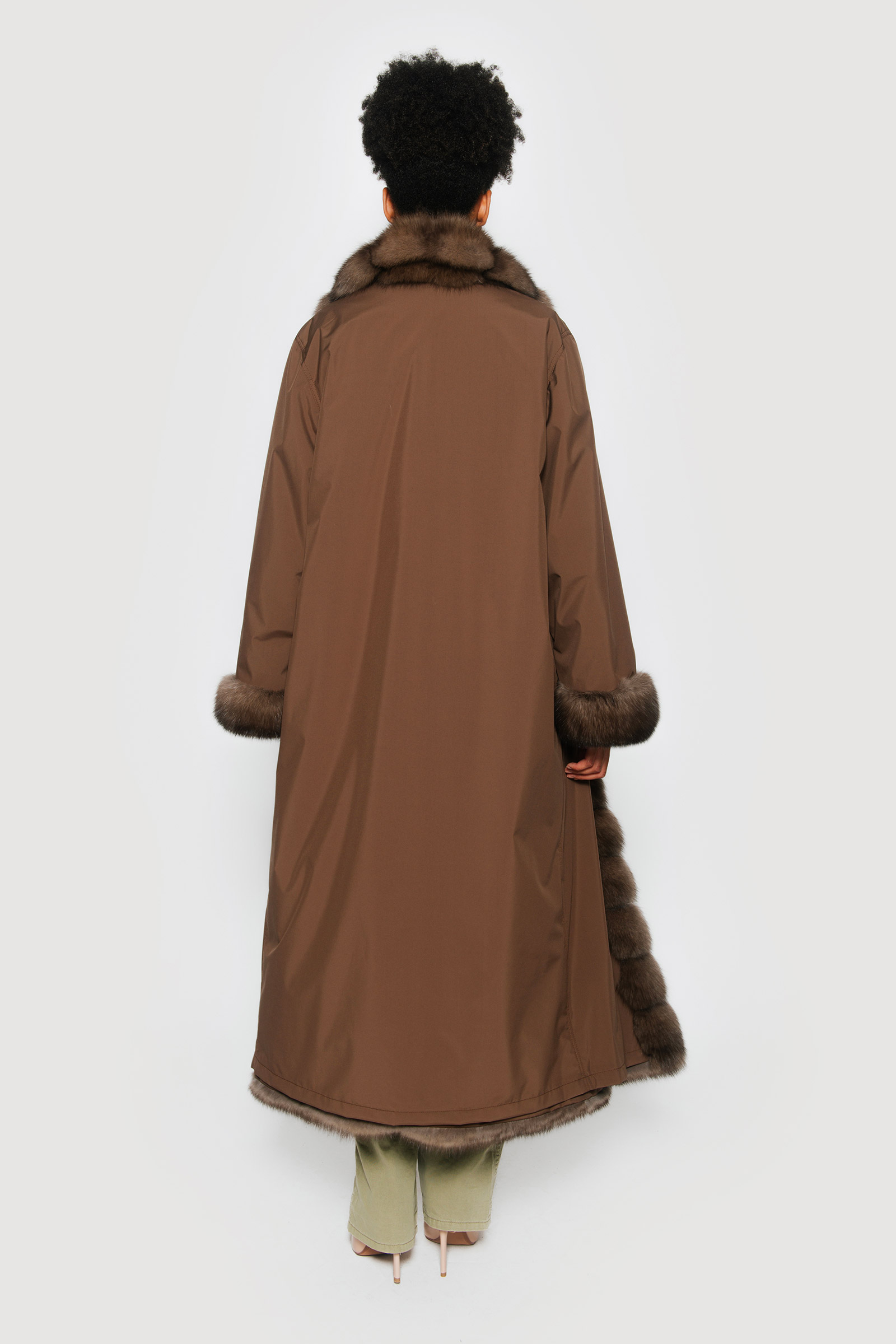 Elevate your winter wardrobe with the Long Reversible Jacket from Braschi. Crafted with luxurious graphite sable and high-tech rain system fabric, this versatile piece features a wide shawl collar. Its reversible design adds a contemporary twist, ensuring both style and practicality. Embrace Italian craftsmanship and make a statement with Braschi.