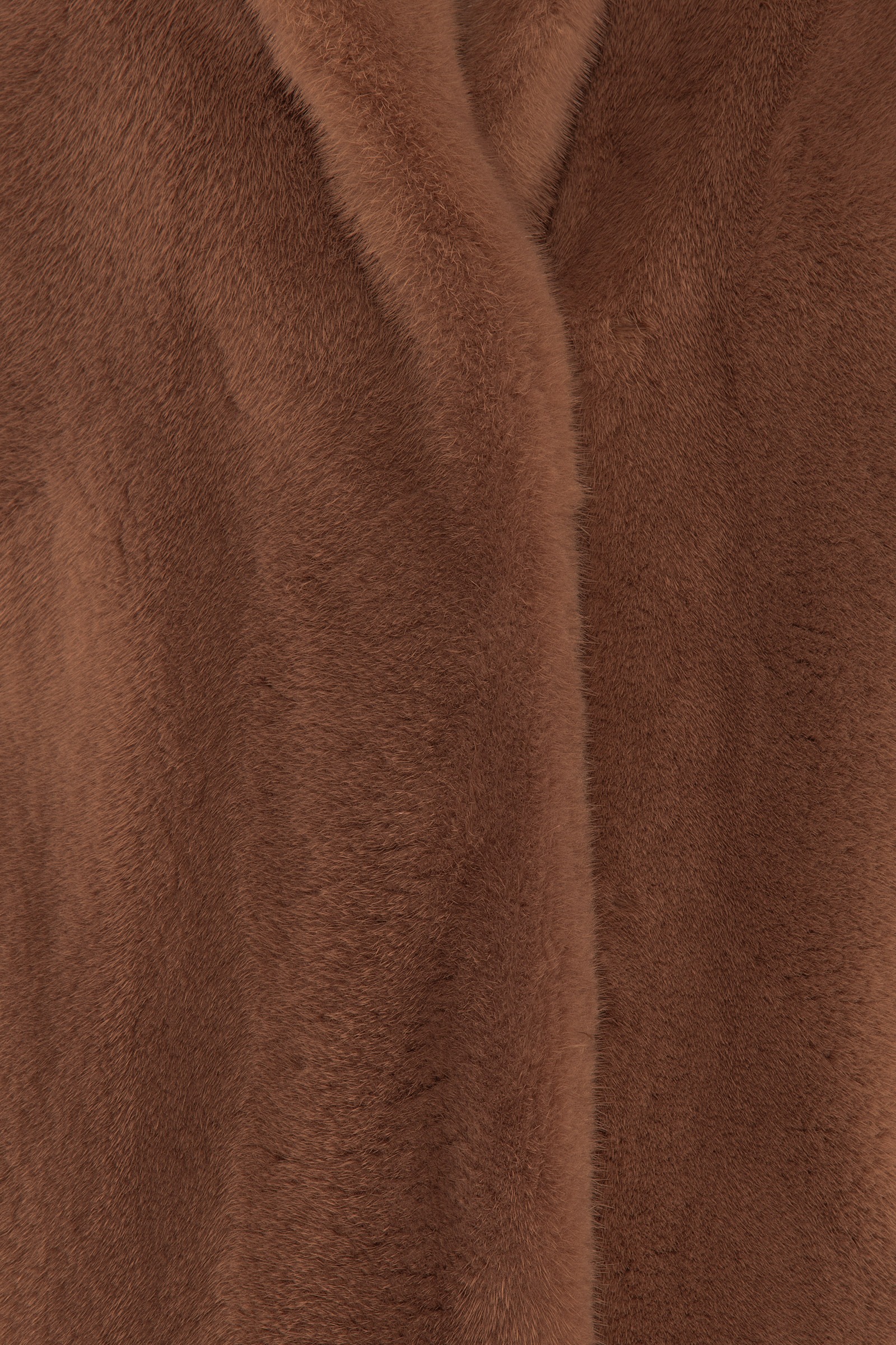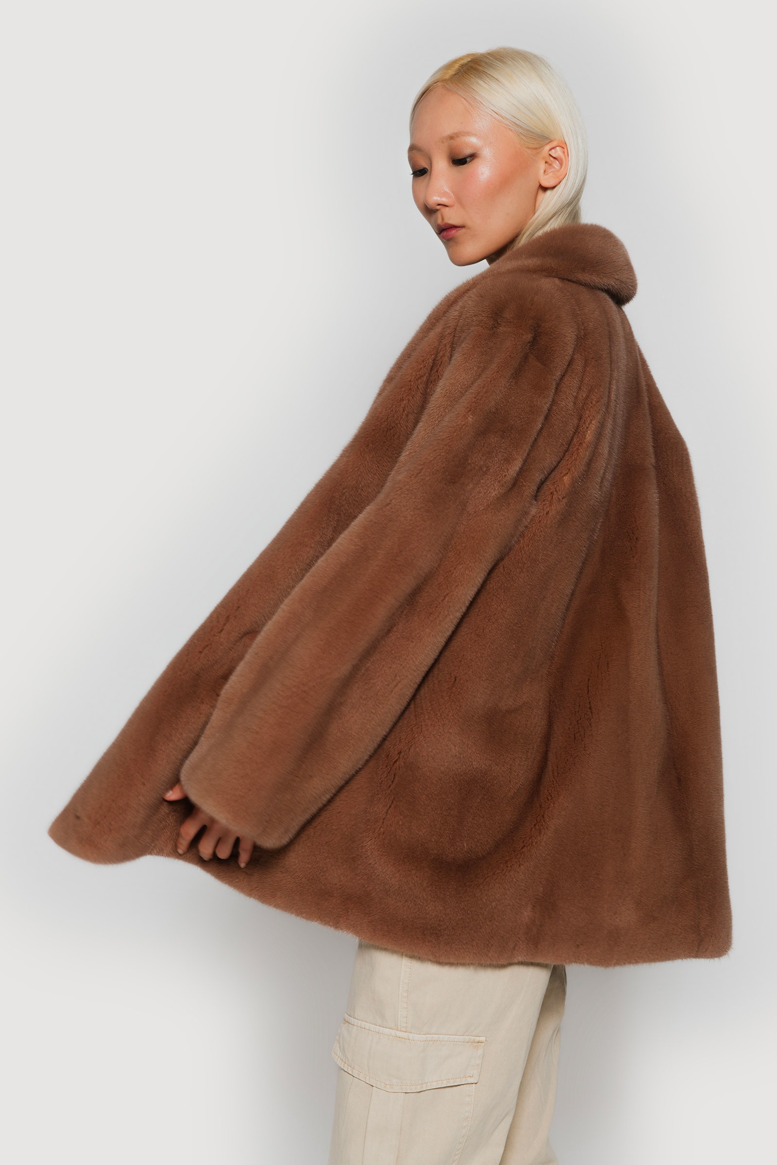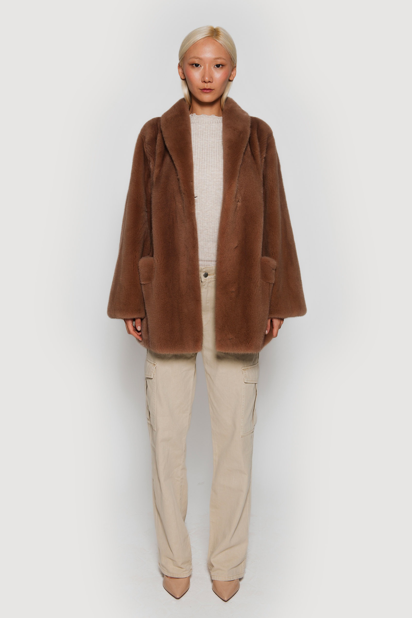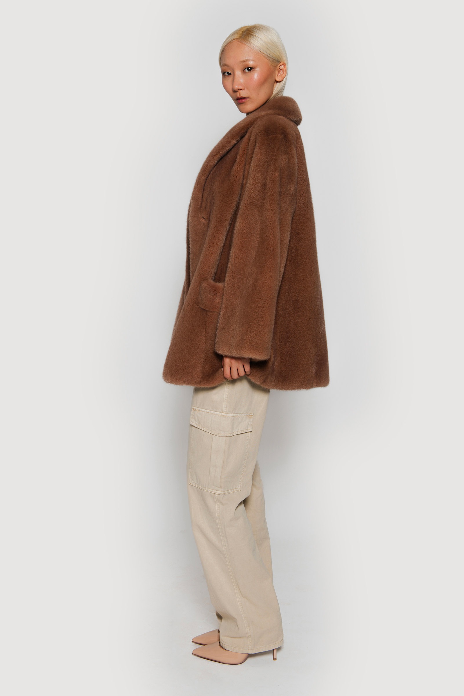 Mink jacket with vertical processing, with lapel collar, button fastening, silk lining.