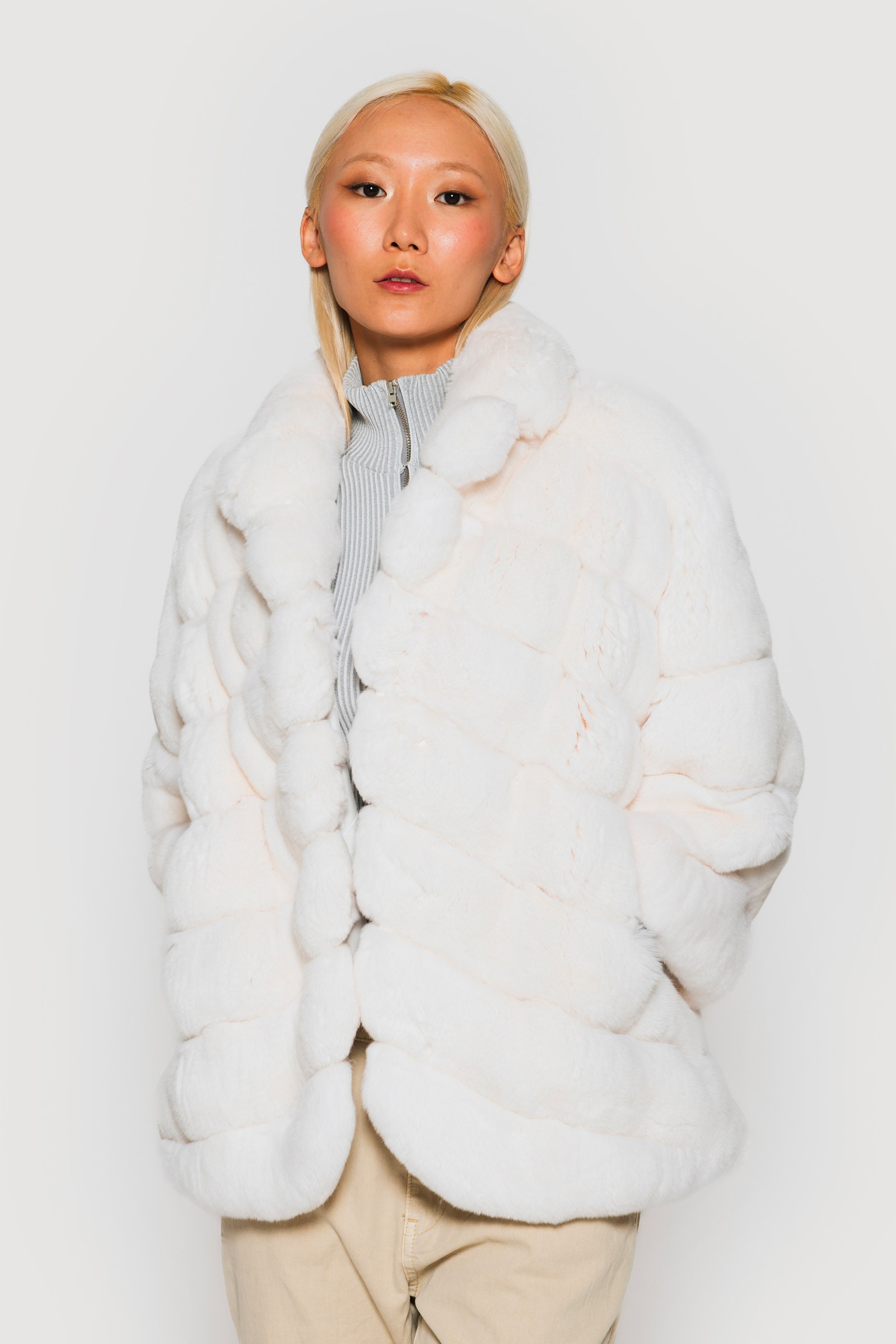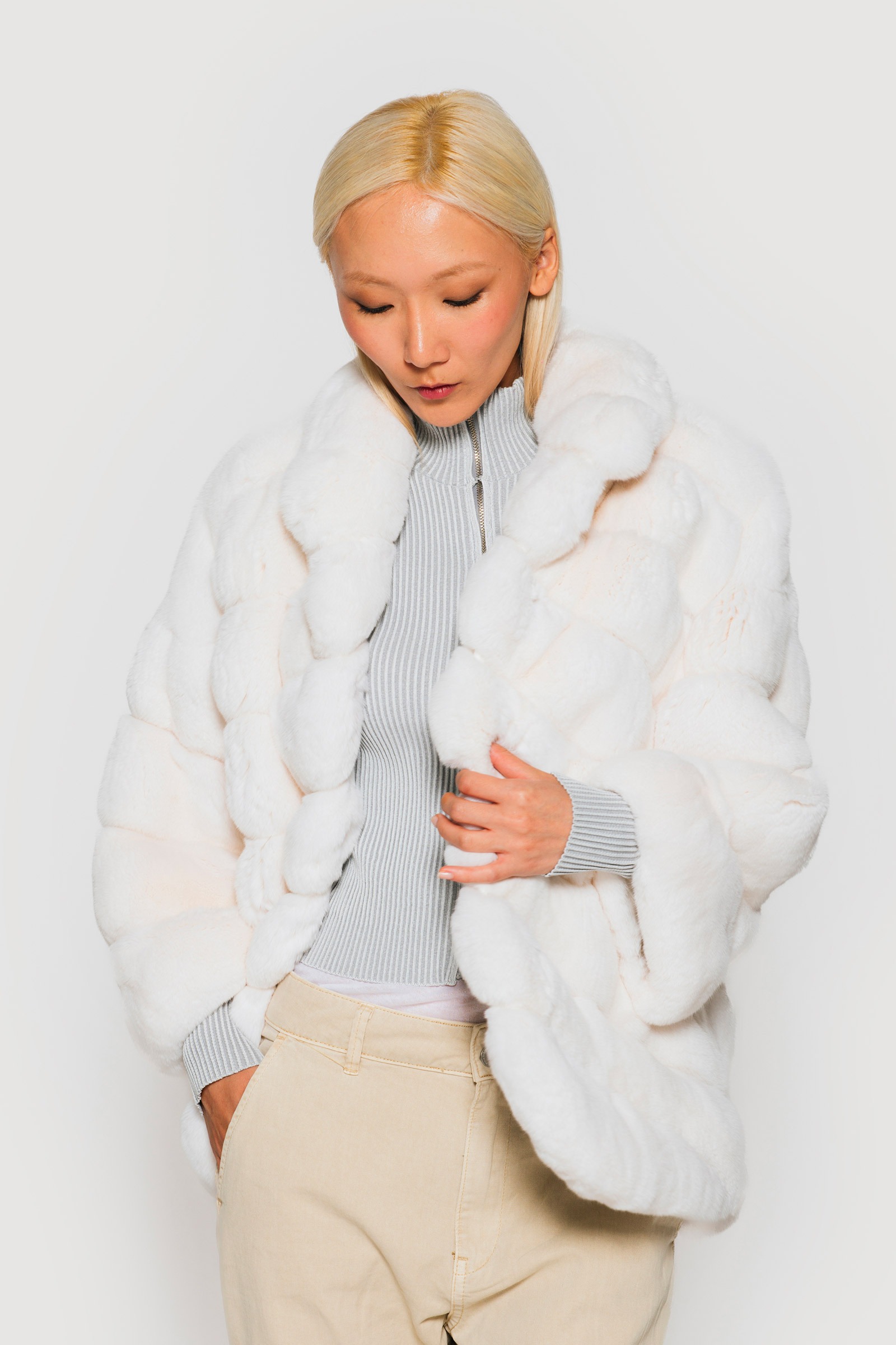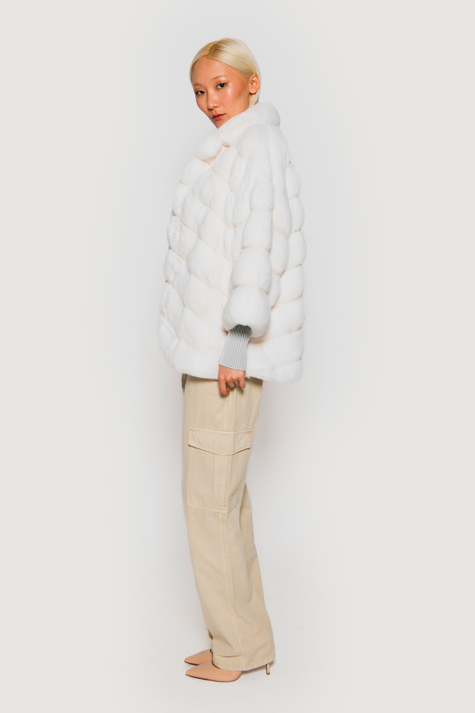 Chinchilla jacket with lapel collar, button fastening, silk lining