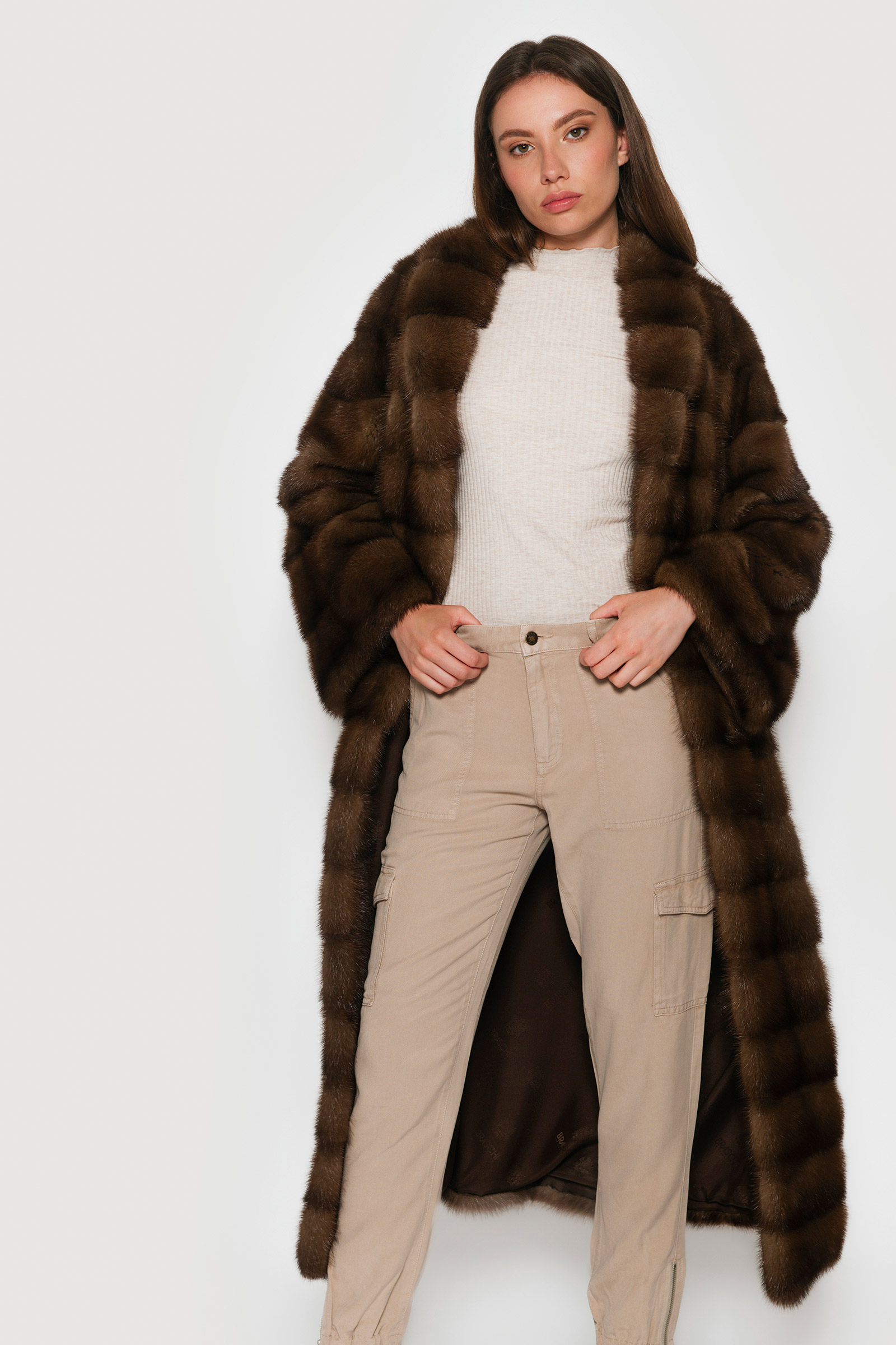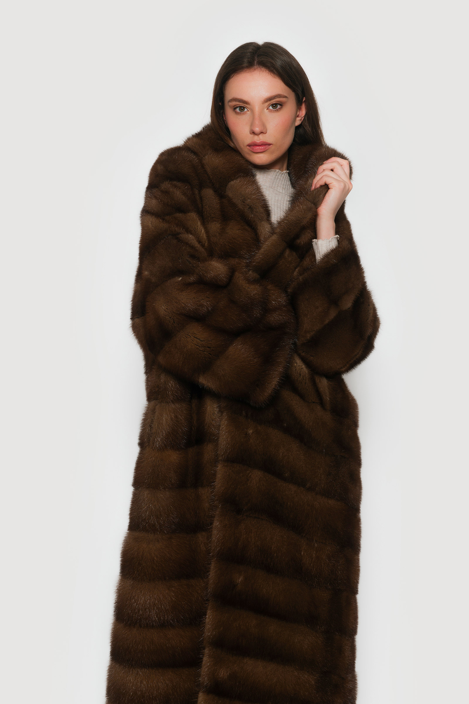 Indulge in timeless luxury with Braschi’s Long Diagonal Mink Jacket. This exquisite piece features a shawl collar and is meticulously crafted with diagonal processing, exuding elegance. Its silk lining ensures unparalleled warmth and comfort. Embrace Italian craftsmanship and make a stylish statement with Braschi.
